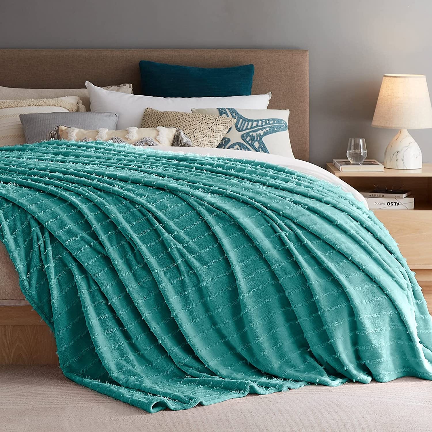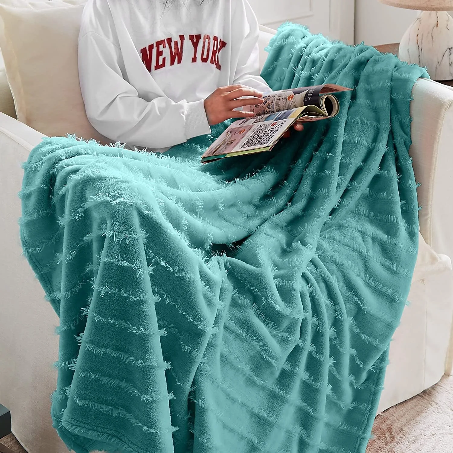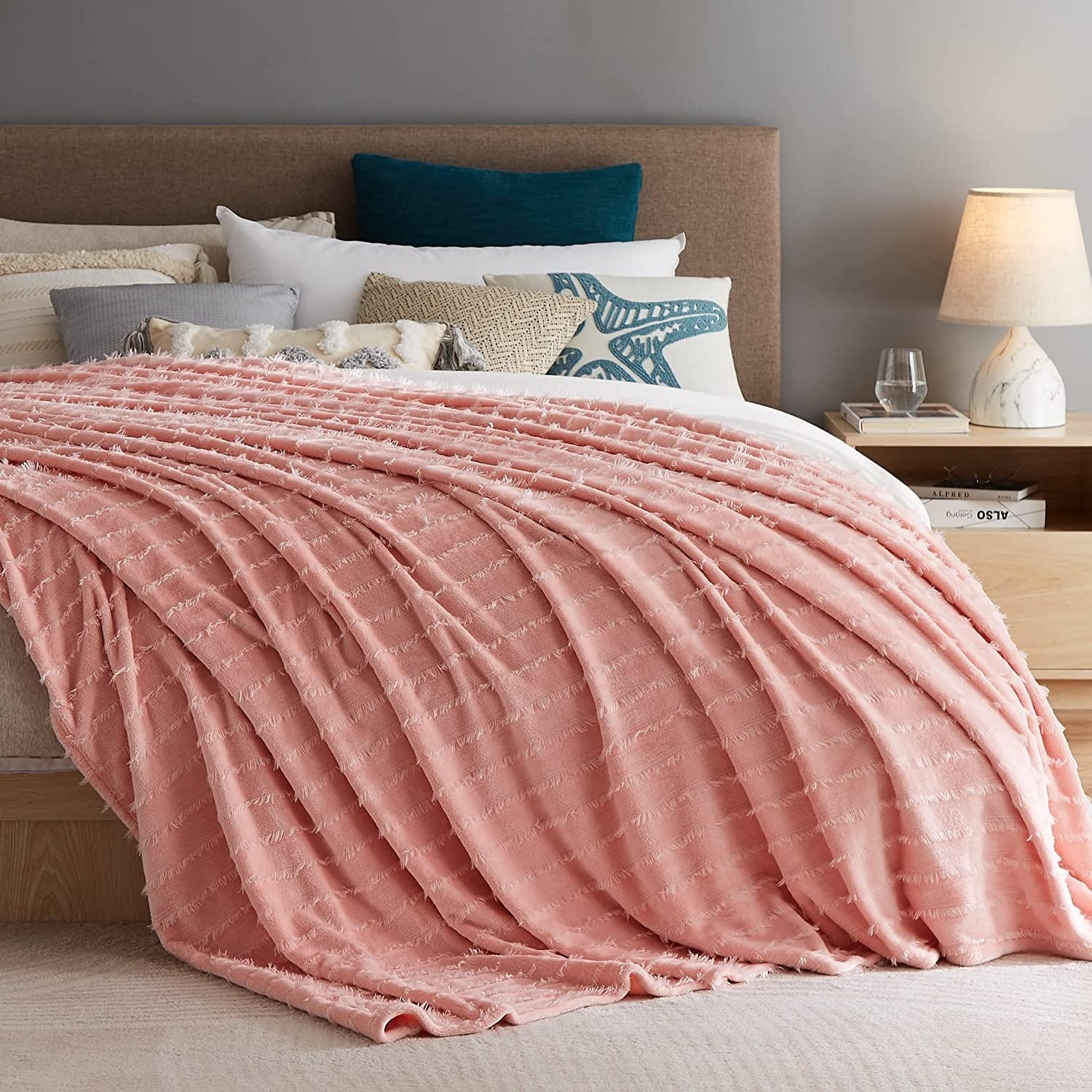 ���This Fleece Blanket is soft and versatile.Like many fleece items, the blanket is crafted from a synthetic material��microfiber polyester, to be exact. In addition to being incredibly soft, this material promises to hold up over time, resisting wrinkles and maintaining its color, even when subjected to the wear and tear of everyday life. The blanket is available in four different sizes (30*40,50*60,90*90,90*108)and four different colors(Grey, Navy, Teal, Pink), so you shouldn��t have any trouble finding an option that suits your space. And since the blanket is machine wash-friendly, you can give it a refresh whenever it needs one��no trip to the dry cleaner��s necessary.