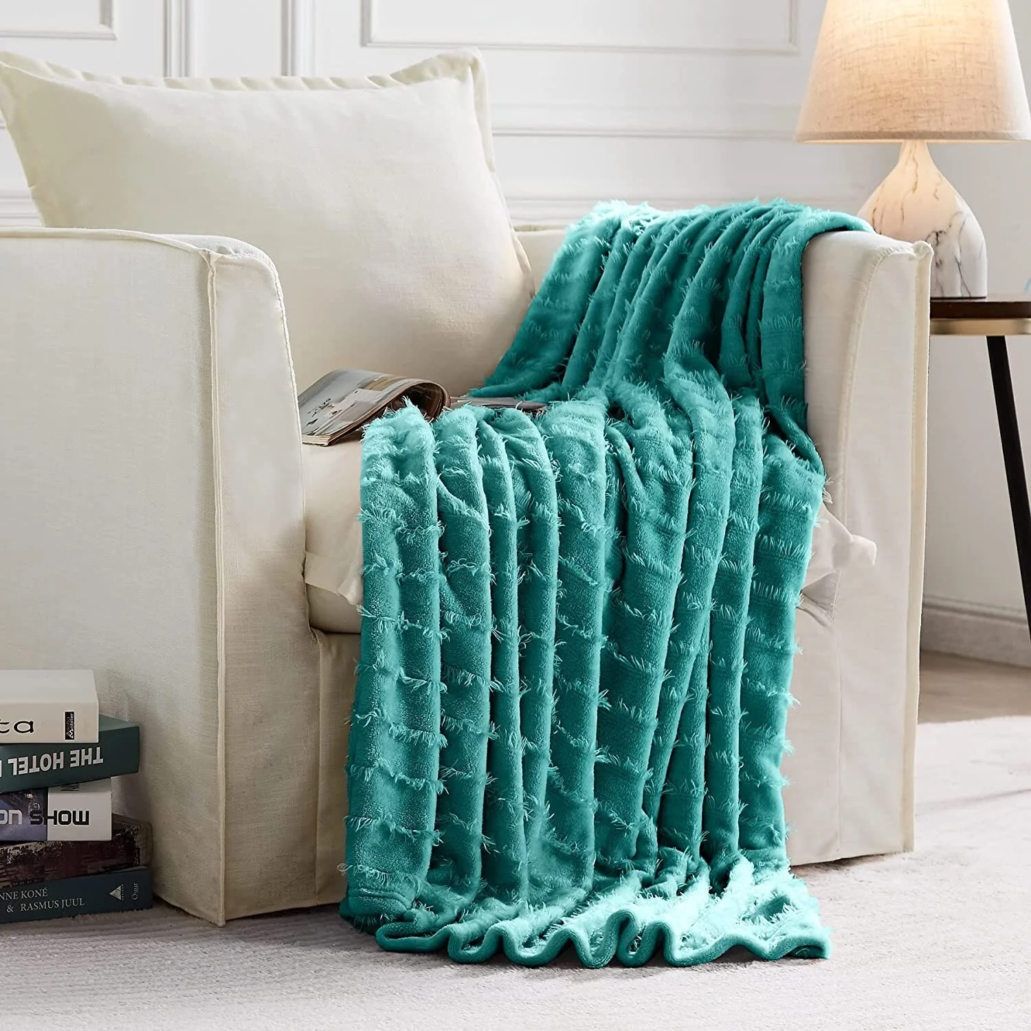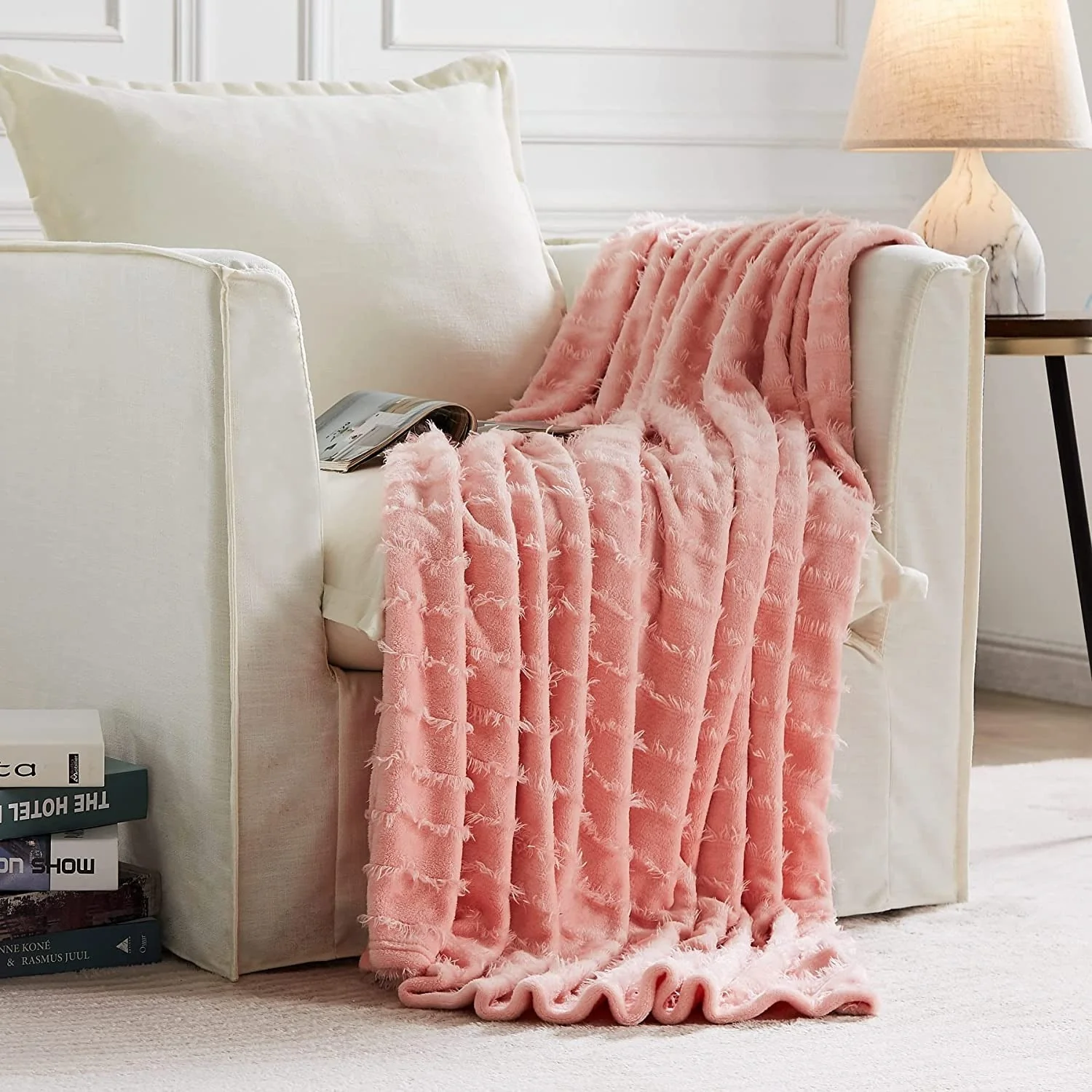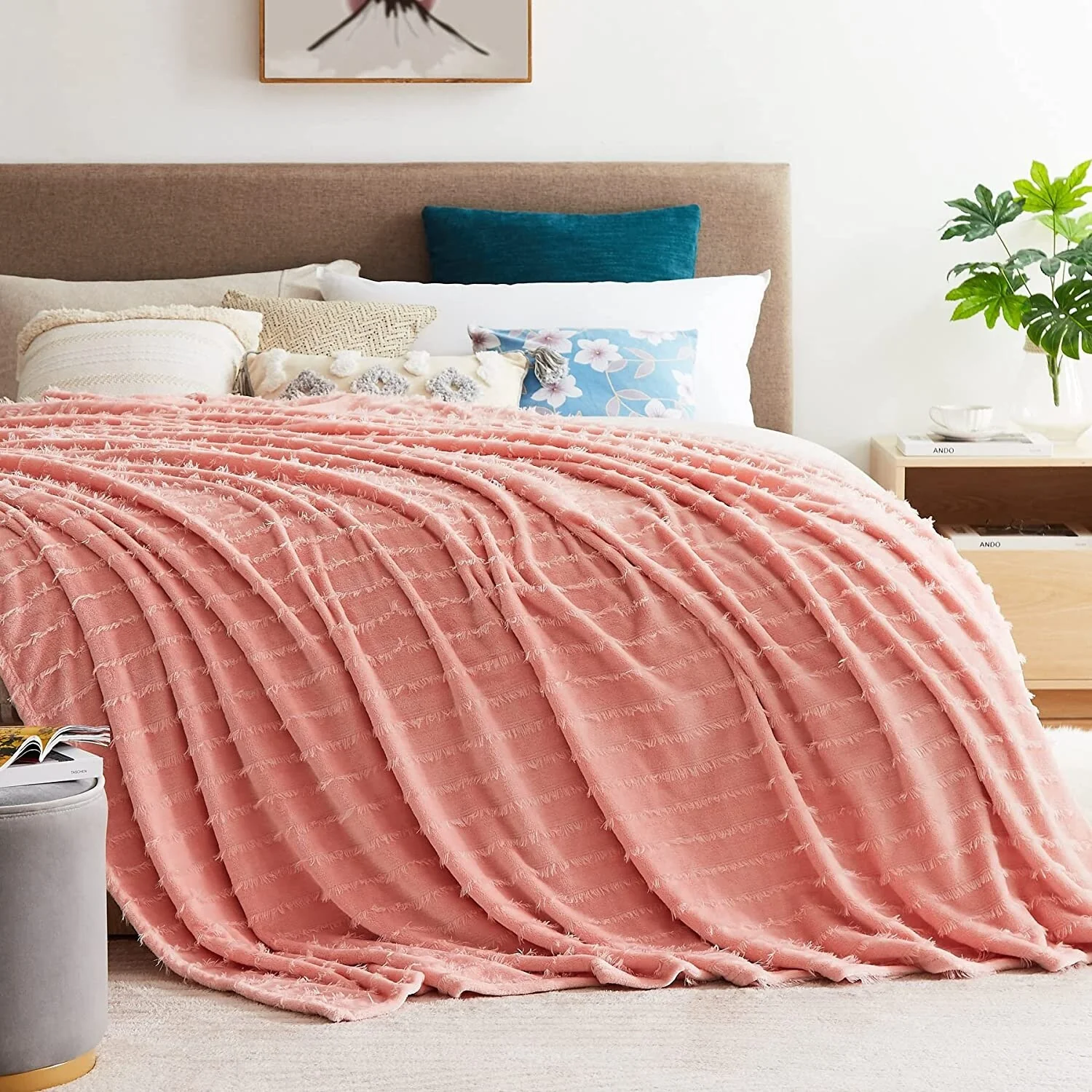 ���This Fleece Blanket is soft and versatile.Like many fleece items, the blanket is crafted from a synthetic material��microfiber polyester, to be exact. In addition to being incredibly soft, this material promises to hold up over time, resisting wrinkles and maintaining its color, even when subjected to the wear and tear of everyday life. The blanket is available in four different sizes (30*40,50*60,90*90,90*108)and four different colors(Grey, Navy, Teal, Pink), so you shouldn��t have any trouble finding an option that suits your space. And since the blanket is machine wash-friendly, you can give it a refresh whenever it needs one��no trip to the dry cleaner��s necessary.