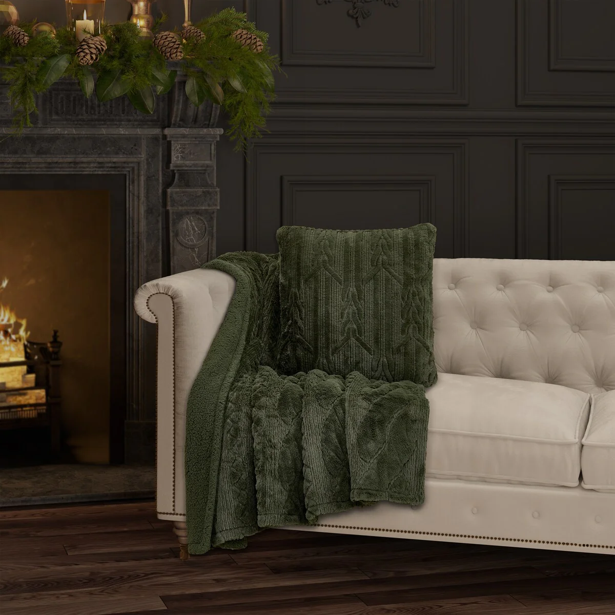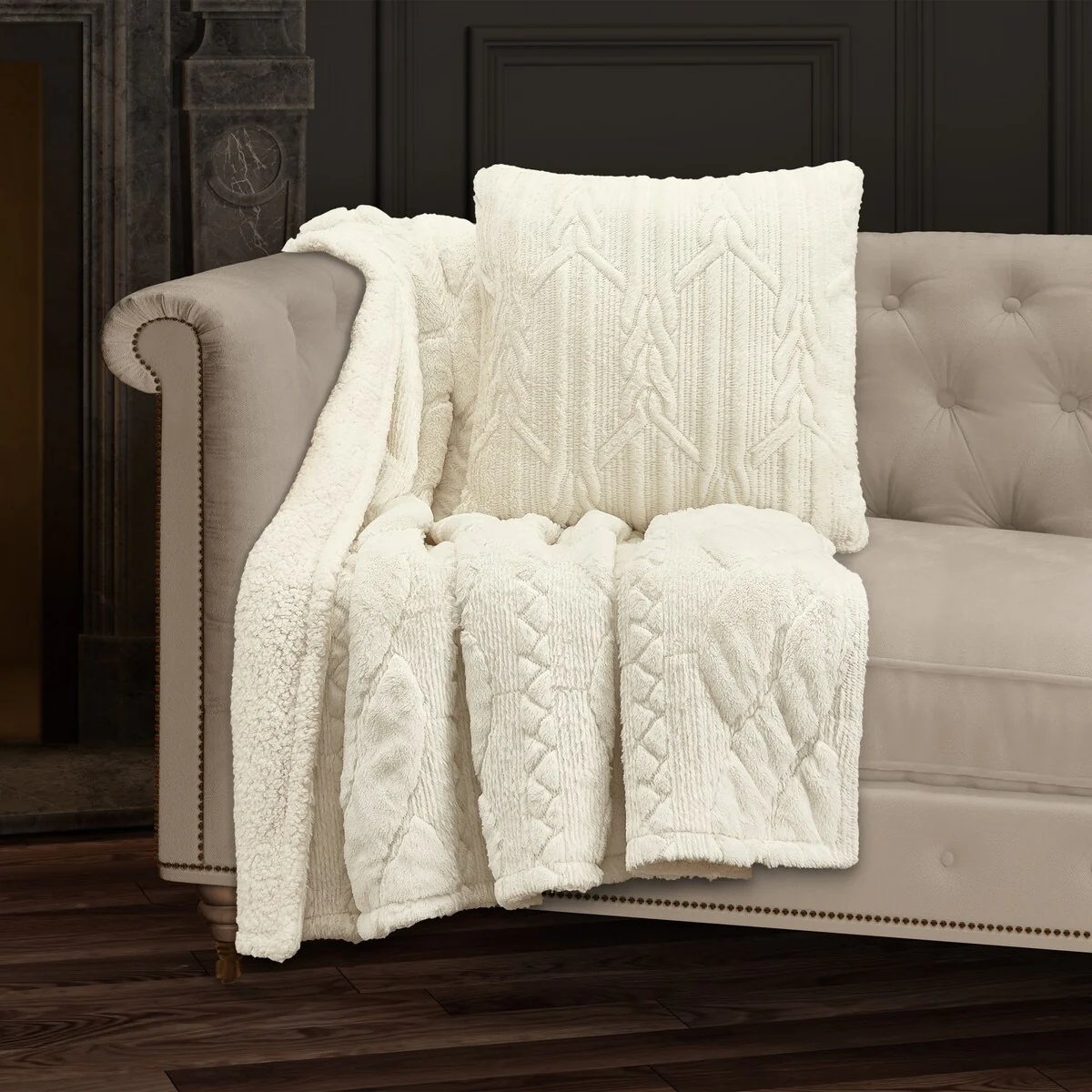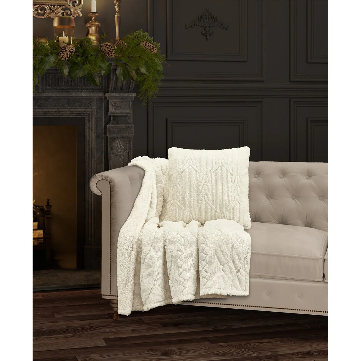The Cava Throw Blanket features a tufted plush fabrication that is delightfully soft and cozy. The unique grand scale cable design is tufted and quilted and is finished with a sherpa reverse making it truly irresistible. Layer this throw the Cava - Throw collection and decorate in style with luxurious Holiday bedding, bath and window from J. Queen New York. Available in evergreen, gold or winter white color options.