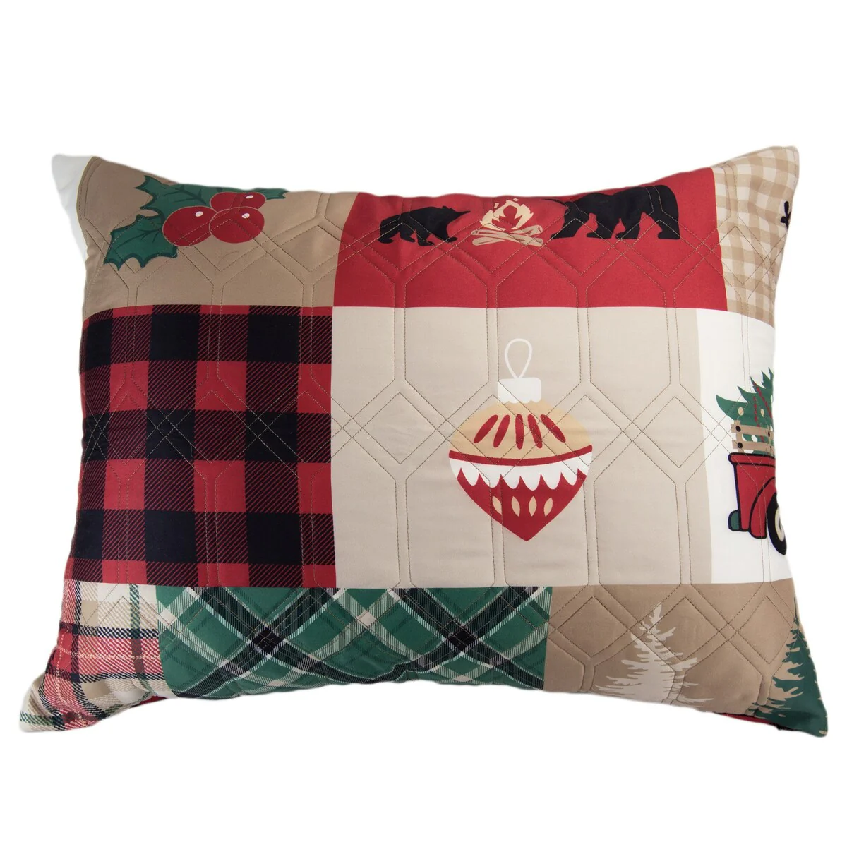 Bring the rustic charm of Christmas Forest from Your Lifestyle by Donna Sharp to your bedroom with this 3-piece polyester quilt set. Featuring bear, cabin, and deer motifs with traditional holiday elements in red, dark charcoal, tan, gold, pine green, and ivory, this light weight bedding ensemble is perfect for the holiday season. The reversible lining boasts a red buffalo check pattern. Made of easy care, machine washable polyester fabric, this set includes a quilt and 2 shams (Twin has 1 sham) in a FREE matching tote bag! All accessories are sold separately.