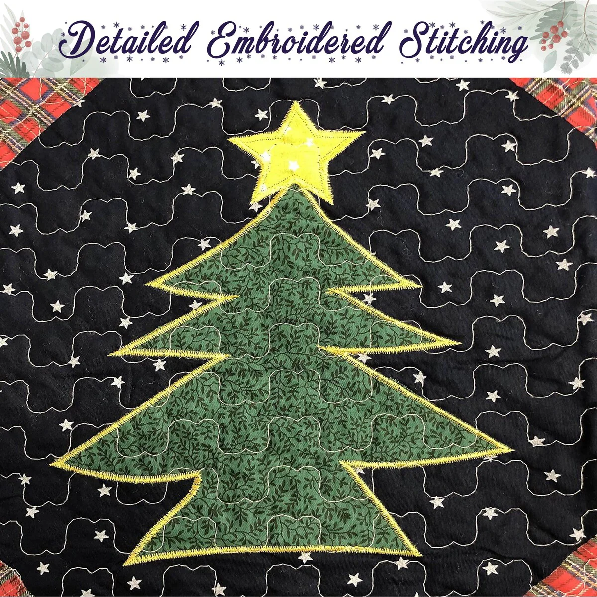 Get into the holiday spirit with the Cozy Line Christmas Night Patchwork 3-piece Quilt Set. Made with 100% cotton cover material and filled with soft polyester, this set includes a quilt and two shams (one in twin size). Its whimsical printed night scene and star pattern in festive shades of red, navy, green, and yellow make it perfect for sprucing up your bedding. And when it needs to be cleaned, simply toss it in the washing machine.
