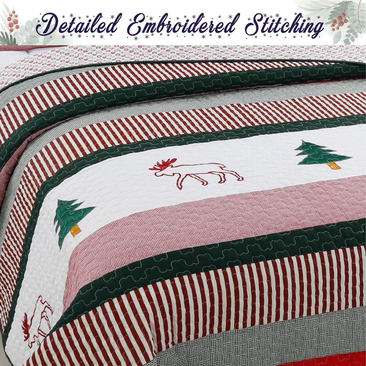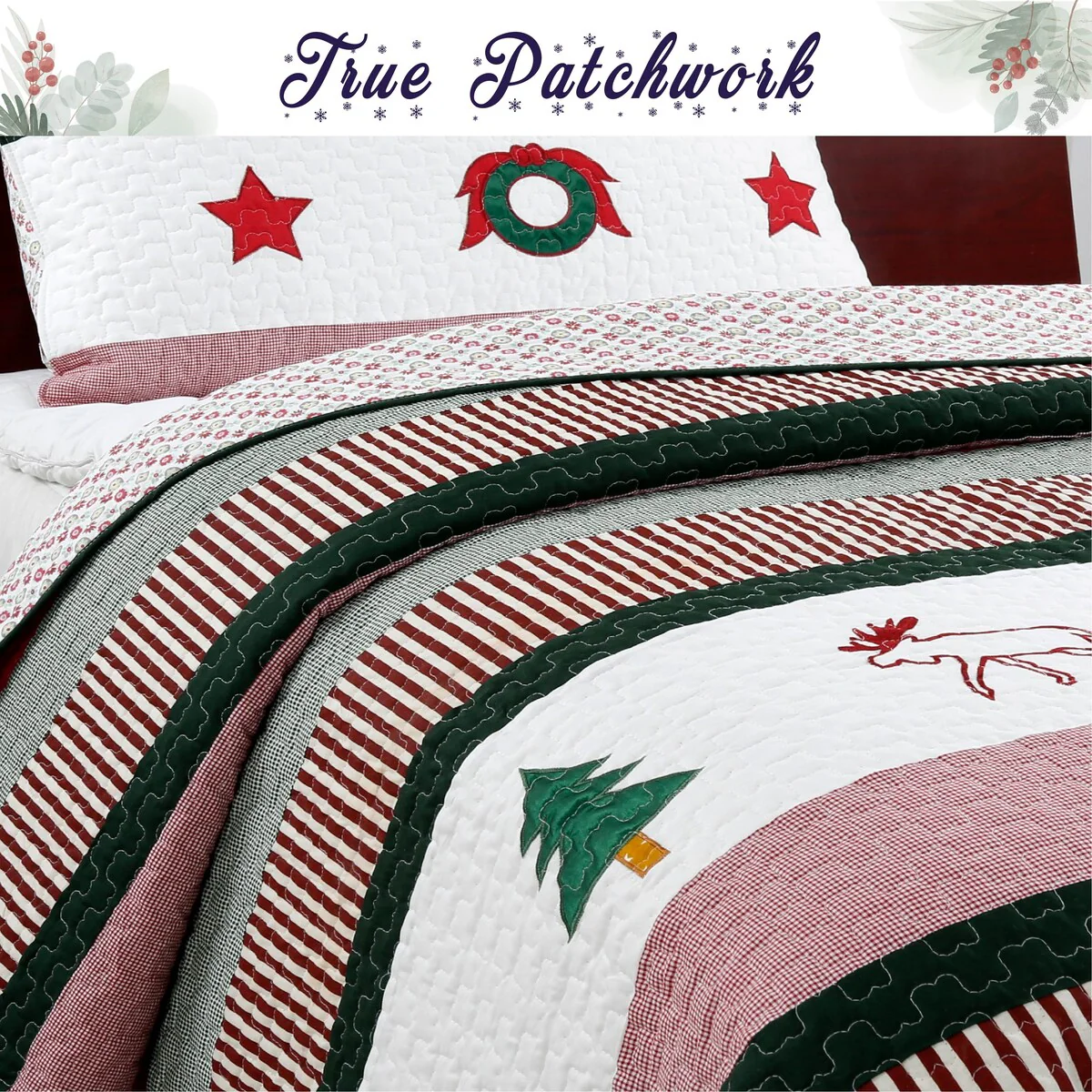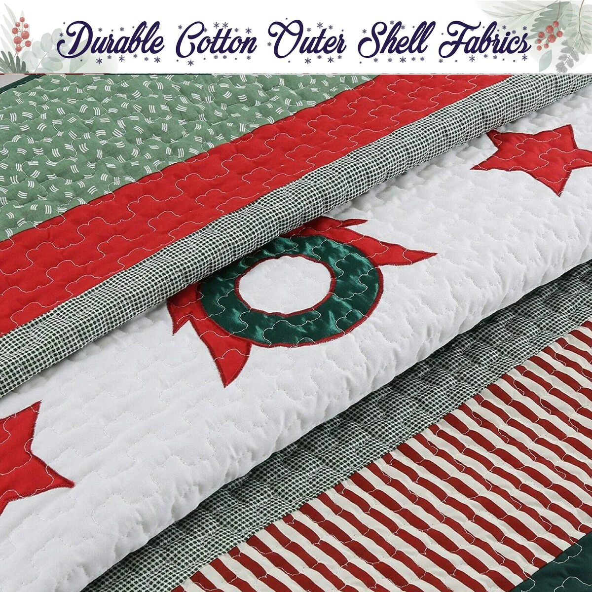 Transform your bedroom into a cozy Christmas wonderland with this whimsical Christmas Rustic three-piece quilt set. The polyester-filled quilt features a charming printed night scene and star pattern that will easily bring the festive spirit to your bed. Made of 100% cotton, this quilt set is machine washable for easy cleaning.