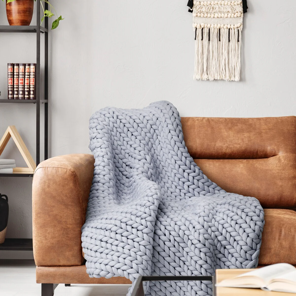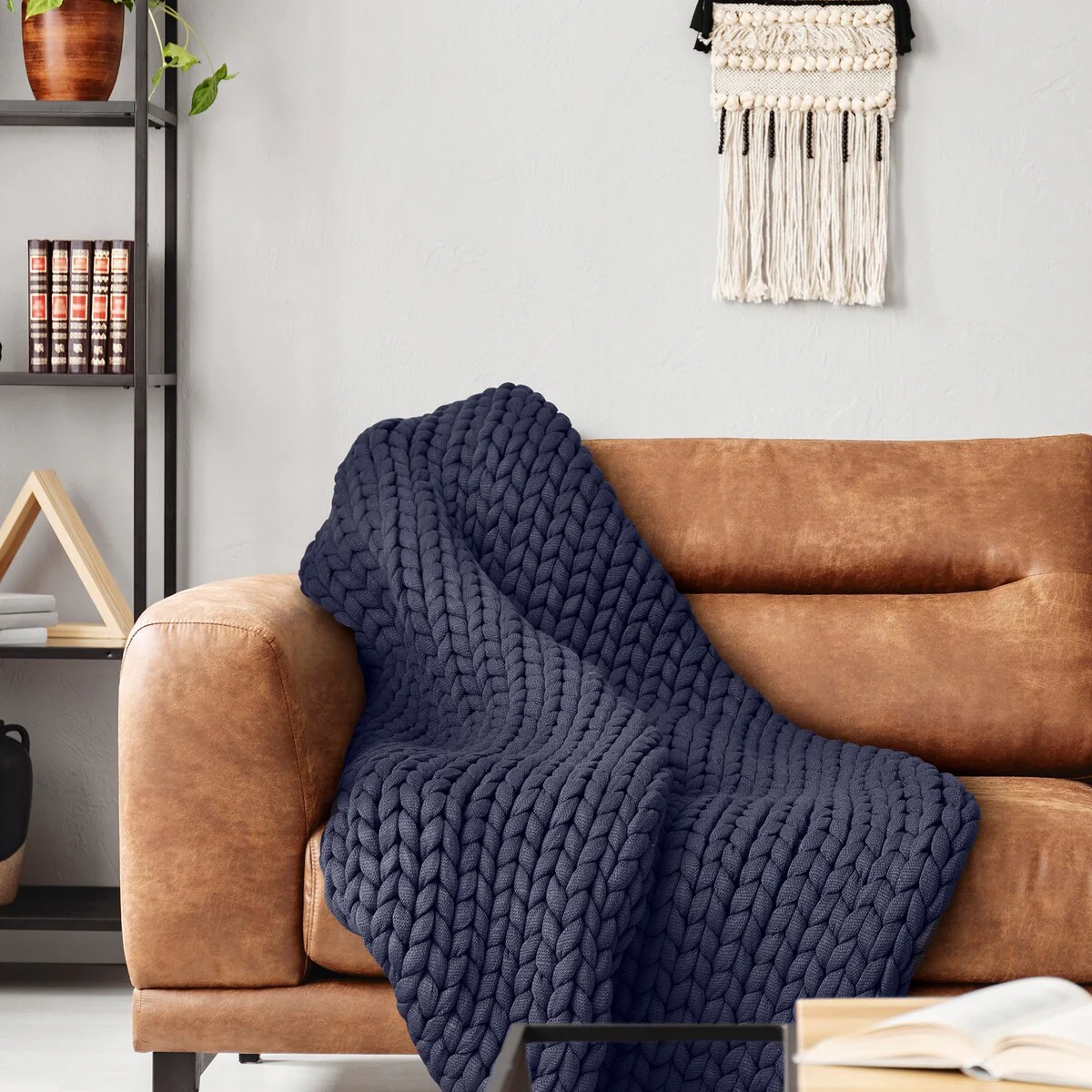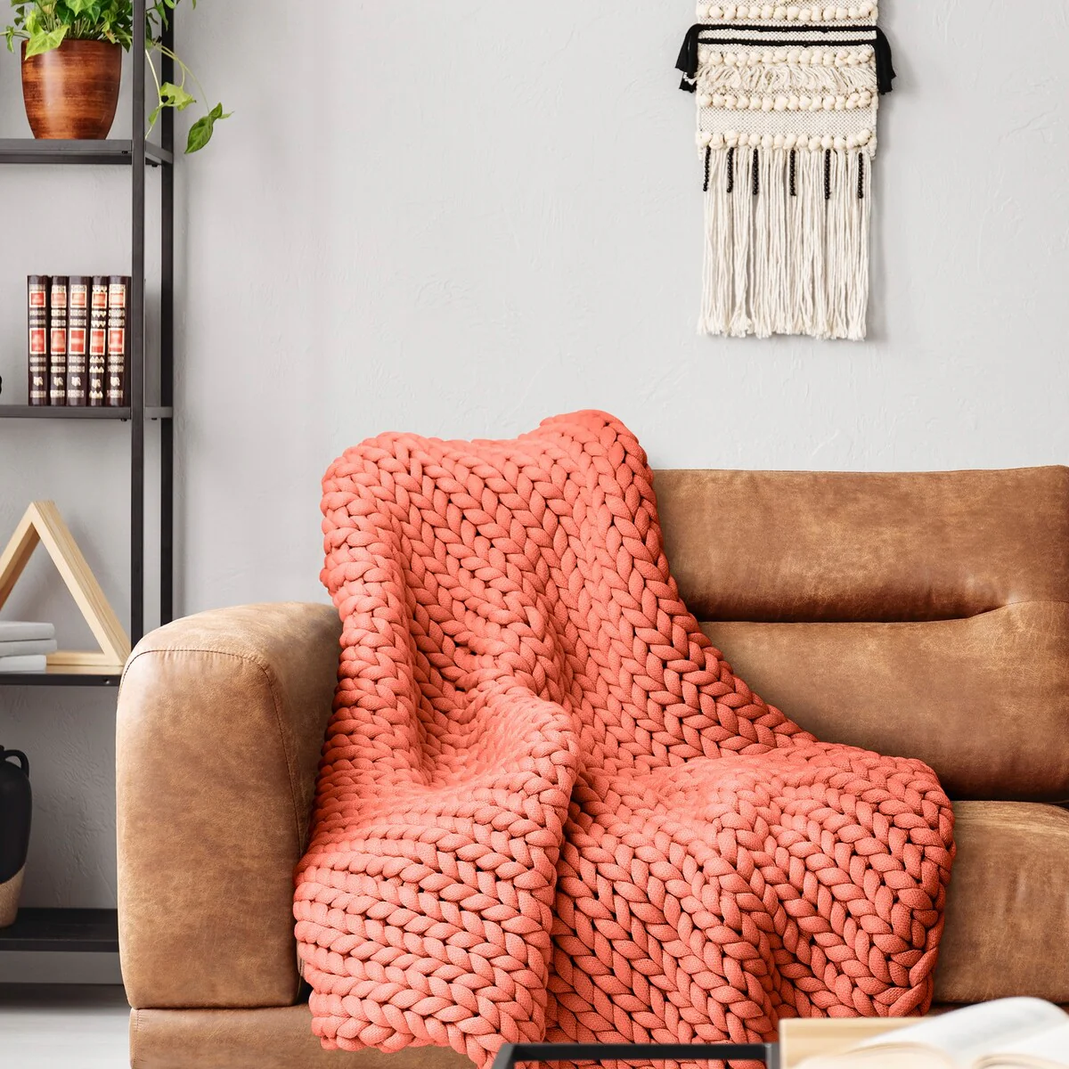 Our Your Lifestyle by Donna Sharp Chunky Knit Throw is the perfect addition to your cozy and stylish space. Made from soft acrylic yarn, this chunky knit throw is incredibly warm and luxurious. It features a solid pattern that brings modern appeal to any room in your home. With a size of 50 inches long x 40 inches wide x 1 inch thick, it's perfect for cuddling or draping it decoratively over your bed, chair or sofa. Plus, it comes in a variety of colors to match any decor. Get ready to receive compliments from friends and family on this incredibly soft and gentle throw.