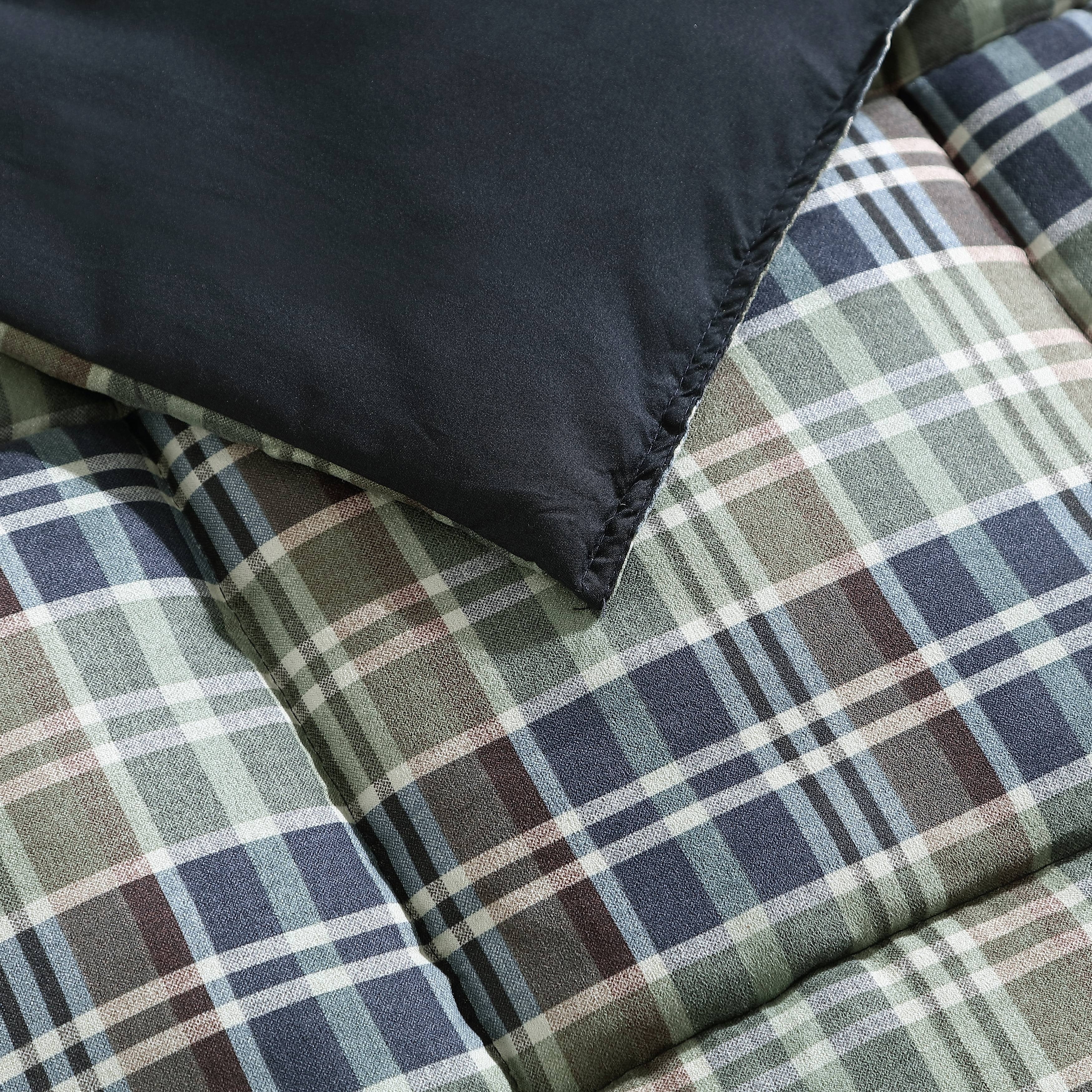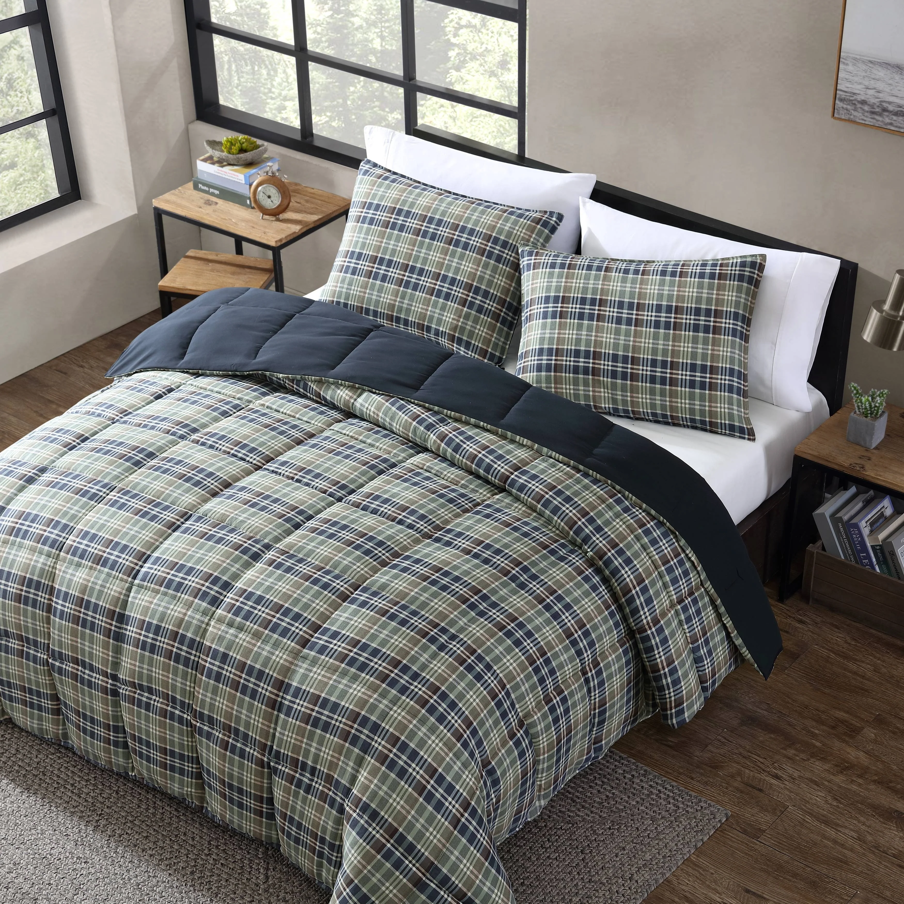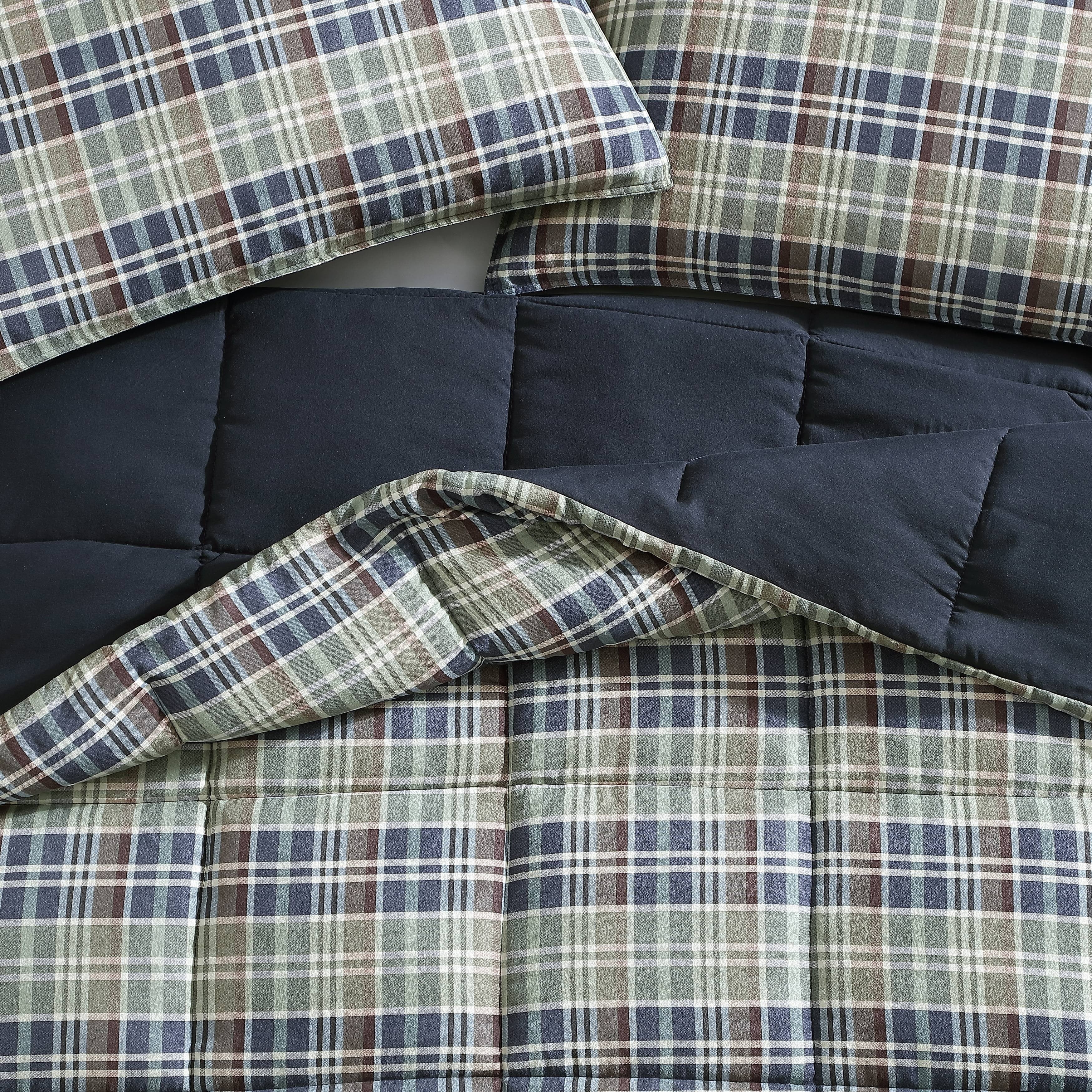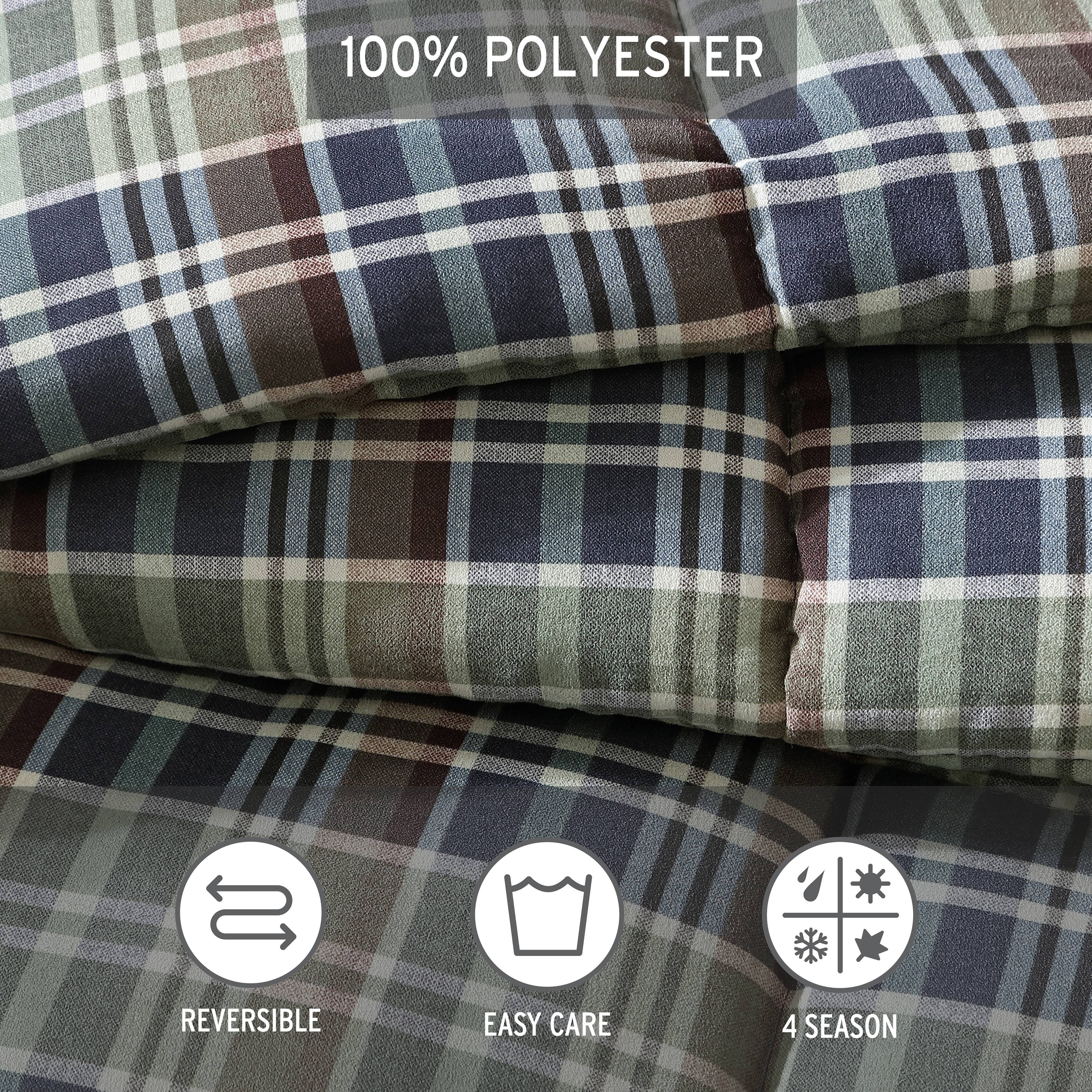 The Eddie Bauer down alternative comforter collection is crafted with 100% polyester fibers. The front of the set features super soft micro-suede, while the back features a brushed microfiber. Each comforter is filled with lofty polyester, providing extra warmth without the weight. Each set includes two matching shams for easy styling (twin size includes one sham). Machine washable for easy care, follow instructions on manufacturer care label for best results. Made thoughtfully and sustainably using non-toxic dyes. Pairs perfectly with the Eddie Bauer sheet collection, sold separately.
