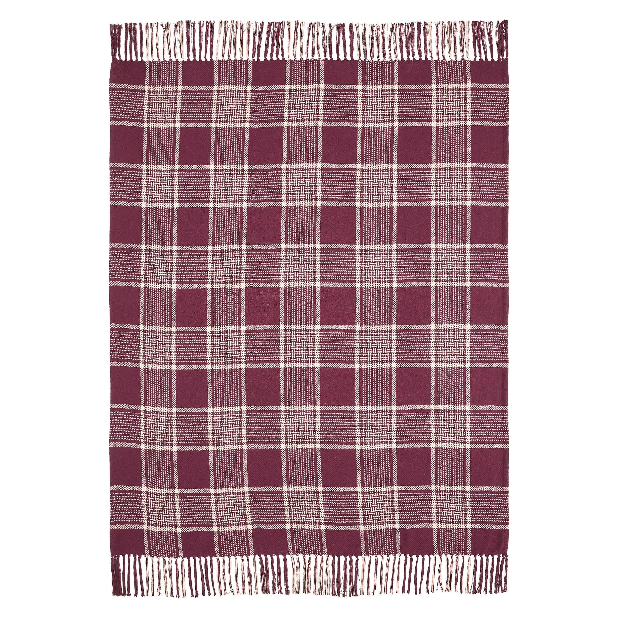 Deep burgundy and natural tan create a traditional tartan plaid for updated fall style. The Eston Burgundy Tan Plaid Throw measures 50x60 inches and features a deep red base with natural tan striping. Soft tassels add a finishing touch at each end of the throw blanket. Sling on the back of a chair or sofa for a perfect splash of autumn style. Machine washable and iron safe.