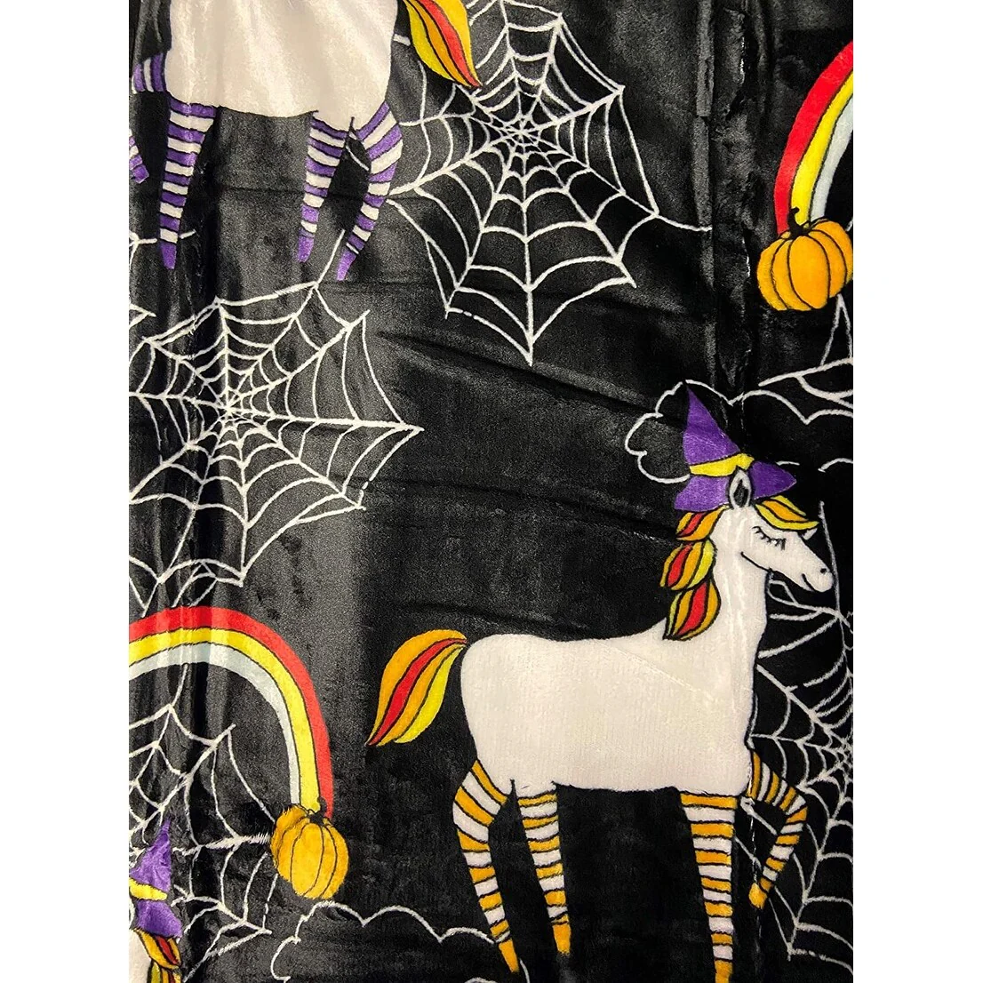Get into the spooky spirit with our Happy Halloween Microplush Throw Blanket featuring adorable Halloween unicorns. Measuring 50" x 60", this ultra-soft blanket is perfect for snuggling up on your couch, bed, or favorite chair. It's also lightweight and travel-friendly, so you can take it along on trips for ultimate comfort. Whether you're watching TV with your family or enjoying a hot cup of coffee or cocoa, this cozy blanket is a must-have for the Halloween season.