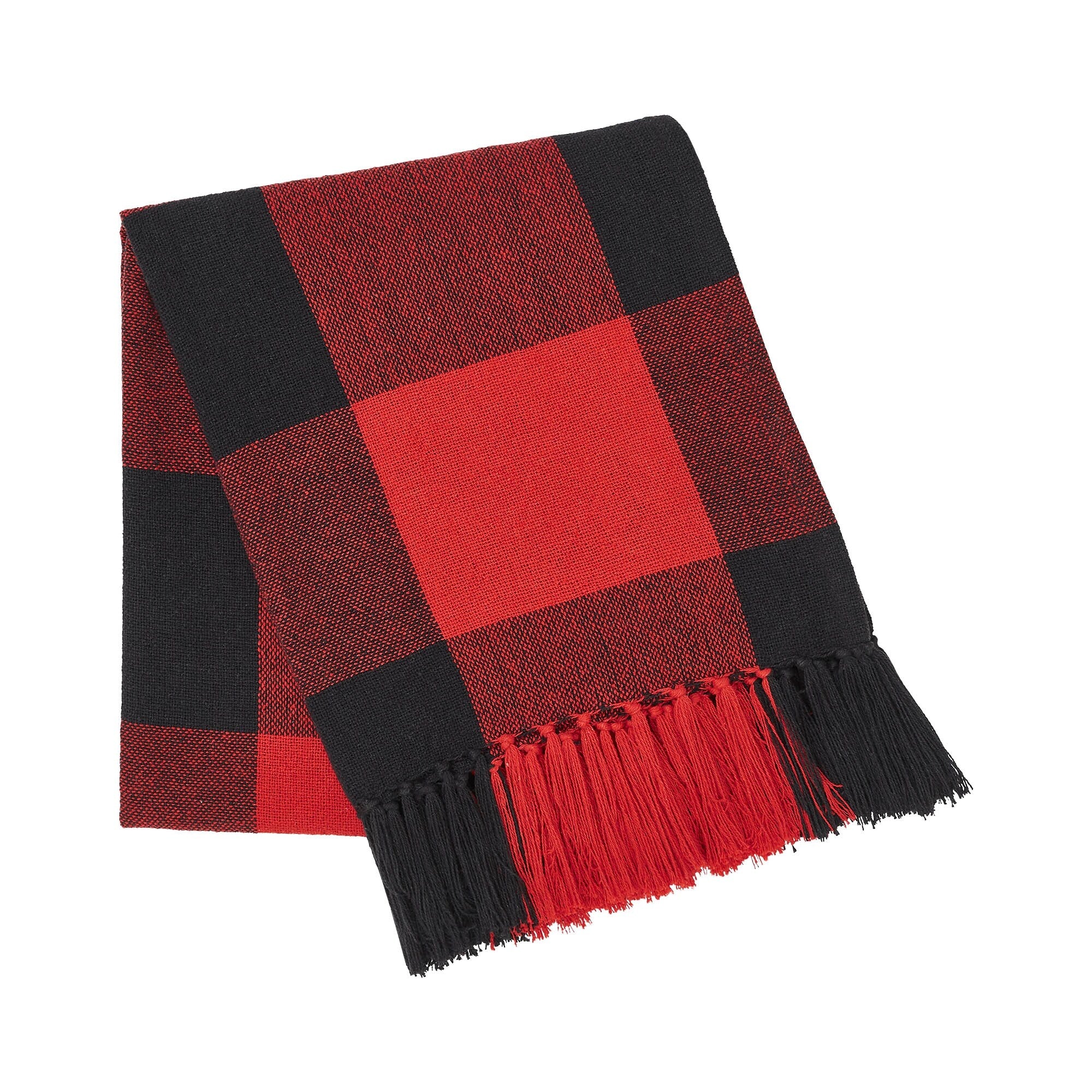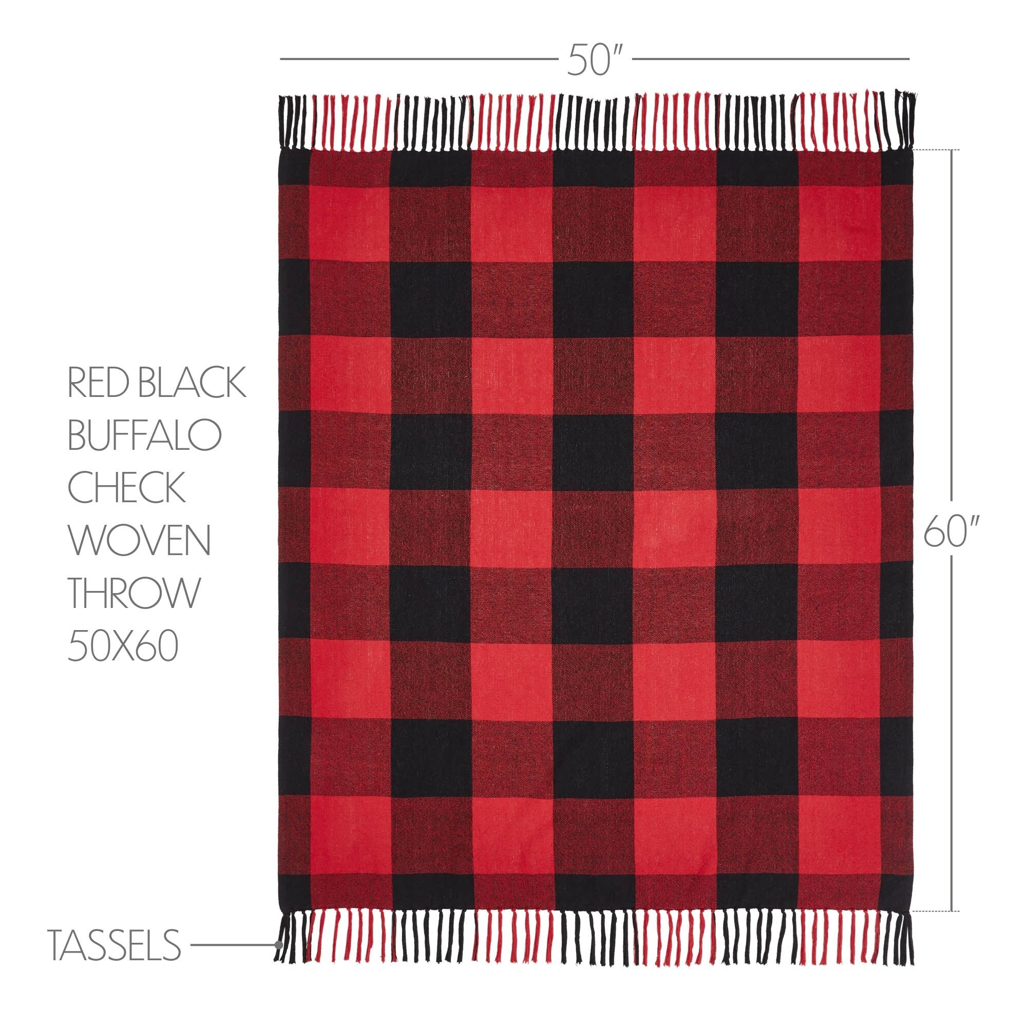 Transform your home into a cozy winter lodge with timeless plaid. The Harper Check Woven Throw measures 50x60 inches. The classic rustic country throw blanket features soft black and classic red checked plaid. Tasseled edging adds an extra pop of texture. Coordinates with the Harper Collection by VHC for rustic country style for your whole home.