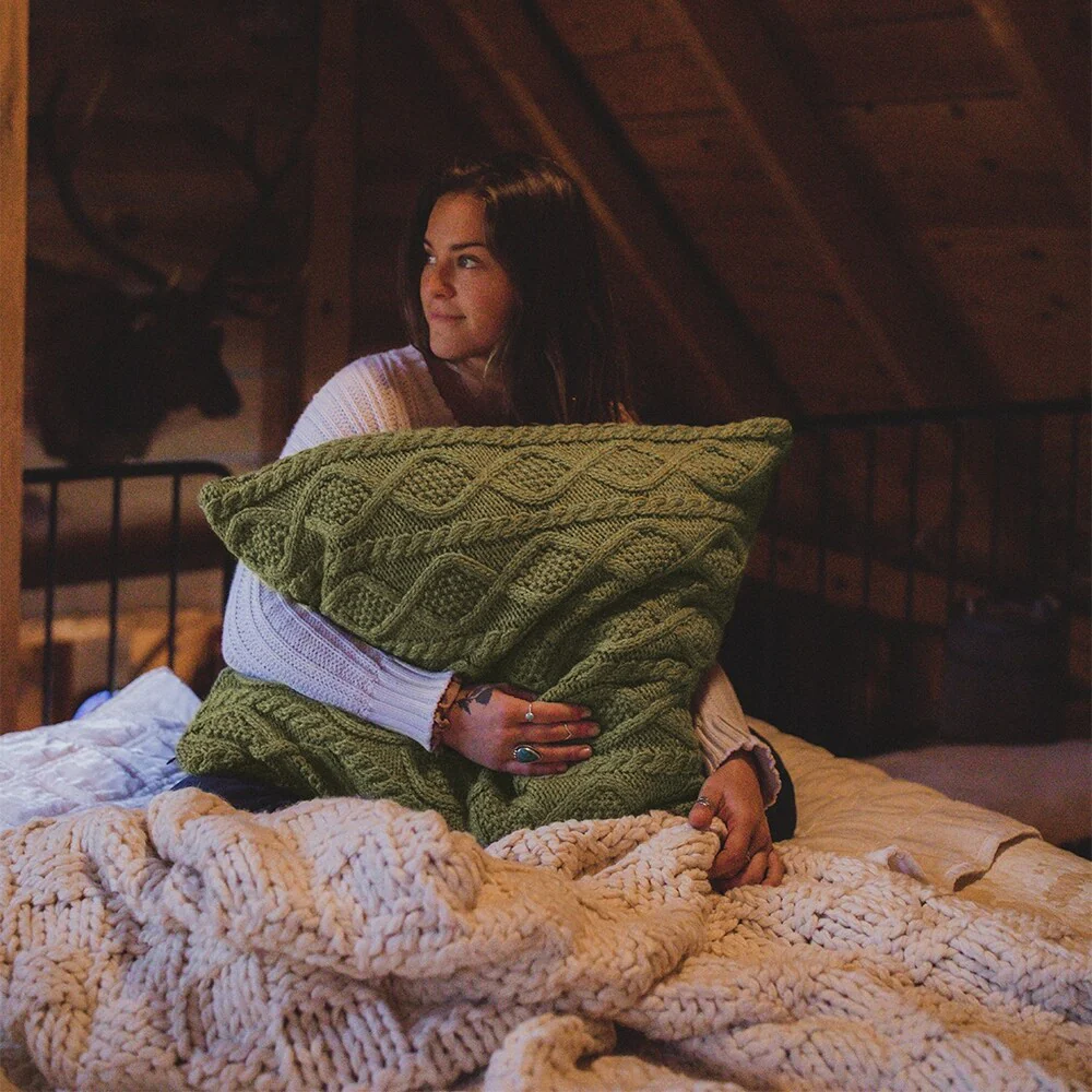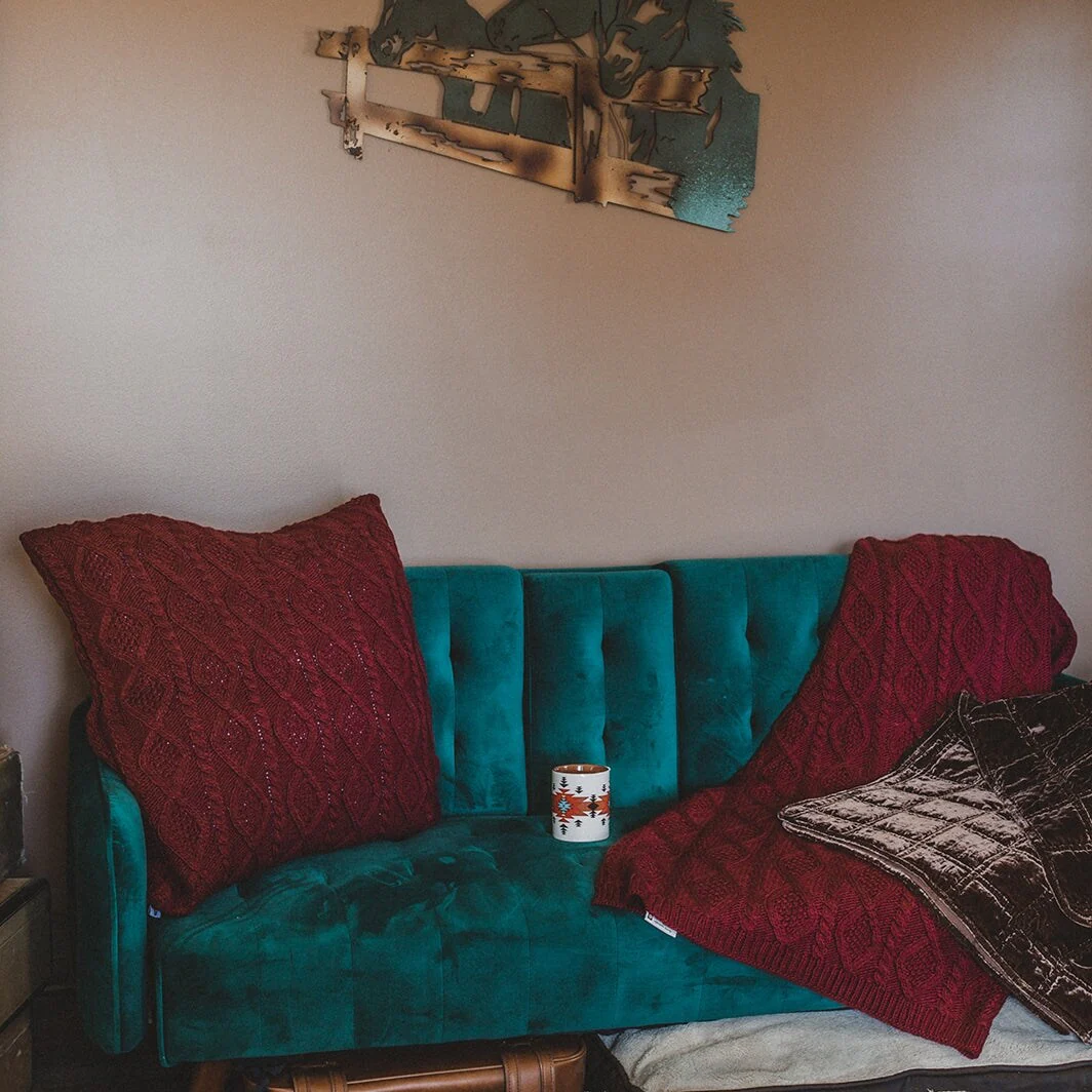 Chase the chill away with this soft and striking cable knitted throw with diamond accents. It makes a lovely addition to any bedroom or living room.