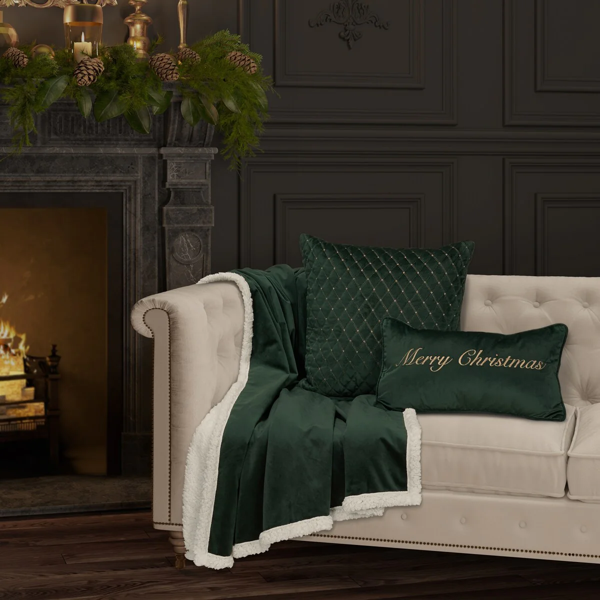 The Casey Sherpa - Throw Throw Blanket is the perfect Casey companion to cuddle up with during the luscious holiday season. The throw is made of luxuriously soft velvet that reverses to a Casey white sherpa and is quilted with a diamond design. The sherpa frames the throw so you can wrap it around for comfort on those chilly nights. You'll leave this on your bed to stay Casey and warm long after the holidays. Available in Christmas crimson white or evergreen color options.