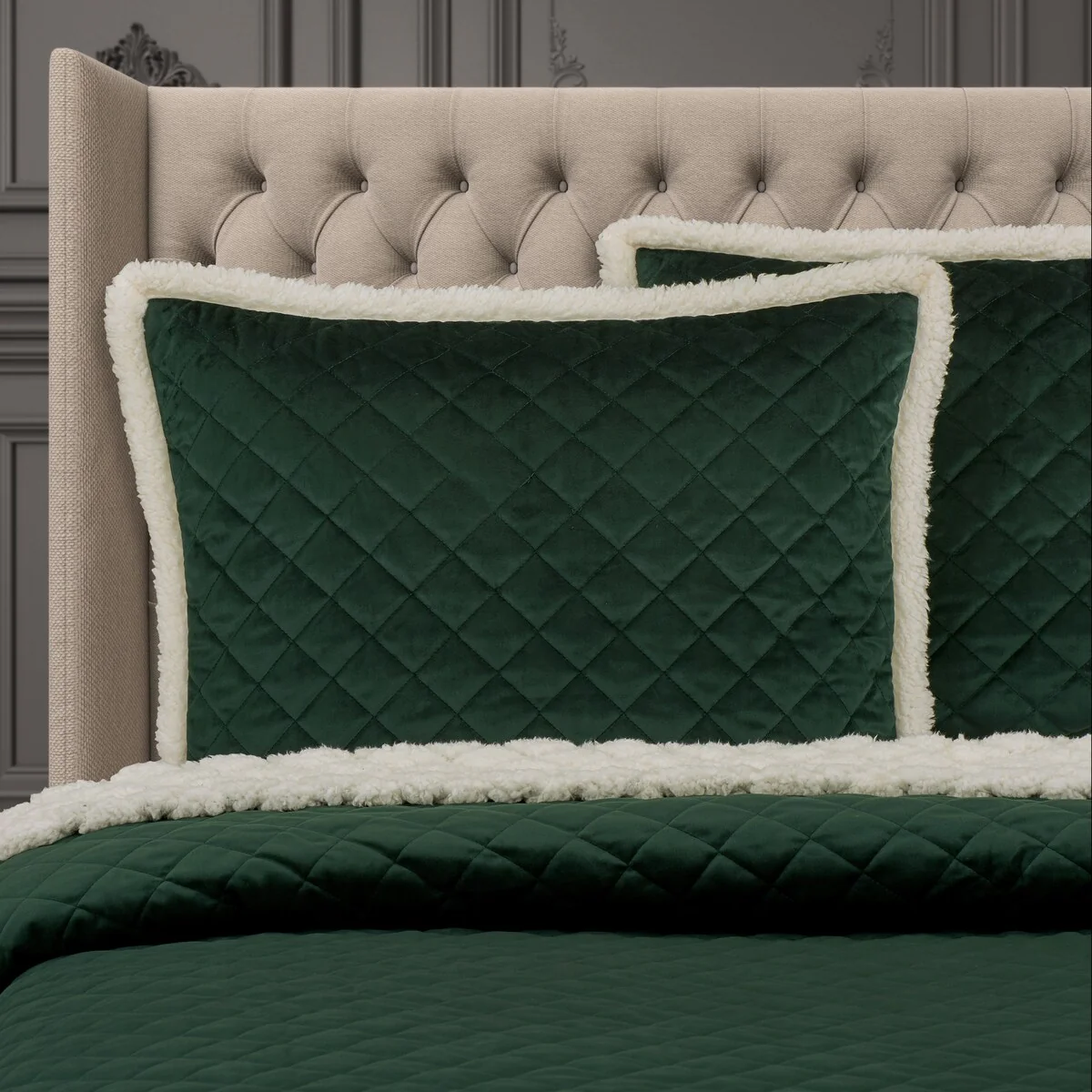 Casey up in style this holiday season with the J. Queen New York Casey Sherpa Quilt Set. Made of soft velvet that reverses to a fluffy white sherpa, this set features a diamond quilted design and includes matching shams. Perfect for staying warm all winter long, the Casey Sherpa Quilt Set is available in festive colors: Christmas crimson, white, and evergreen.