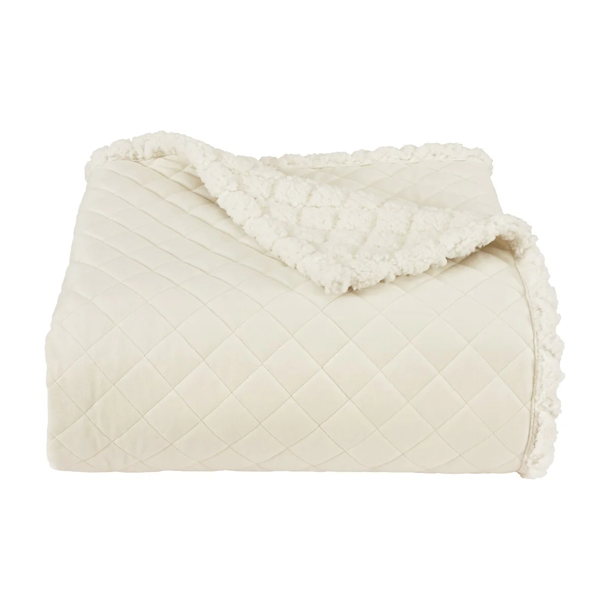 - Reversible design with fluffy white sherpa on one side