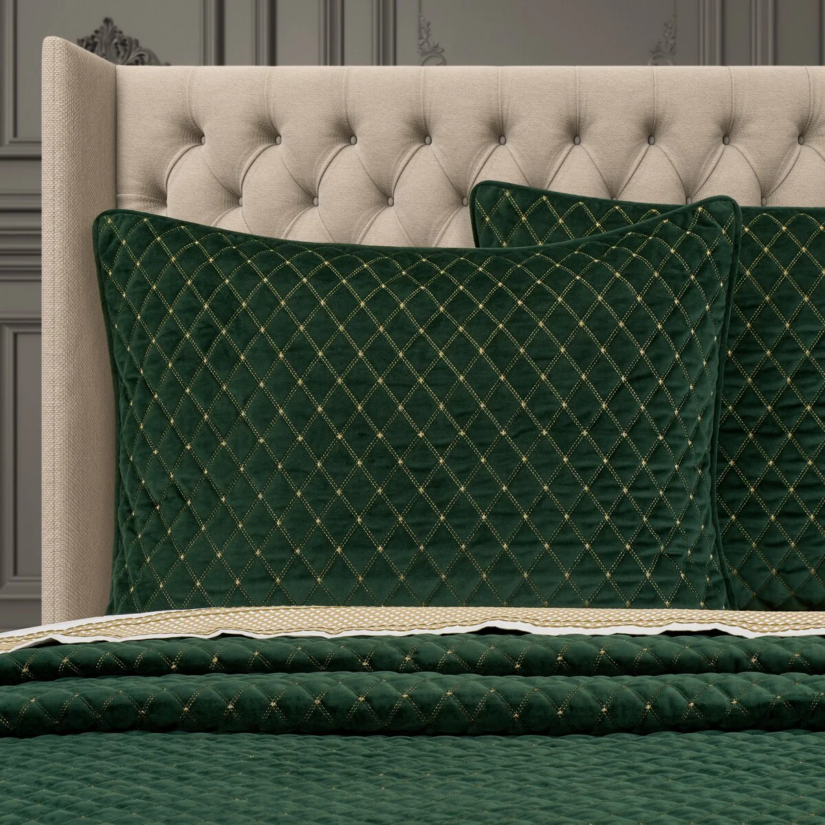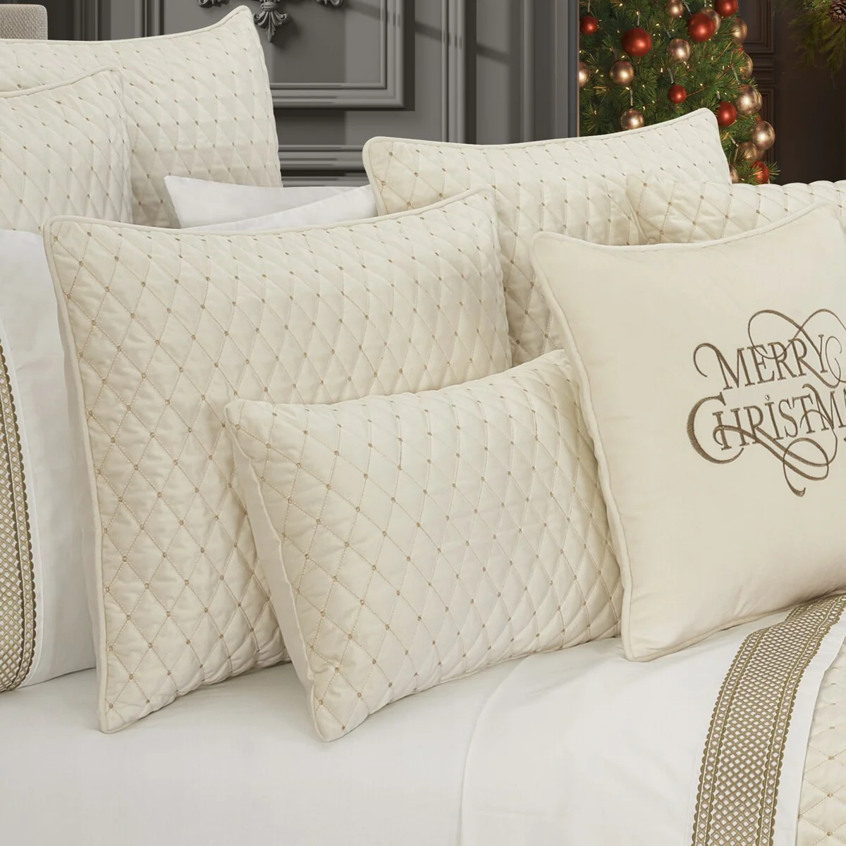 Get into the festive spirit with the Grandeur Christmas Quilt Set from J. Queen New York. This luxurious bedding ensemble boasts lavish softness and elegance, featuring diamond quilt stitching paired with metallic gold dot details and a binding trim. The perfect addition to your holiday d茅cor, the Grandeur Crimson Quilt Set is available in stunning crimson red, white, or evergreen color options.