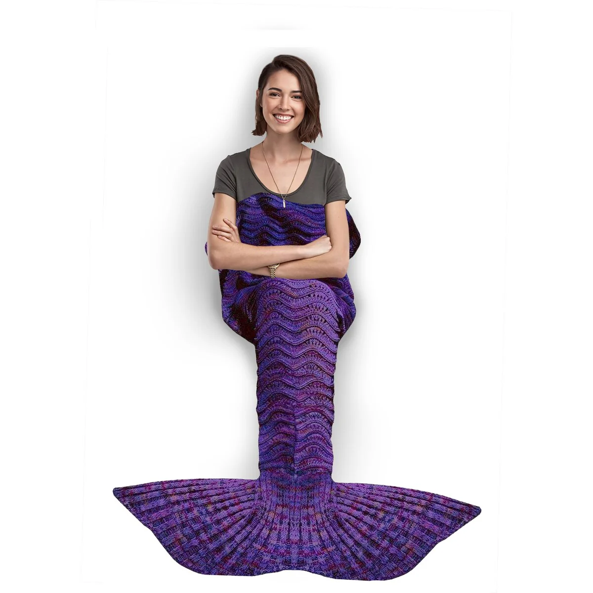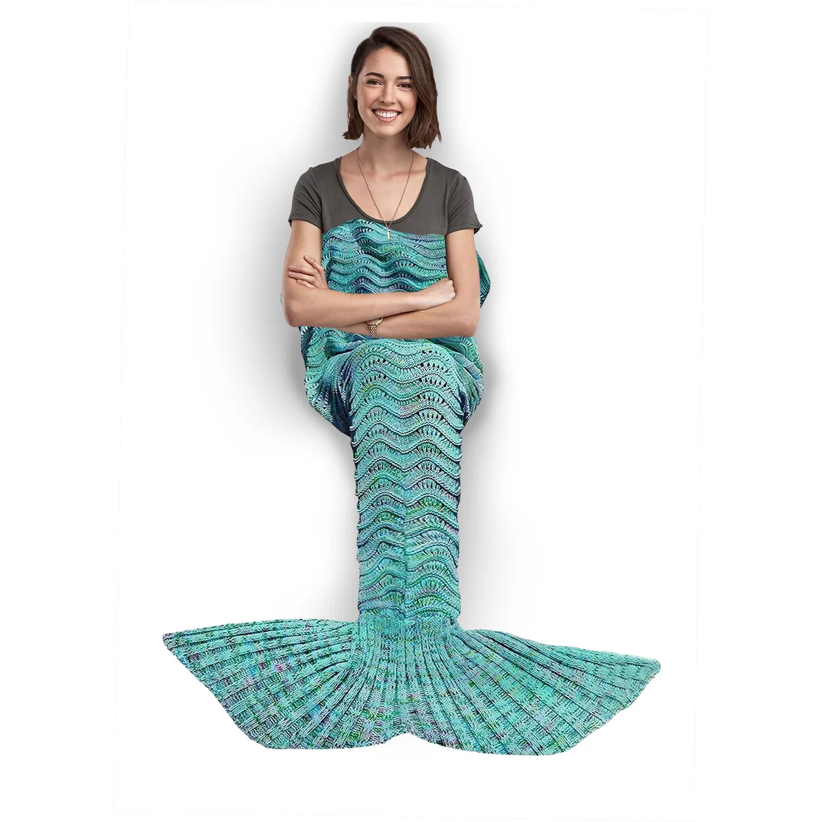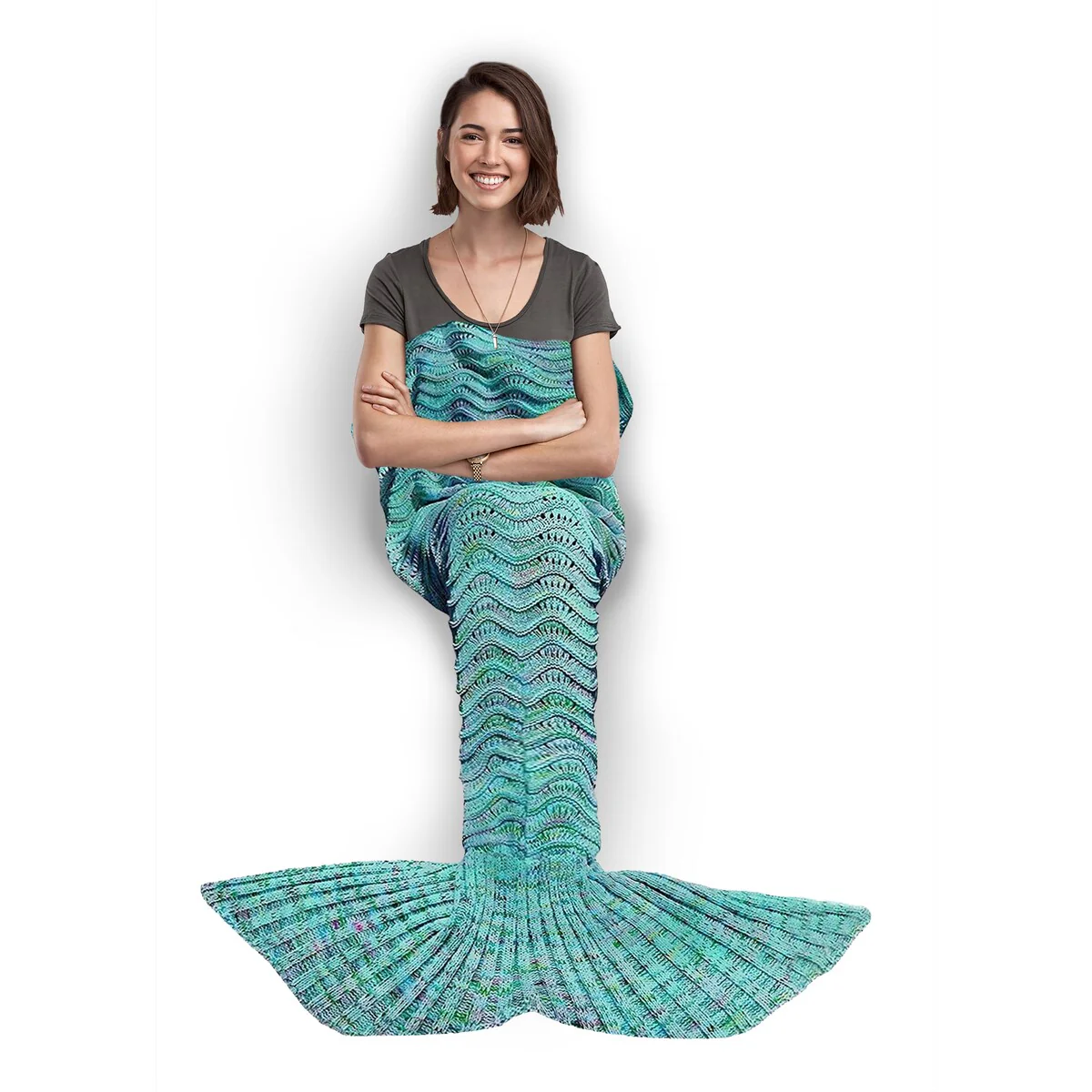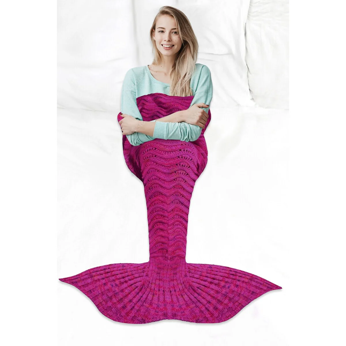 Get cozy and transform into a mermaid with this Knitted Mermaid Tail Throw Blanket. Perfect for all ages, this blanket is great for snuggling up while watching movies, reading books, or just lounging around at home. Made of high-quality, 100% crocheted material, it is soft, comfortable, and machine washable. The blanket measures 72in x 32in, making it the perfect size for both kids and adults.