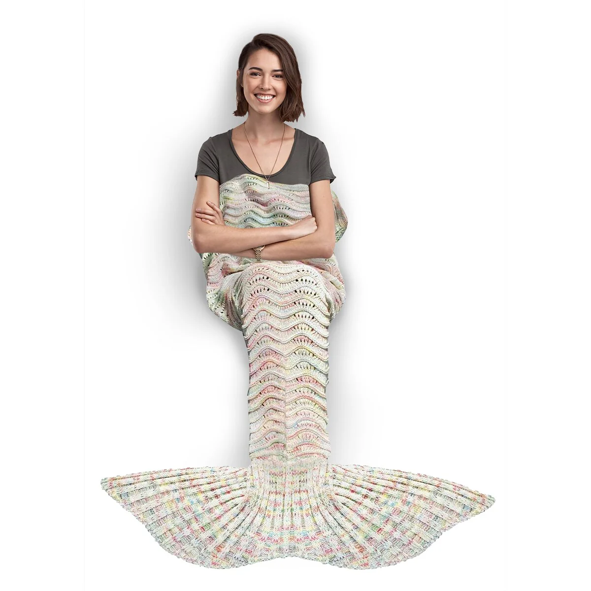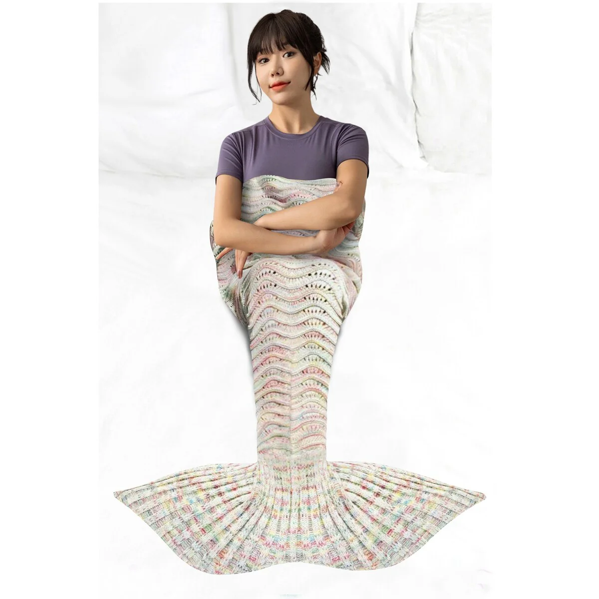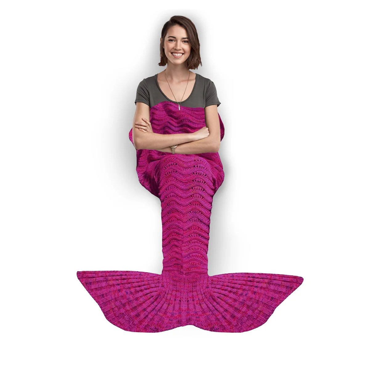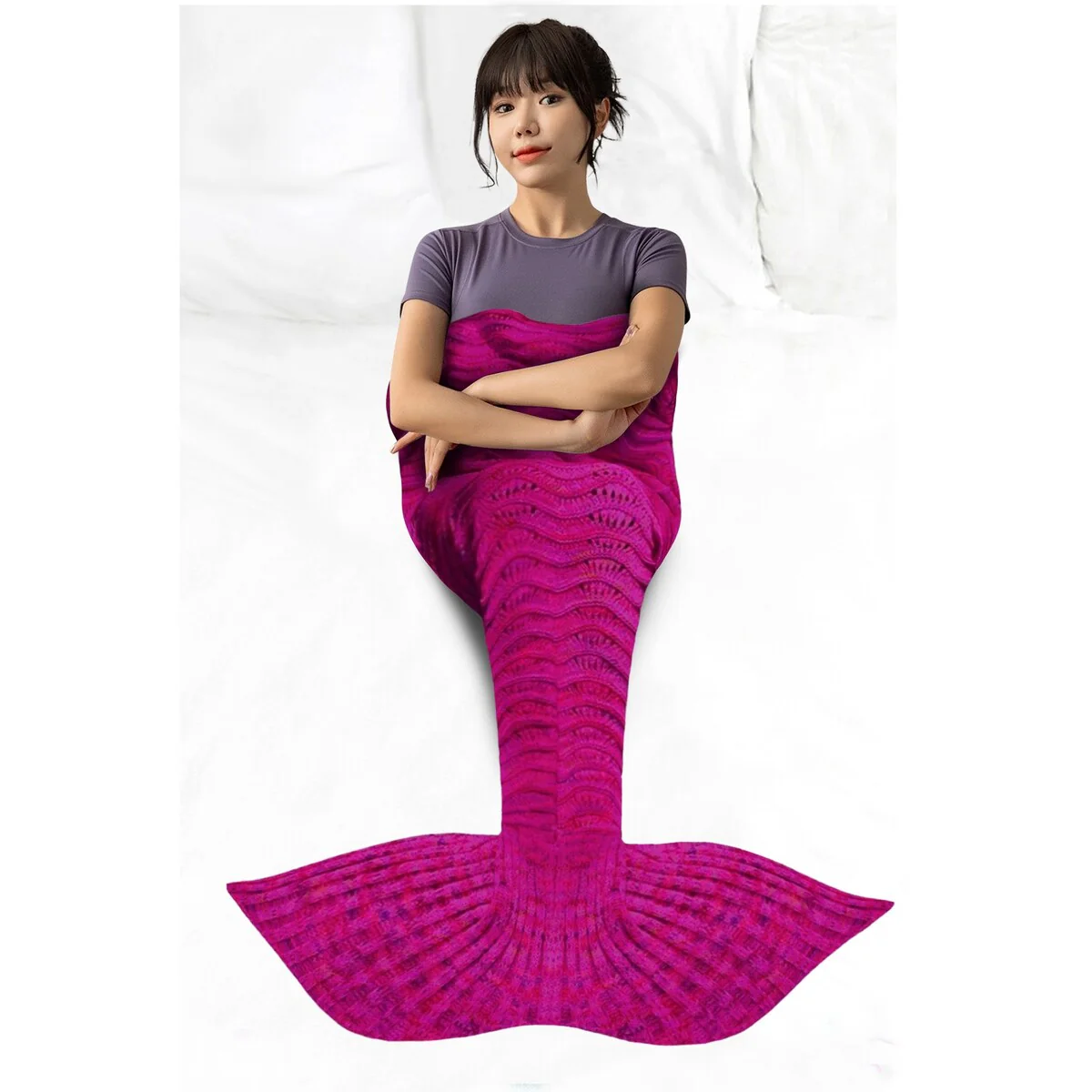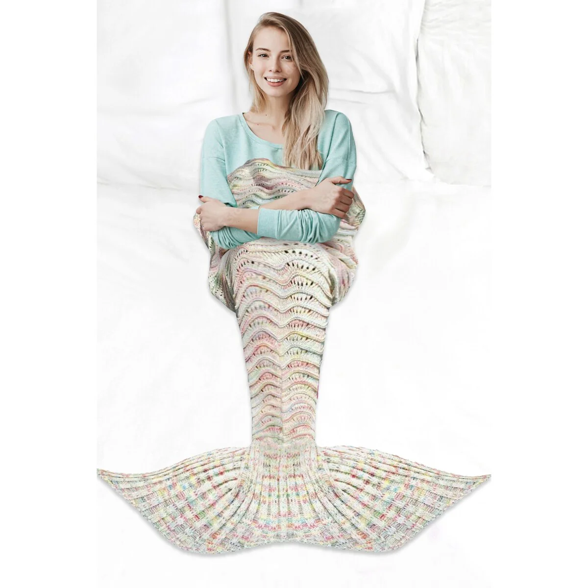 Get cozy and transform into a mermaid with this Knitted Mermaid Tail Throw Blanket. Perfect for all ages, this blanket is great for snuggling up while watching movies, reading books, or just lounging around at home. Made of high-quality, 100% crocheted material, it is soft, comfortable, and machine washable. The blanket measures 72in x 32in, making it the perfect size for both kids and adults.