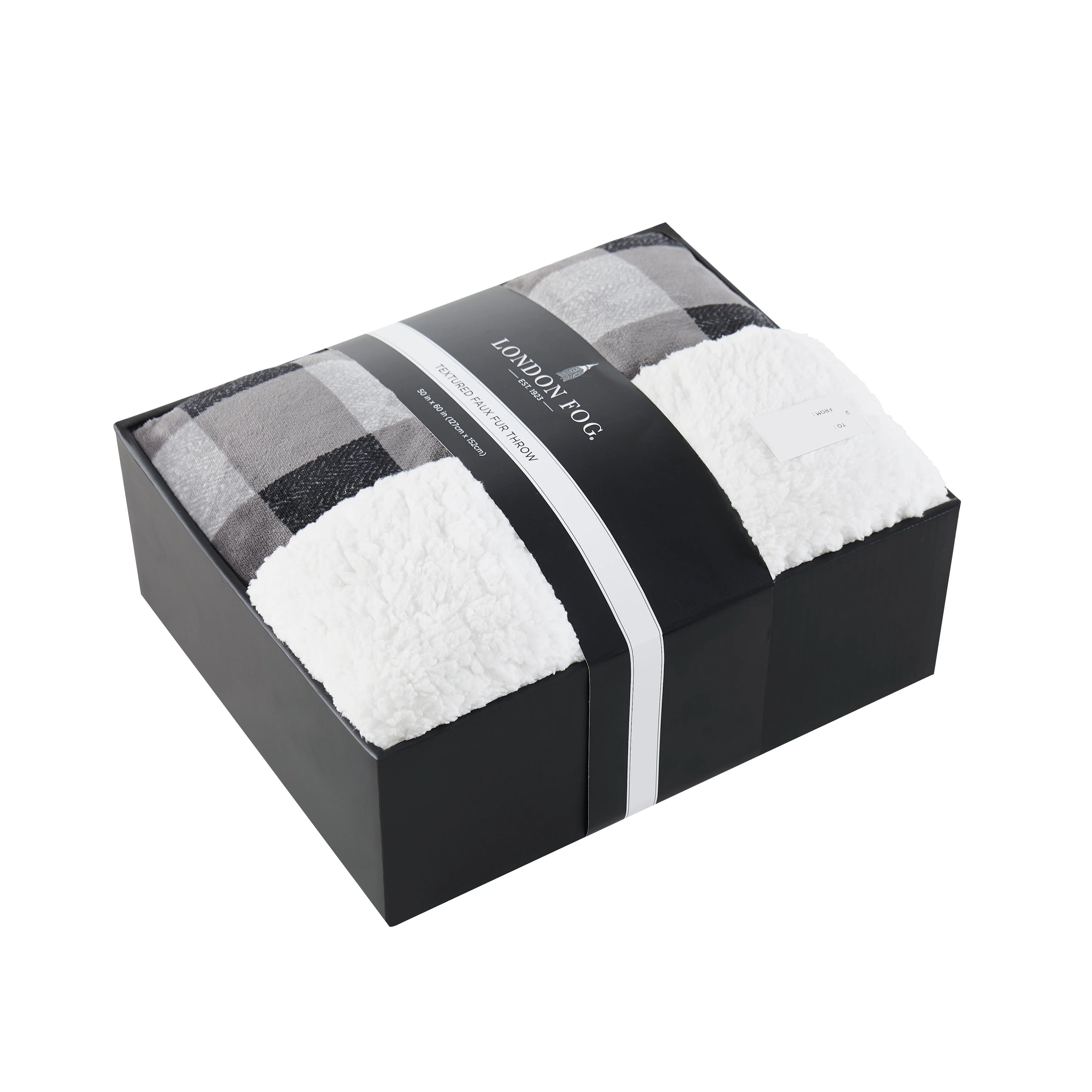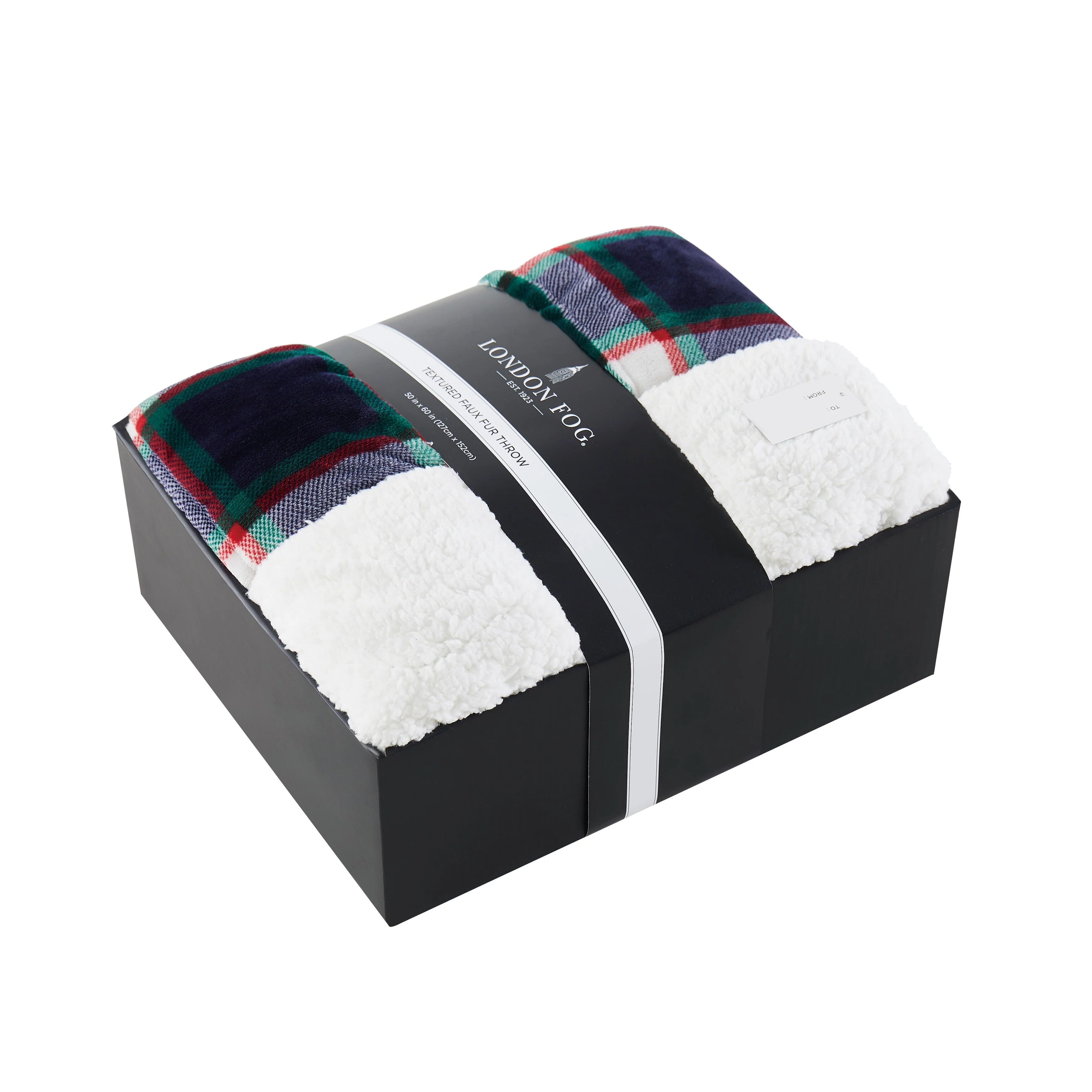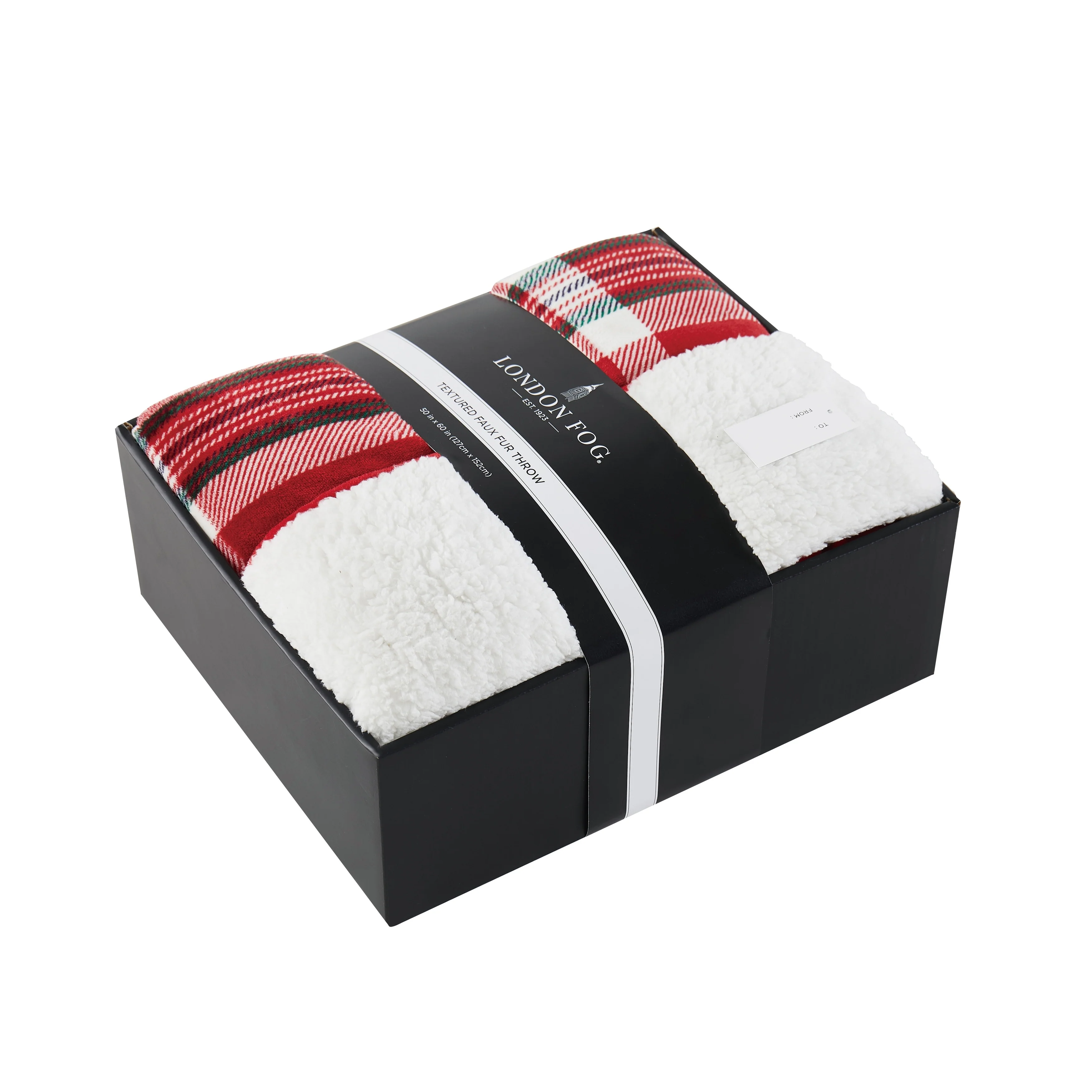 Give the gift of comfort with this stunning boxed faux fur throw by London Fog. The luxurious, plush fabric is accented by a timeless plaid design that will coordinate with any home. Whether you��re giving a gift or treating yourself, this throw is offered in three colors to help you find a perfect match. The plush faux fur fabric is complimented by a soft Sherpa reverse to lock in warmth and keep you cozy during cold winter nights.