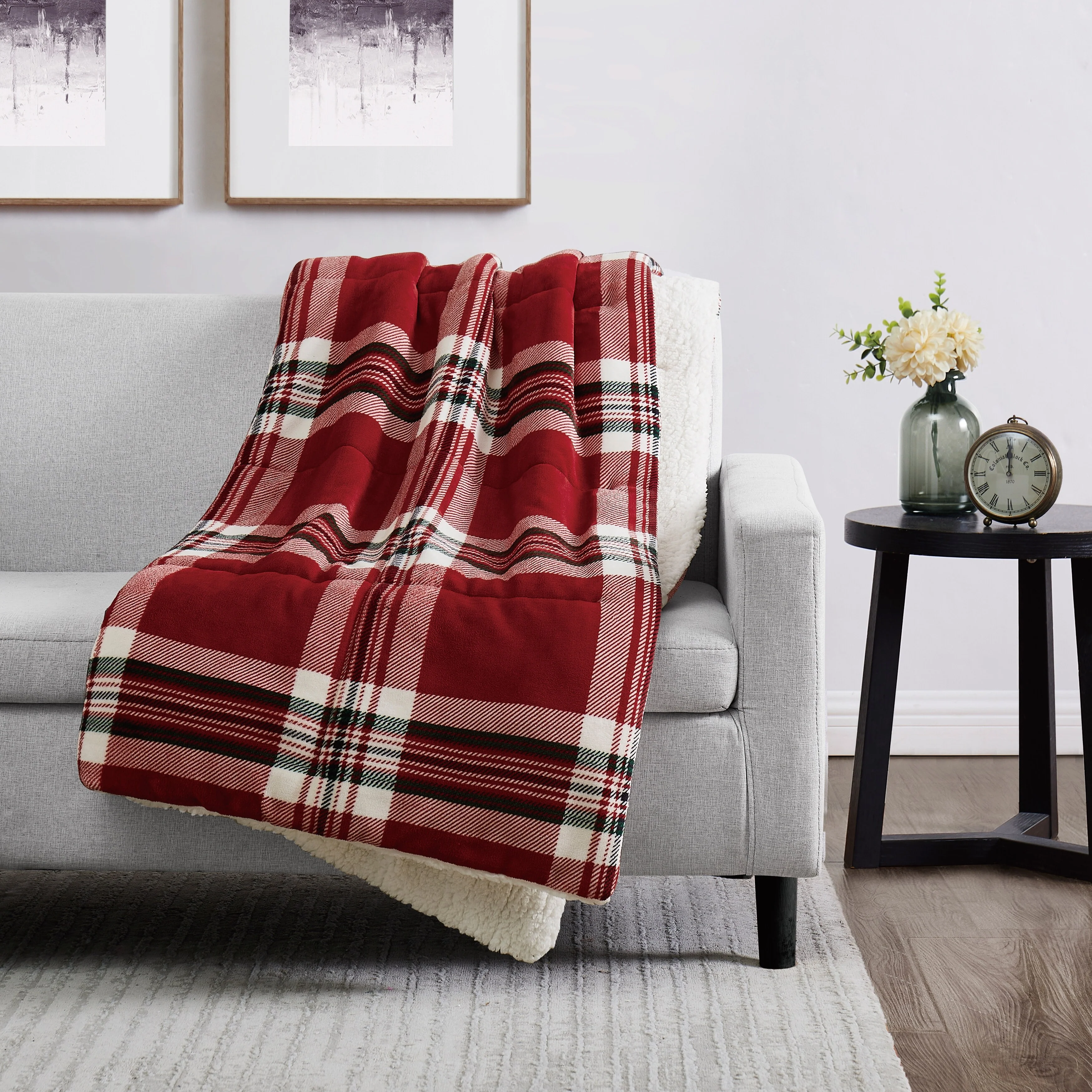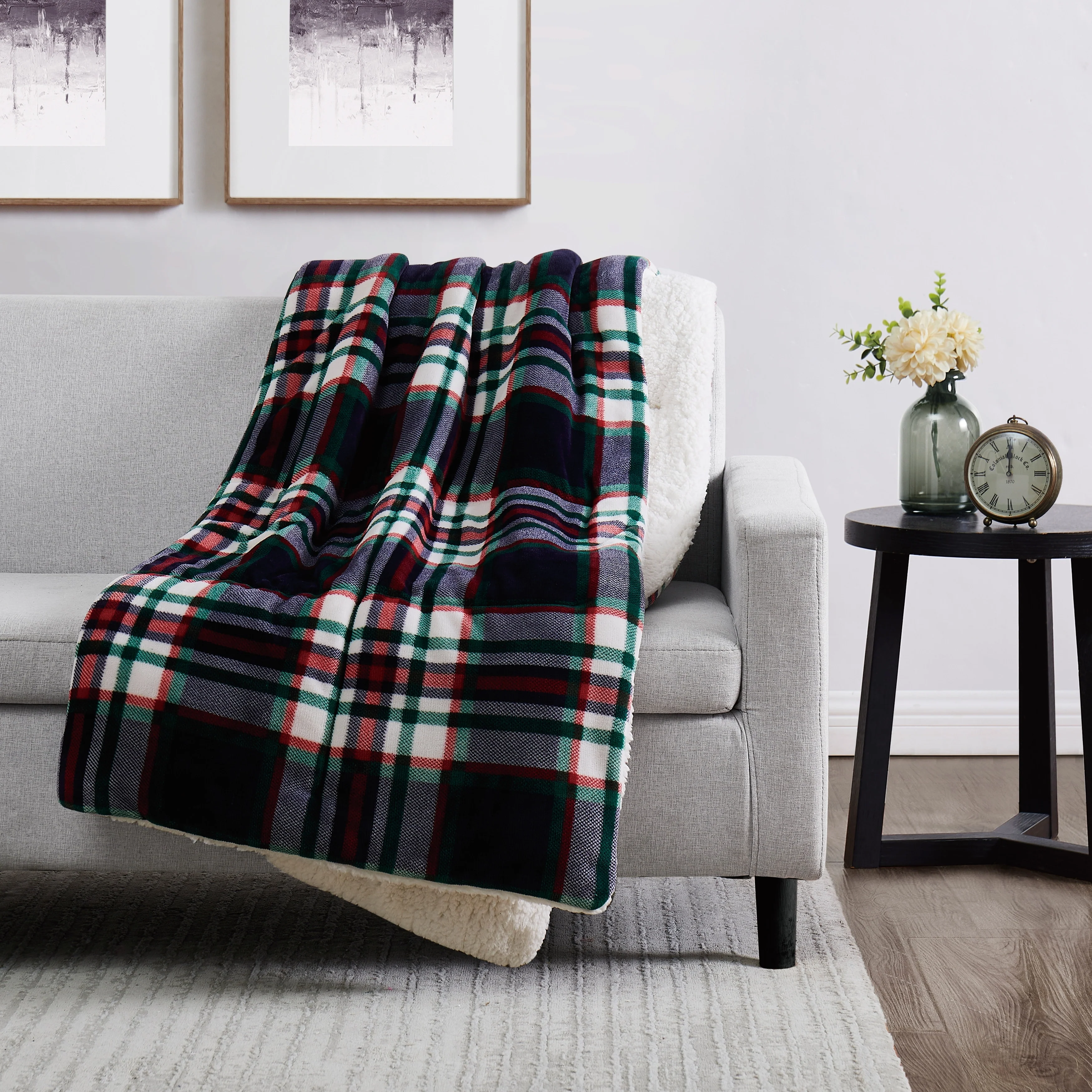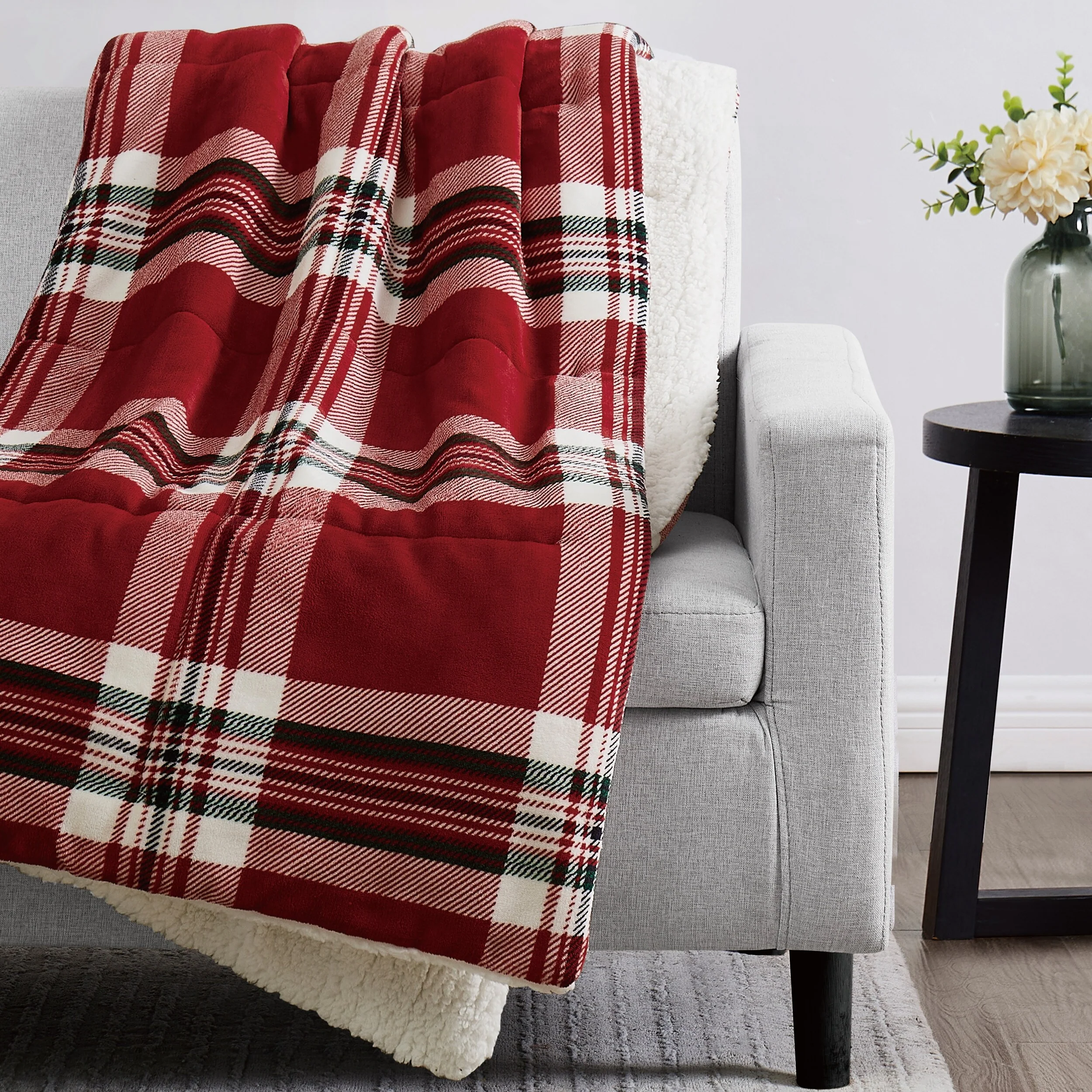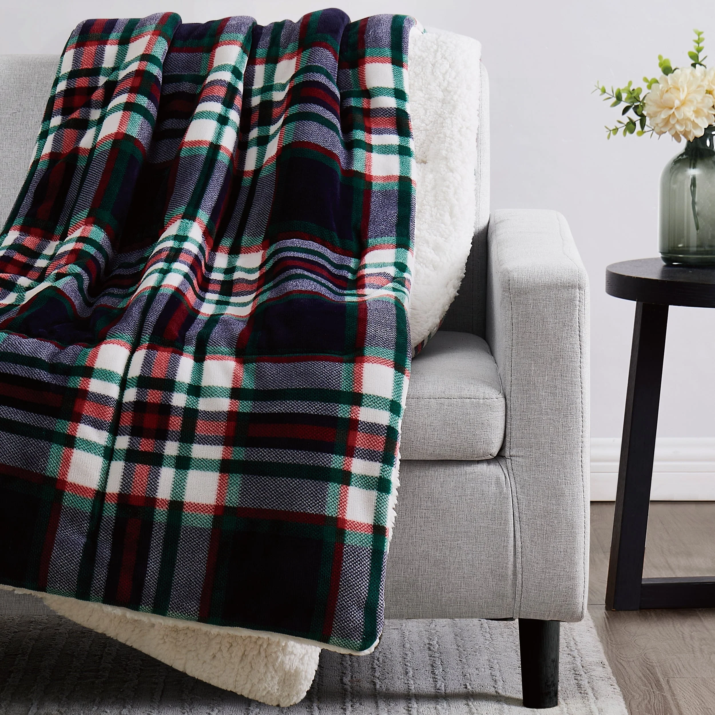 Give the gift of comfort with this stunning boxed faux fur throw by London Fog. The luxurious, plush fabric is accented by a timeless plaid design that will coordinate with any home. Whether you��re giving a gift or treating yourself, this throw is offered in three colors to help you find a perfect match. The plush faux fur fabric is complimented by a soft Sherpa reverse to lock in warmth and keep you cozy during cold winter nights.