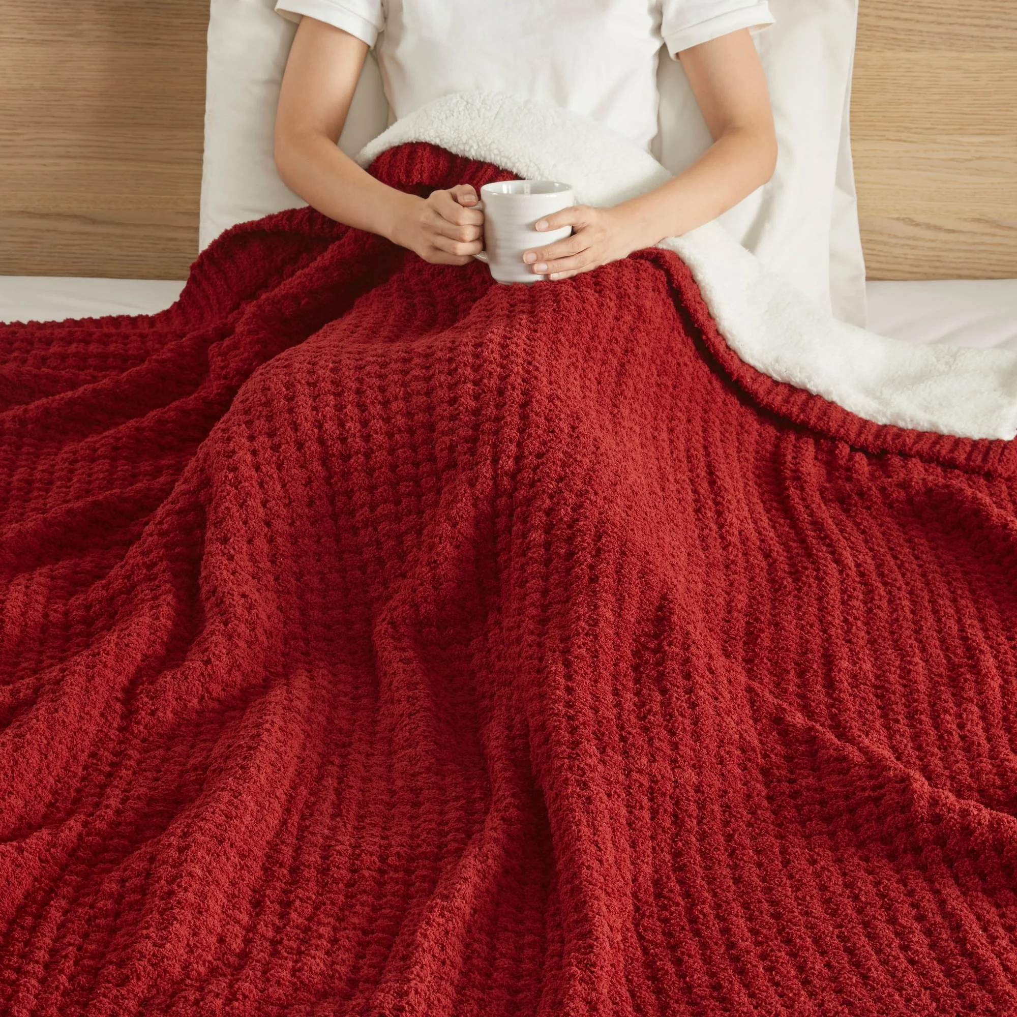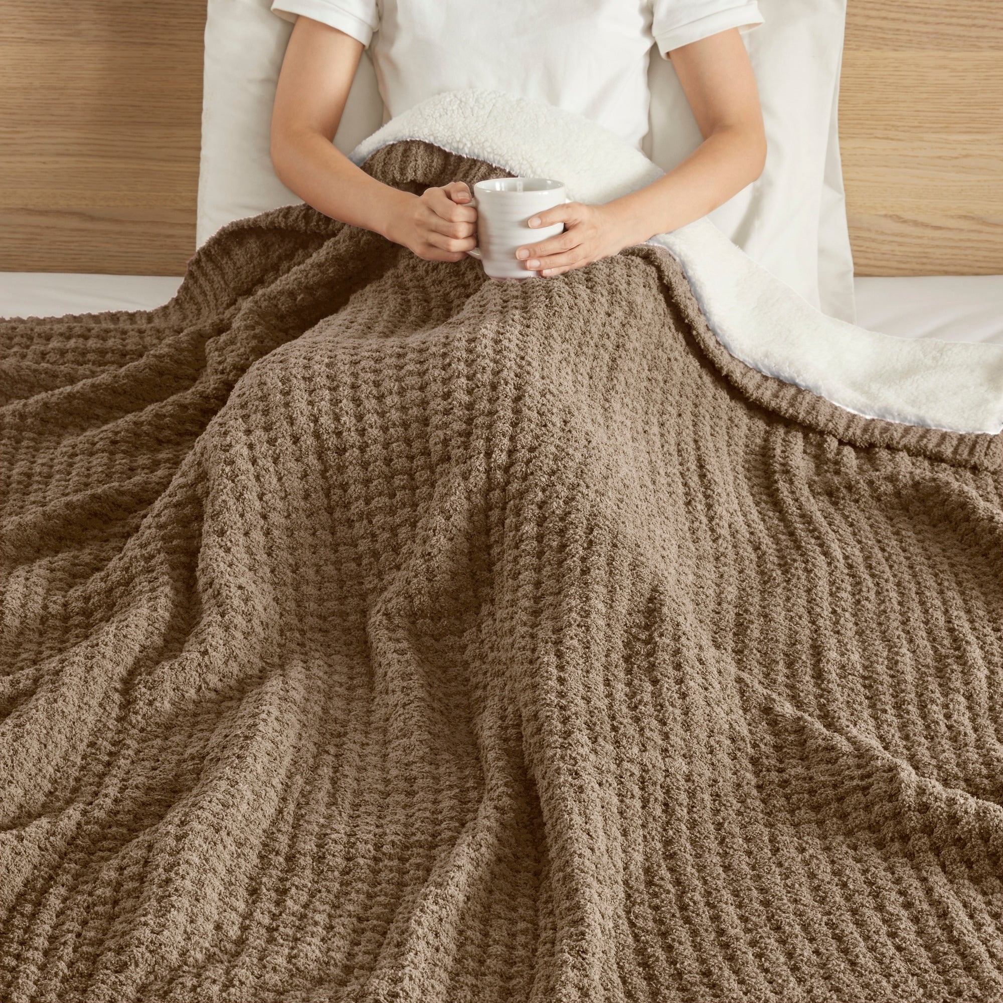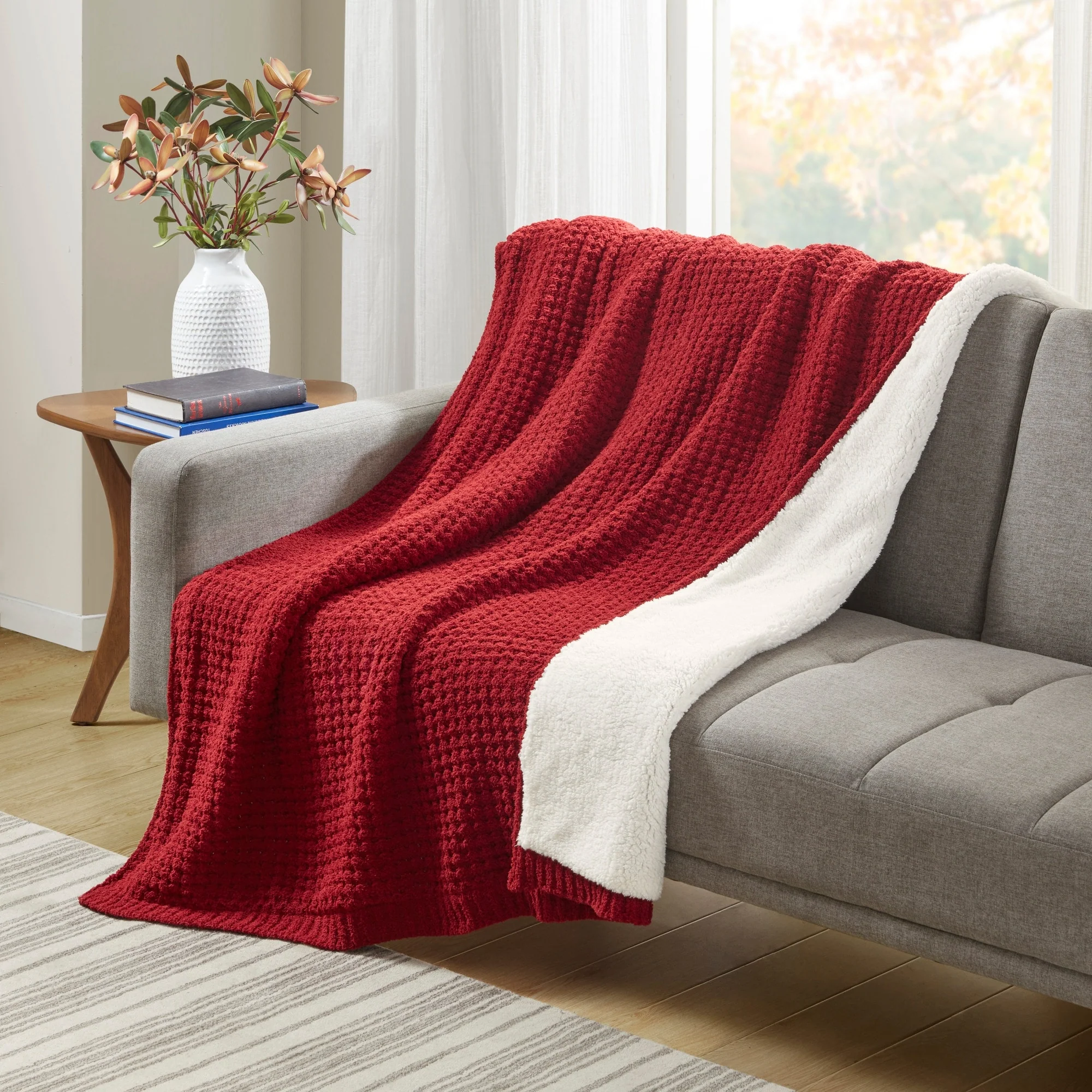 Boasting a luxurious waffle knit chenille face and a cozy sherpa reverse, this throw is the perfect addition to any room in need of extra comfort. The waffle weave texture adds a subtle visual charm, while five color options ensure a match for any decor.