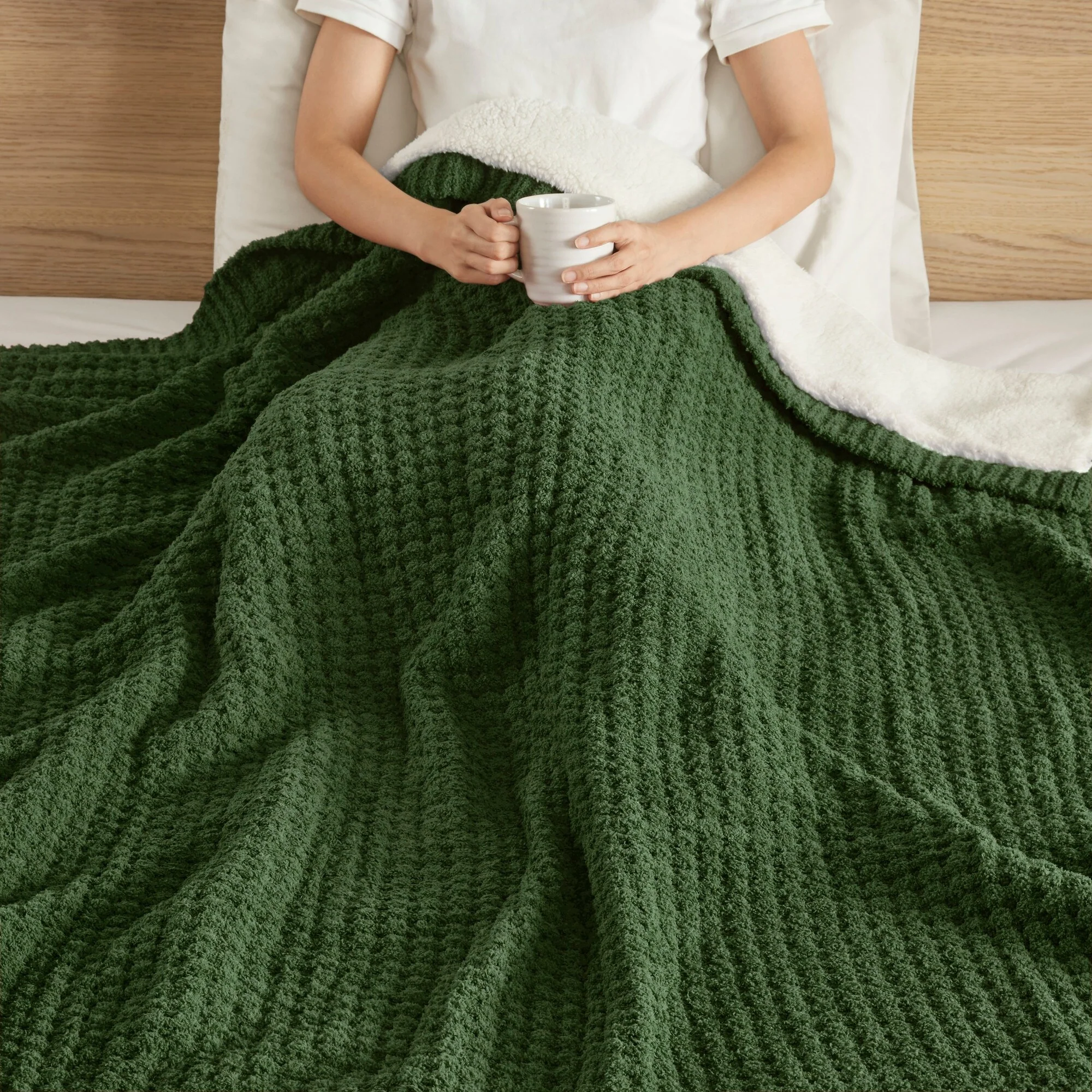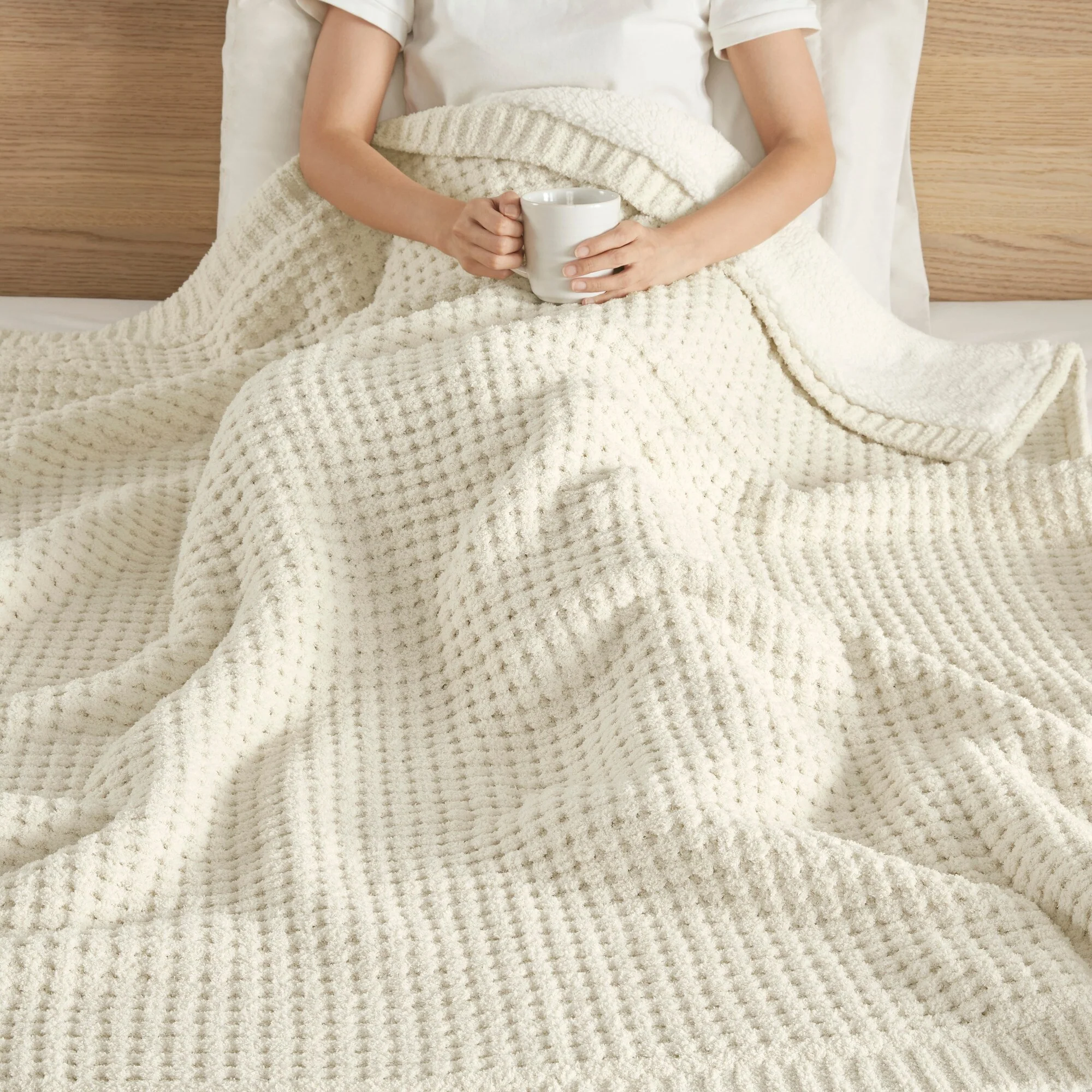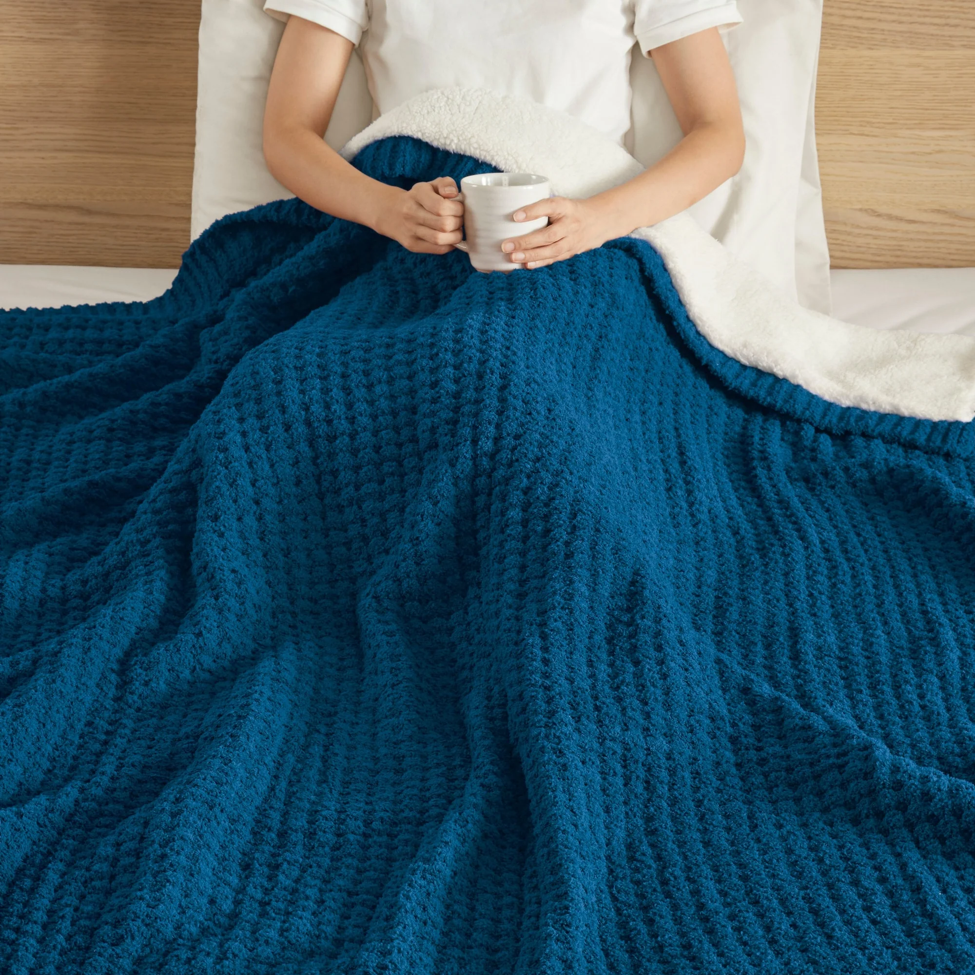 Boasting a luxurious waffle knit chenille face and a cozy sherpa reverse, this throw is the perfect addition to any room in need of extra comfort. The waffle weave texture adds a subtle visual charm, while five color options ensure a match for any decor.