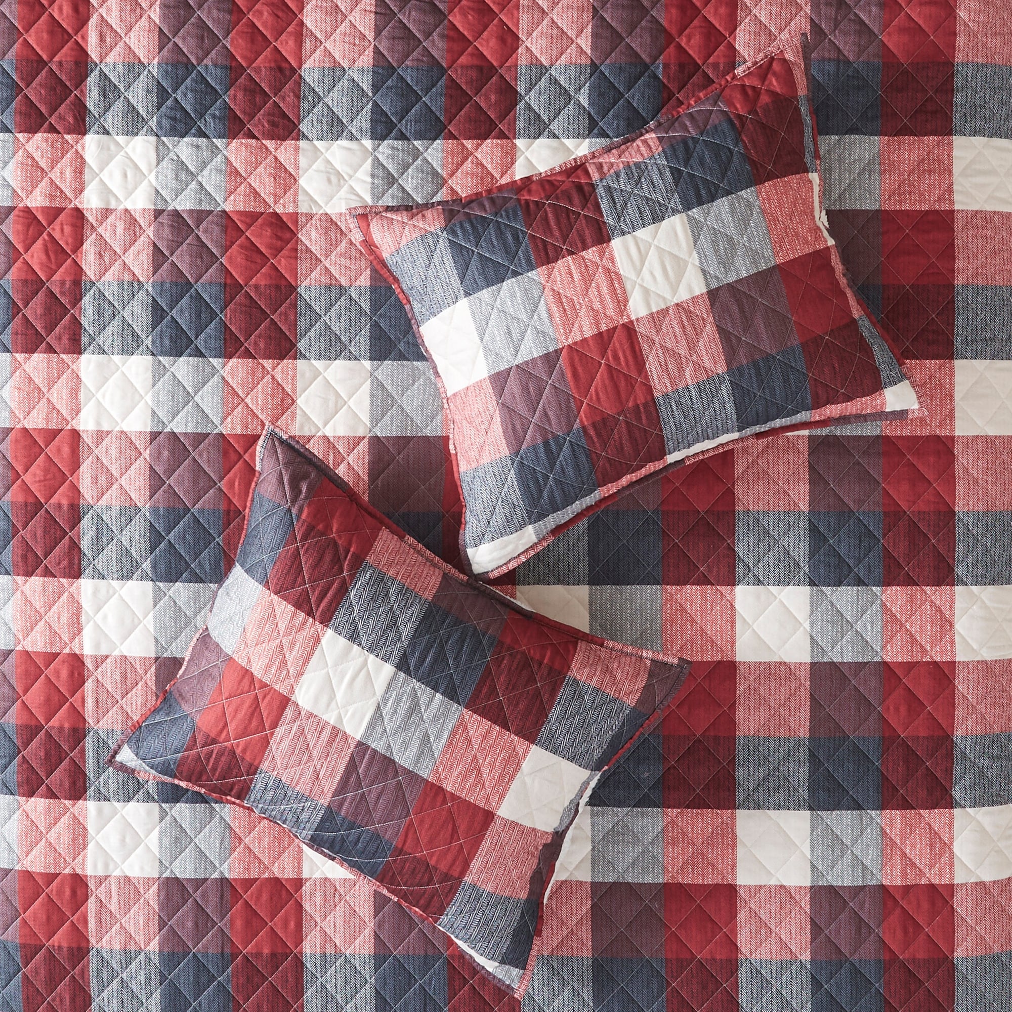 - Lodge Cabin style 4 piece coverlet set in all over buffalo plaid pattern