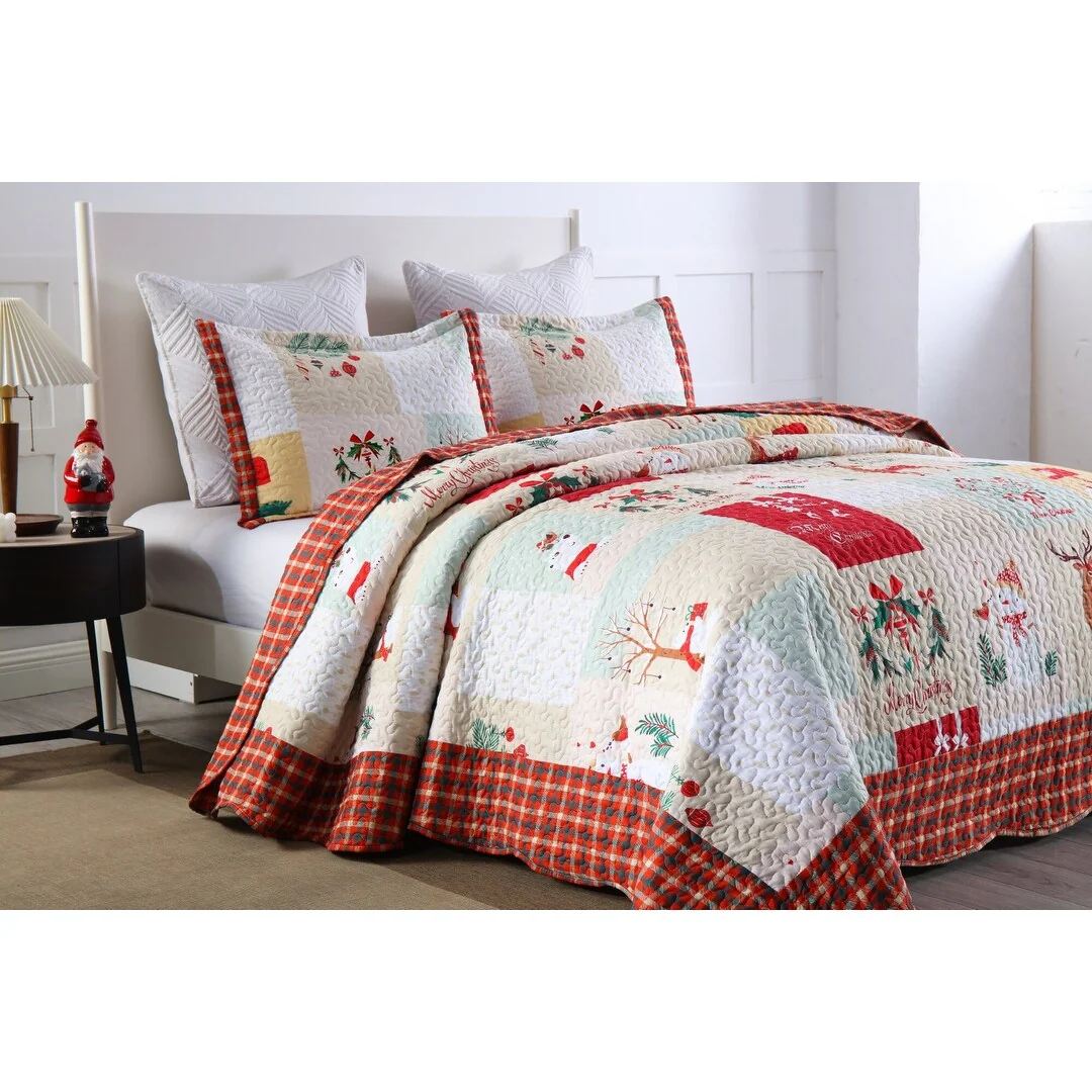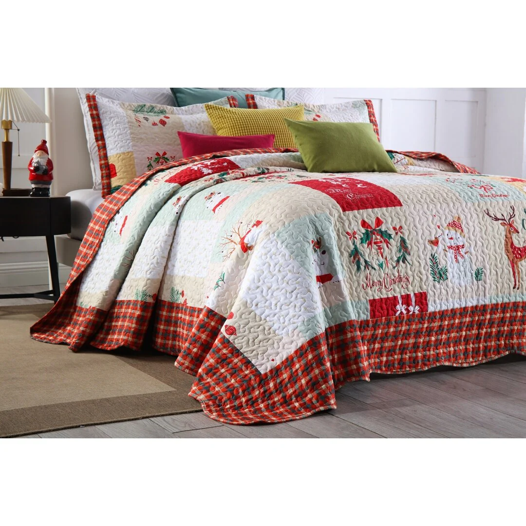 Elevate your bedding experience with MarCielo Christmas Quilt Set Bedspread Set B023. Crafted with super-fine fibers, this quilt is designed for extra warmth and comfort without the added weight. The optimal weight makes it suitable for year-round use, offering versatility for layering during winter or standalone use in summer. Upgrade your bedroom decor with the MarCielo Christmas Quilt Collection, featuring a delightful array of festive patterns, including snowmen, Christmas trees, and owls, adding a touch of holiday charm to your space.�