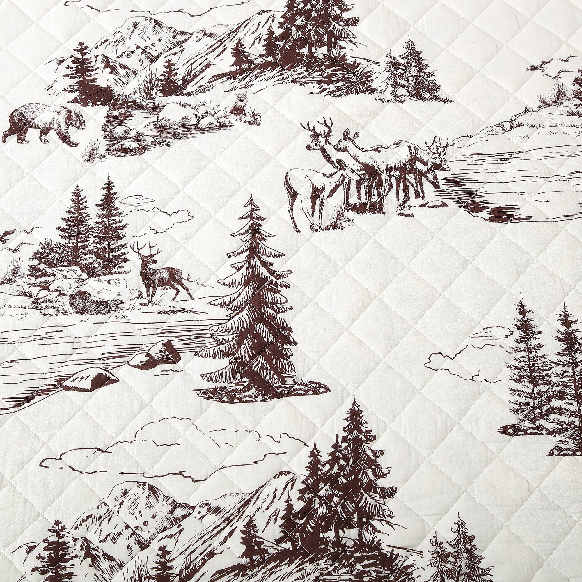 Discover the rustic charm of the White Pine Reversible Quilt Set, an homage to the grandeur of the American landscape. This printed cotton quilt captures the spirit of traditional French toile, illustrating the untamed beauty and diverse wildlife of our nation's majestic mountains. On the reverse side, a structured plaid pattern adds a touch of classic Americana. Designed for versatility, the subtle neutral base complements any d茅cor. Pair White Pine with our Stonewashed Cotton Velvet Quilt for lighter layering or layer it beneath the Chenille Herringbone Duvet for an unexpected, yet harmonious accent.