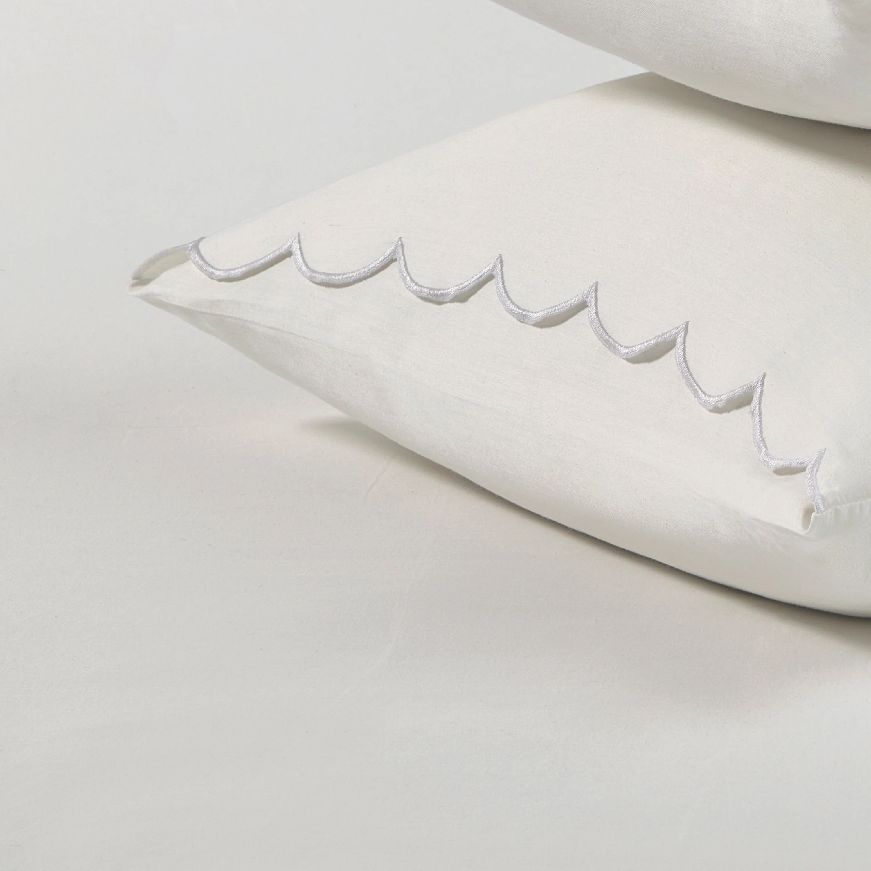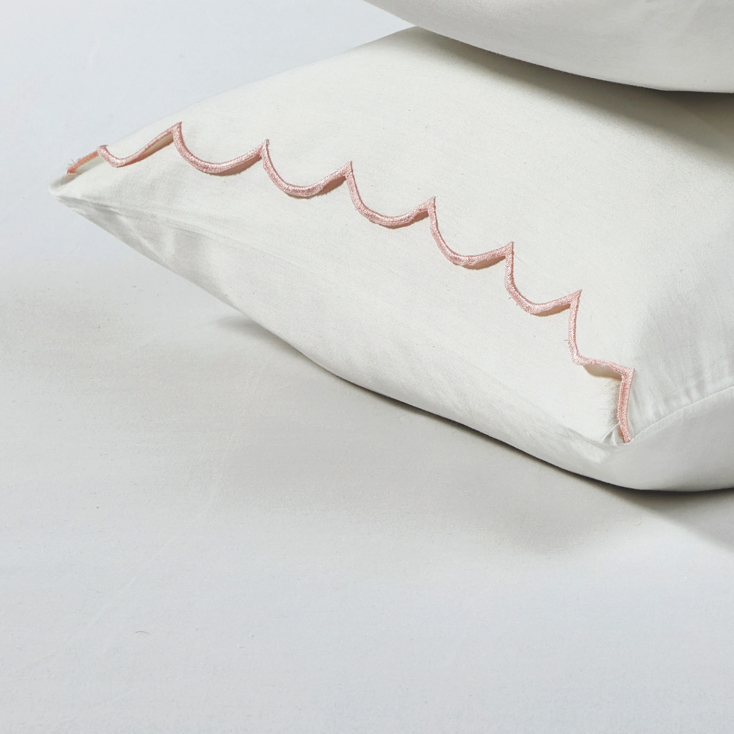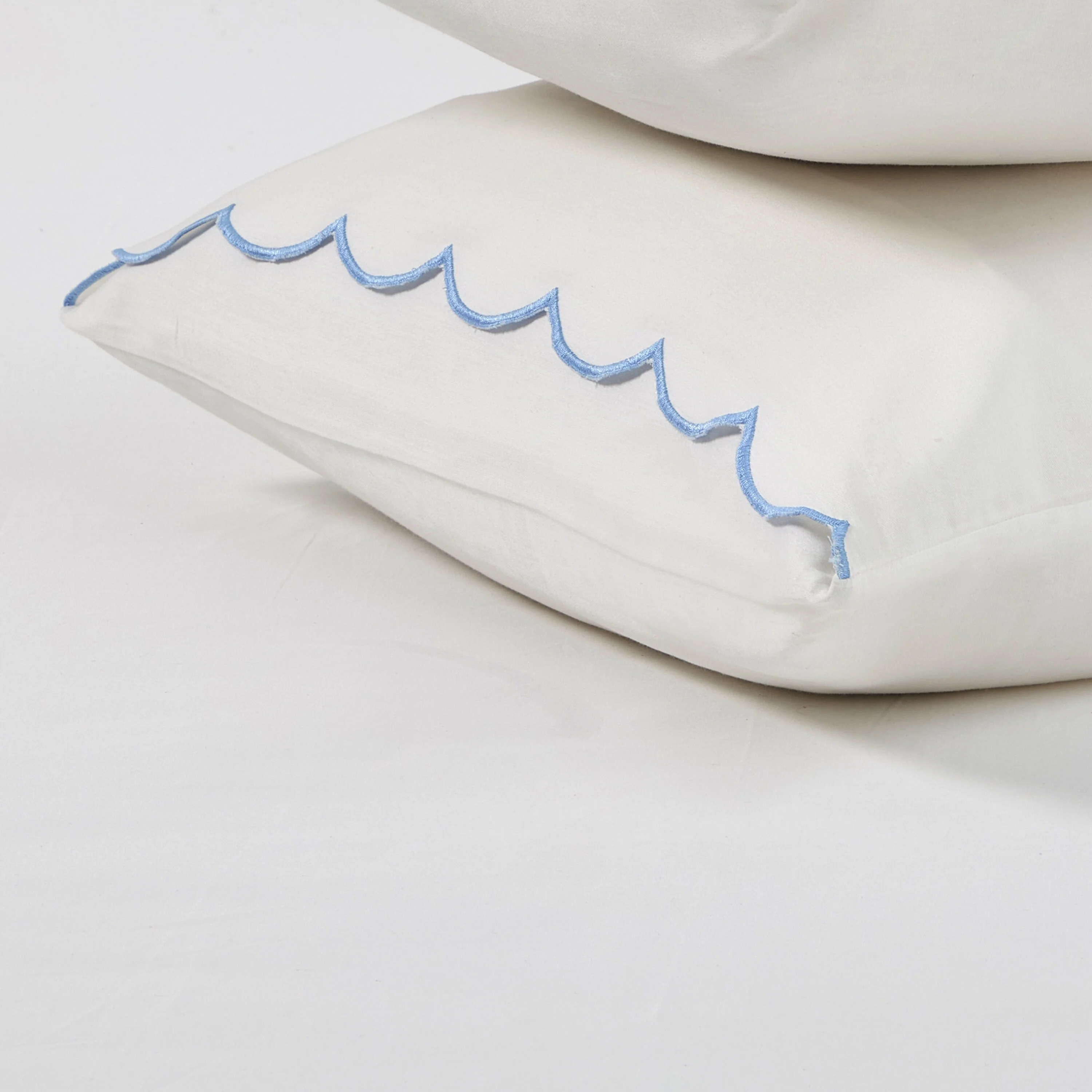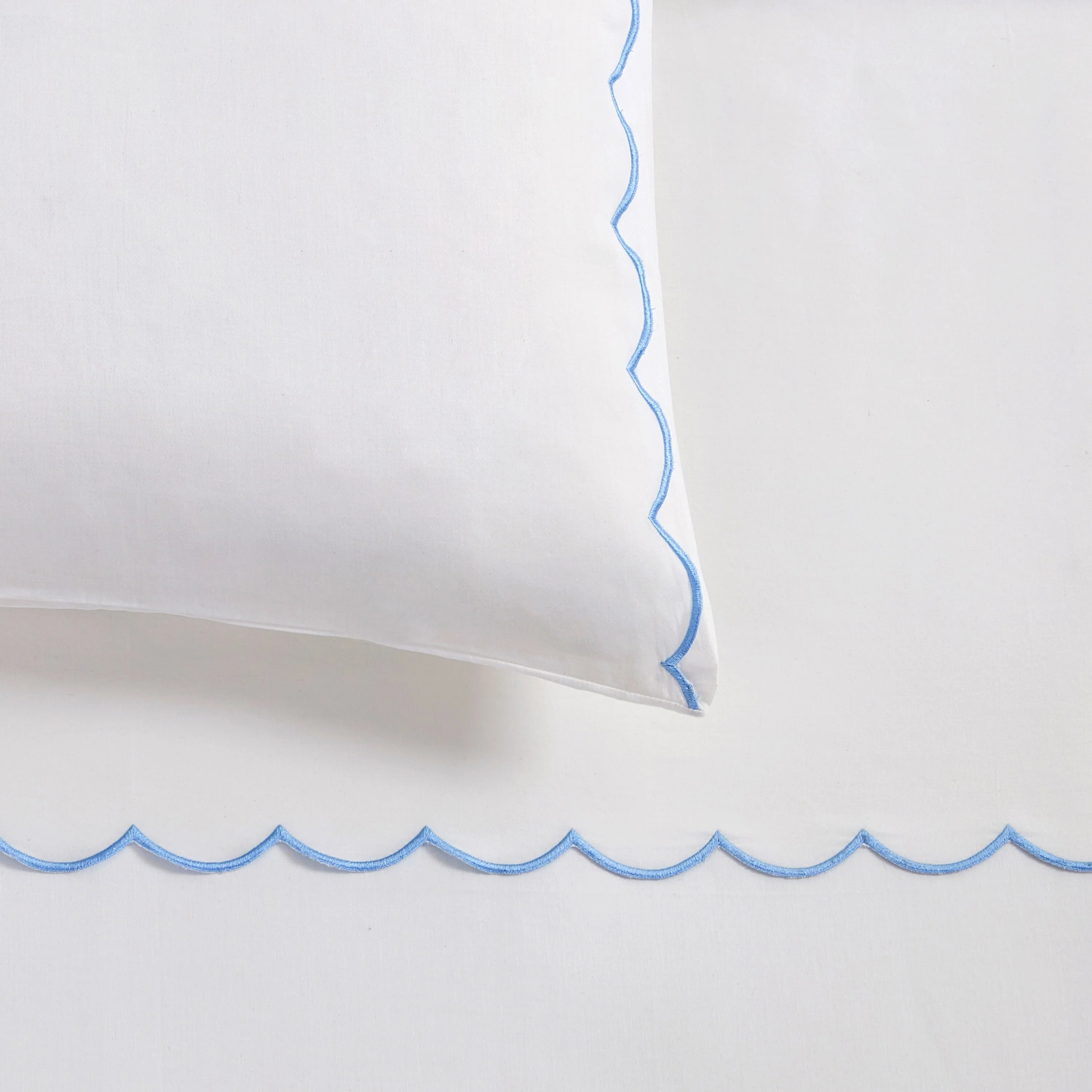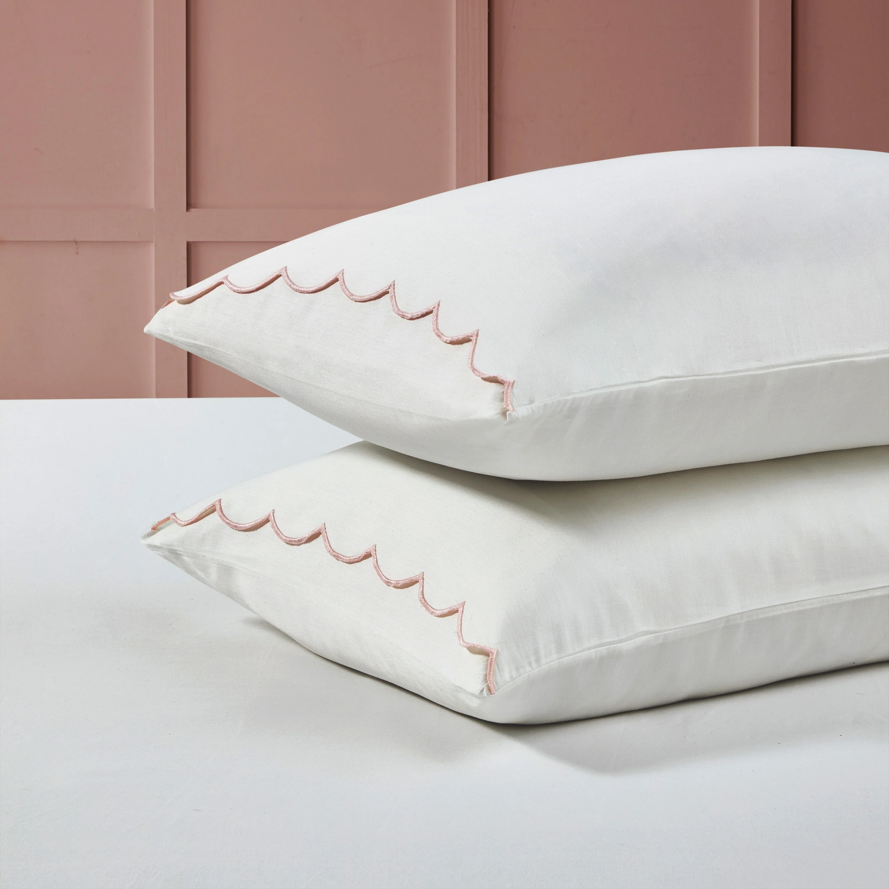 Add a touch of charm to your bedding with the Peri Home Scallop Pillowcase Pair. This crisp white sheet set is beautifully accented with an embroidered scallop hem in pink, white, or blue for a delicate and timeless detail. Made from cozy, soft cotton, these sheets promise restful sleep.