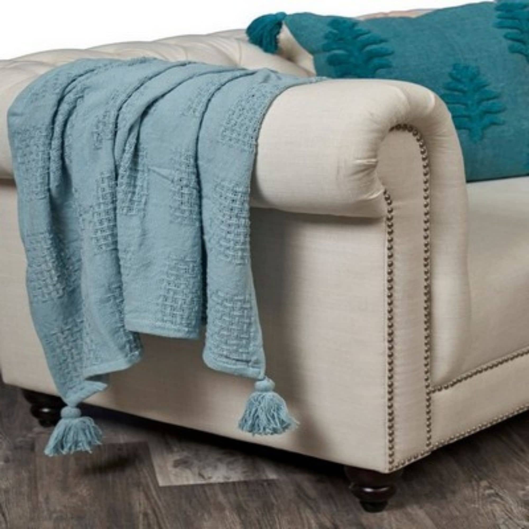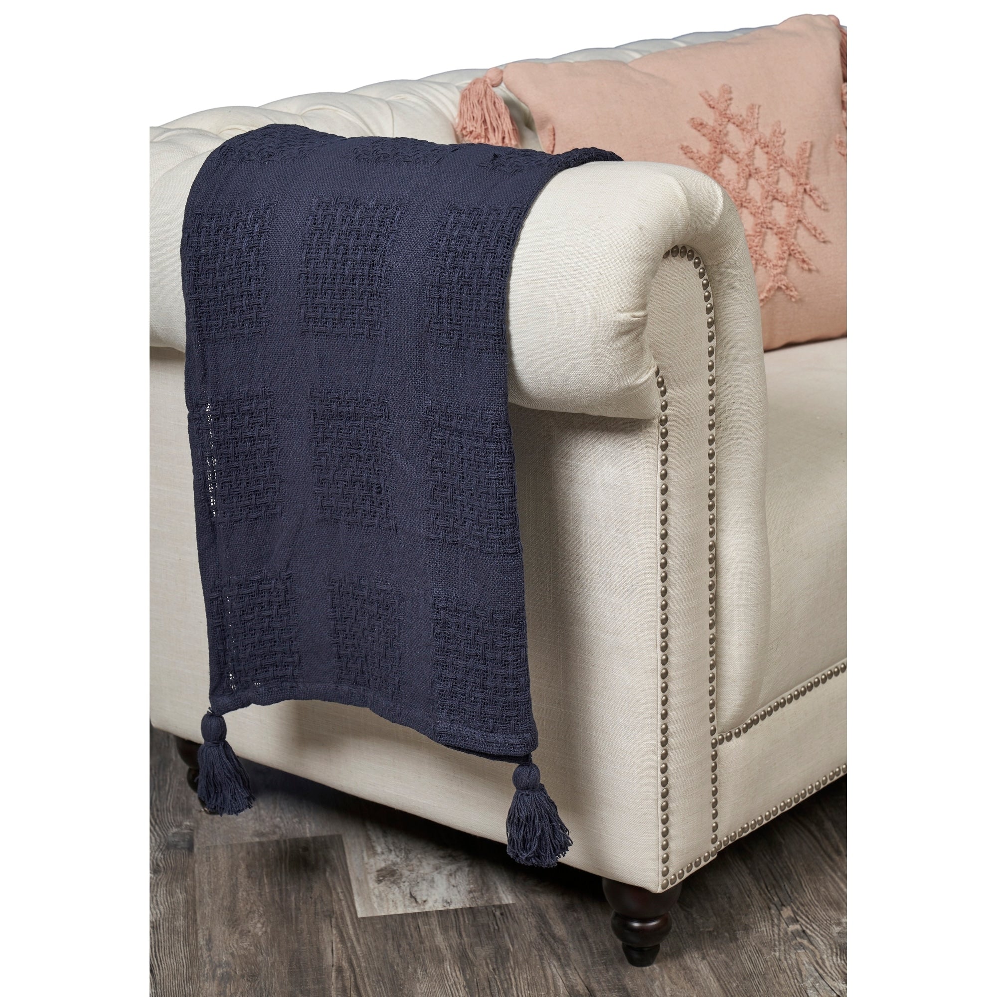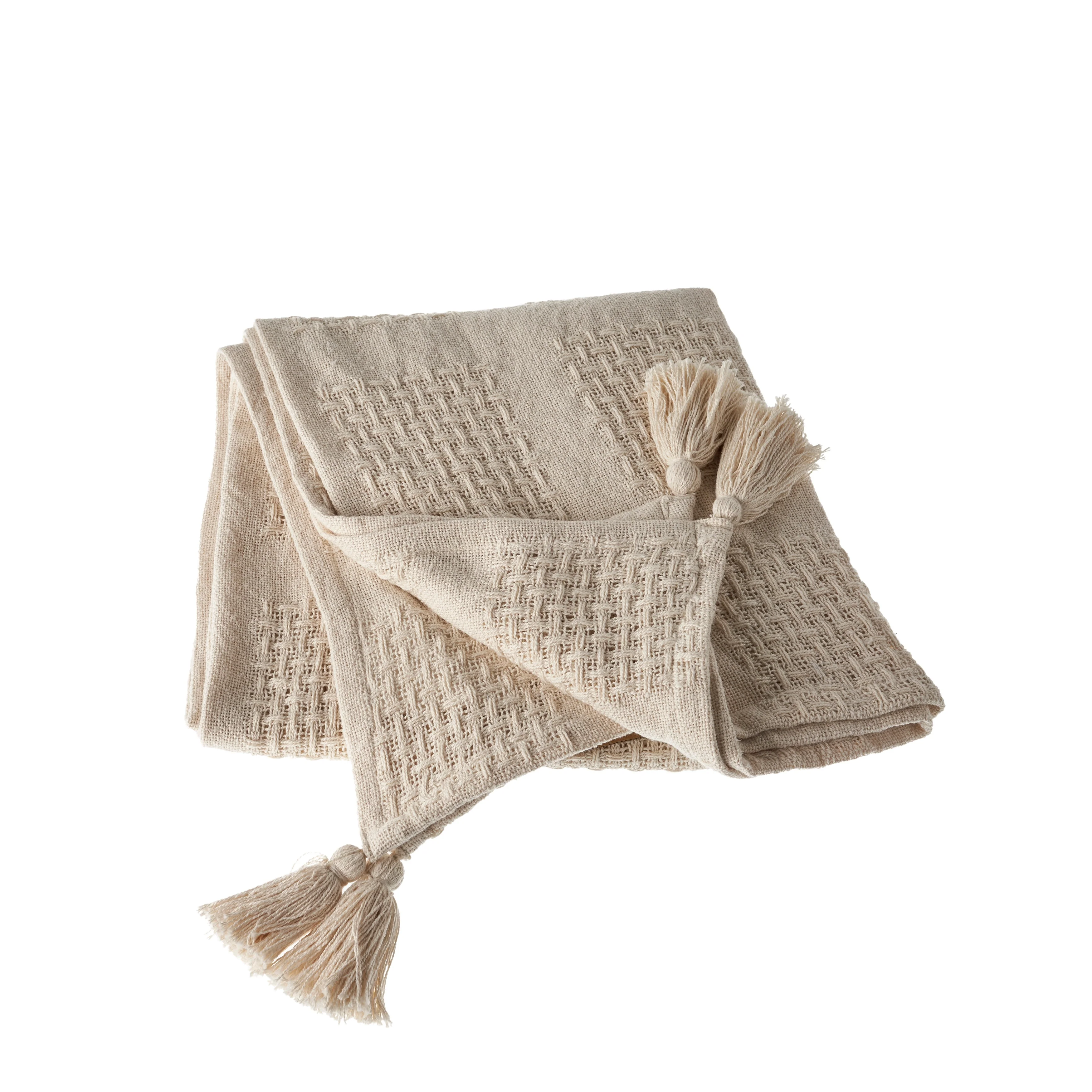 Come get cozy with your new favorite throw blanket. Hand-woven of premium natural cotton in a versatile color pallete, these lightweight throws add the perfect touch of texture and coziness to any space. Features a woven waffle design complimented by corner tassels. No matter the season there is always time to relax and get comfortable with your new addition to the home.