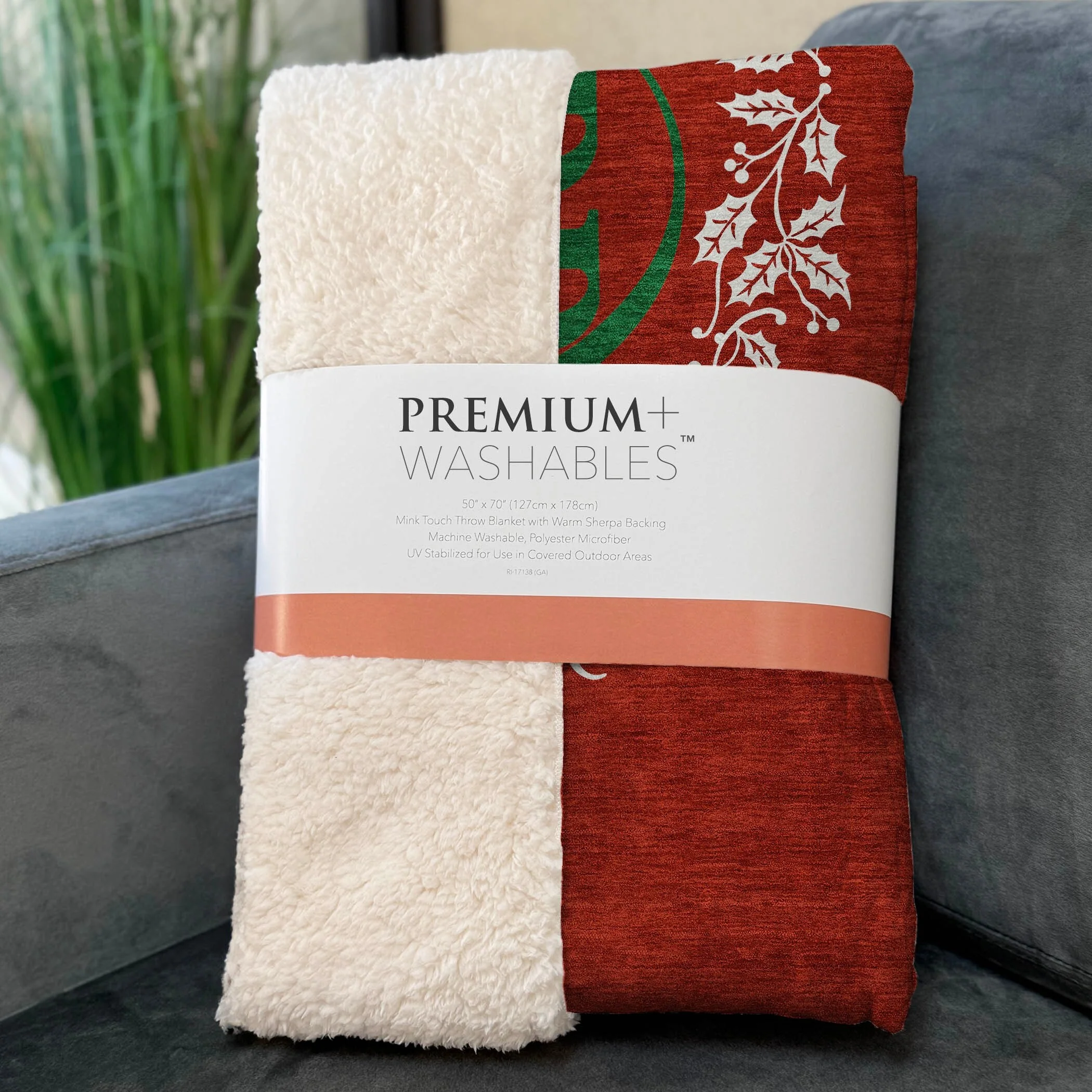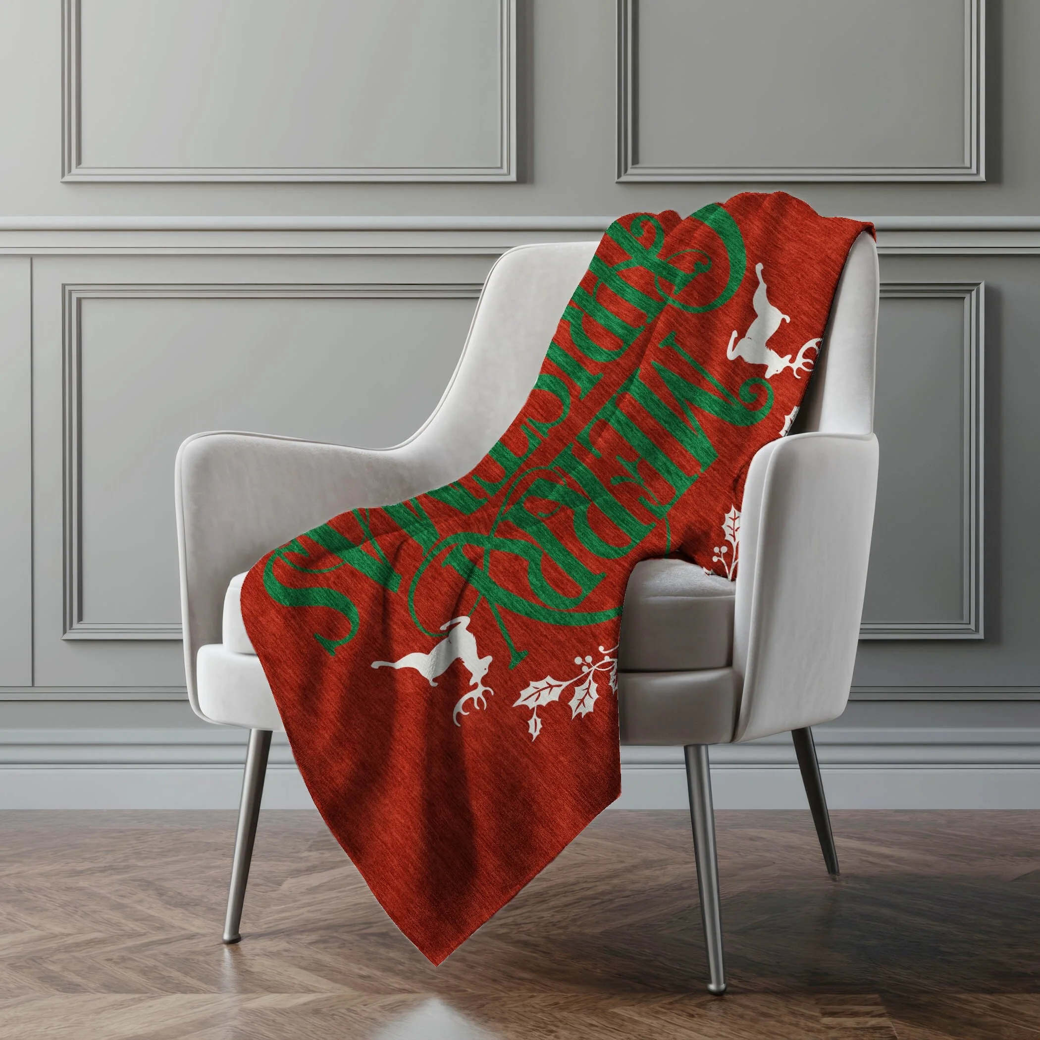 Embrace holiday charm in your living space with a delightful wreath pattern adorned with a festive 'Merry Christmas' message, perfect for getting into the season's spirit. With an oversized dimension of 50" x 70", it offers ample warmth through its luxuriously soft-touch front and warm sherpa backing. Crafted from fade-resistant polyester microfiber, this holiday essential is ideal for indoor enjoyment or in covered outdoor areas, and its machine-washable nature ensures stress-free maintenance during festive gatherings.