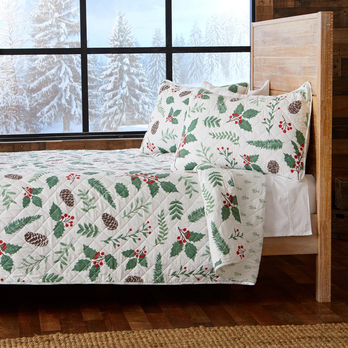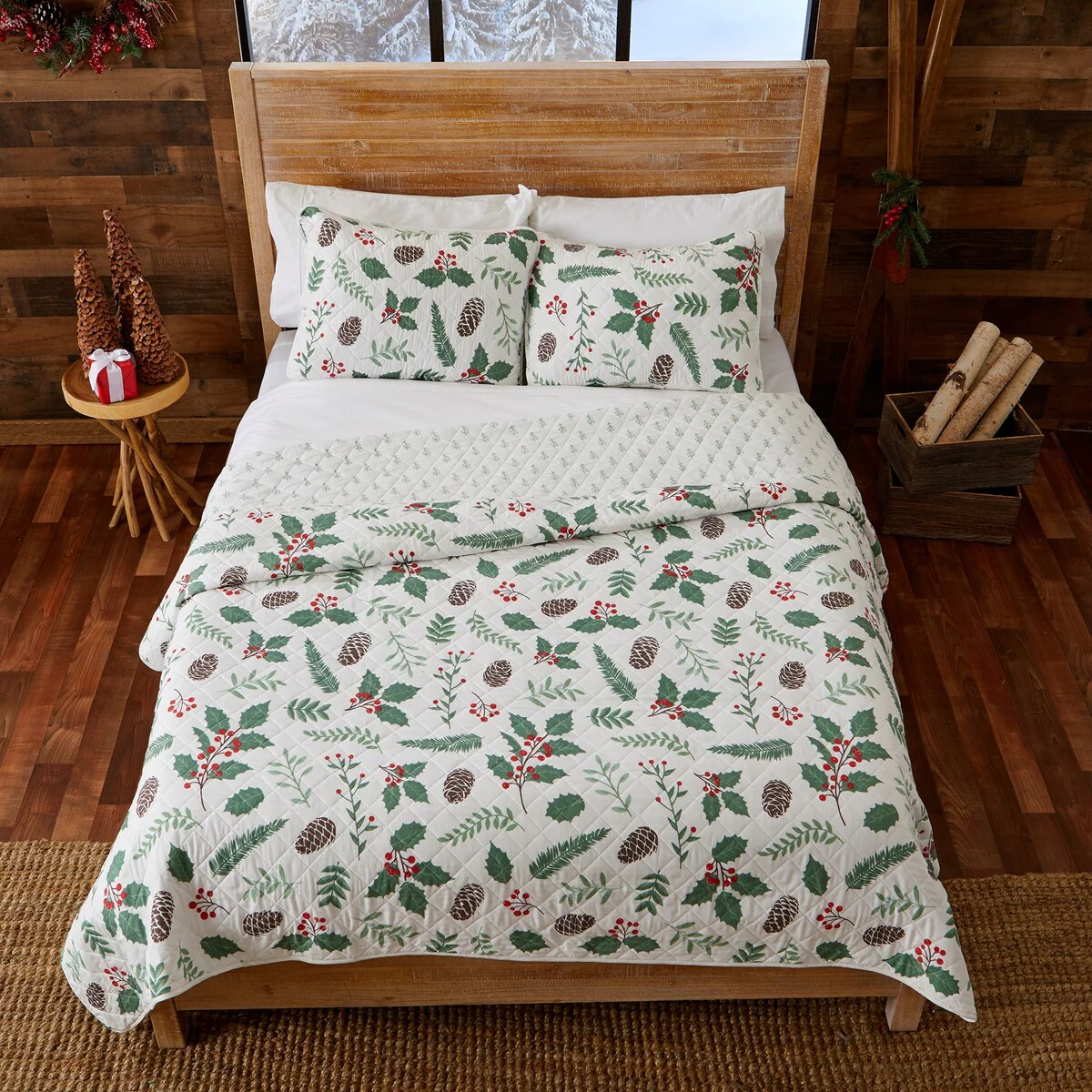 Premium Rustic Holiday Microfiber Quilt Set With Shams