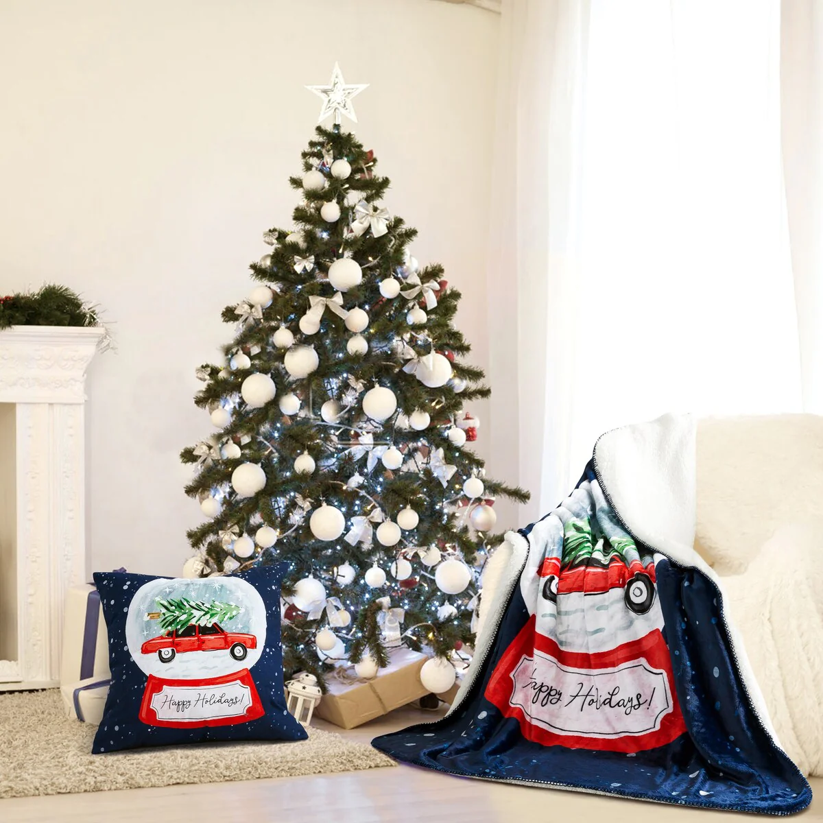 This snowglobe decorative throw will surely welcome the holiday spirit into your home. With a beautiful watercolor design by talented artist Sara Berrenson, this cozy throw will surely make your holidays more enjoyable. ��Includes one 50x60 in. throw��Beautiful holiday watercolor print designed by artist Sara Berrenson��Super soft fleece fabric on one side and cozy sherpa lining on the other side���Perfect blanket for cuddling up on the couch��Machine washable��Coordinating throw pillow sold separately