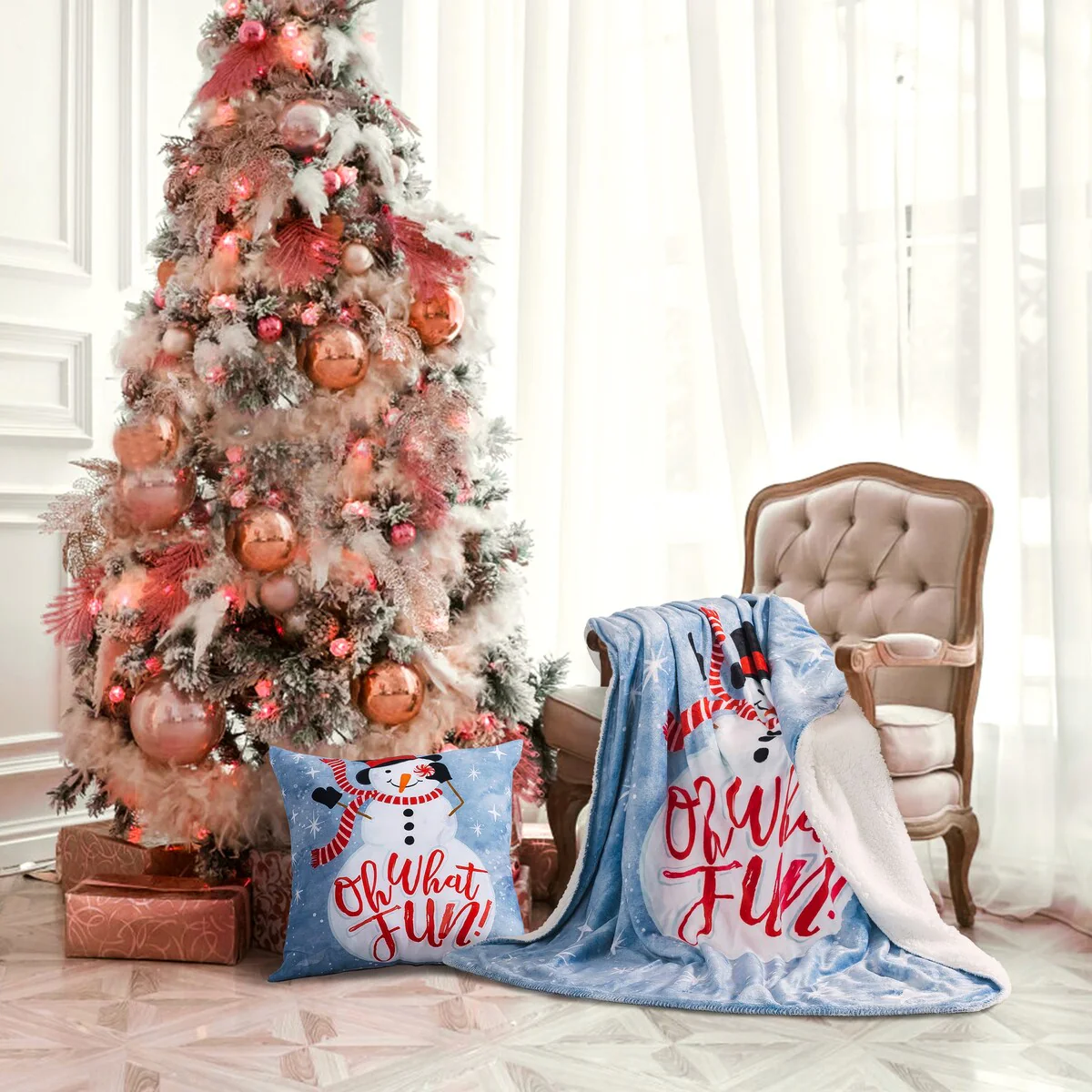 This snowman decorative throw will surely welcome the holiday spirit into your home. With a beautiful watercolor design by talented artist Sara Berrenson, this cozy throw will surely make your holidays more enjoyable. ��Includes one 50x60 in. throw��Beautiful holiday watercolor print designed by artist Sara Berrenson��Super soft fleece fabric on one side and cozy sherpa lining on the other side���Perfect blanket for cuddling up on the couch��Machine washable��Coordinating throw pillow sold separately
