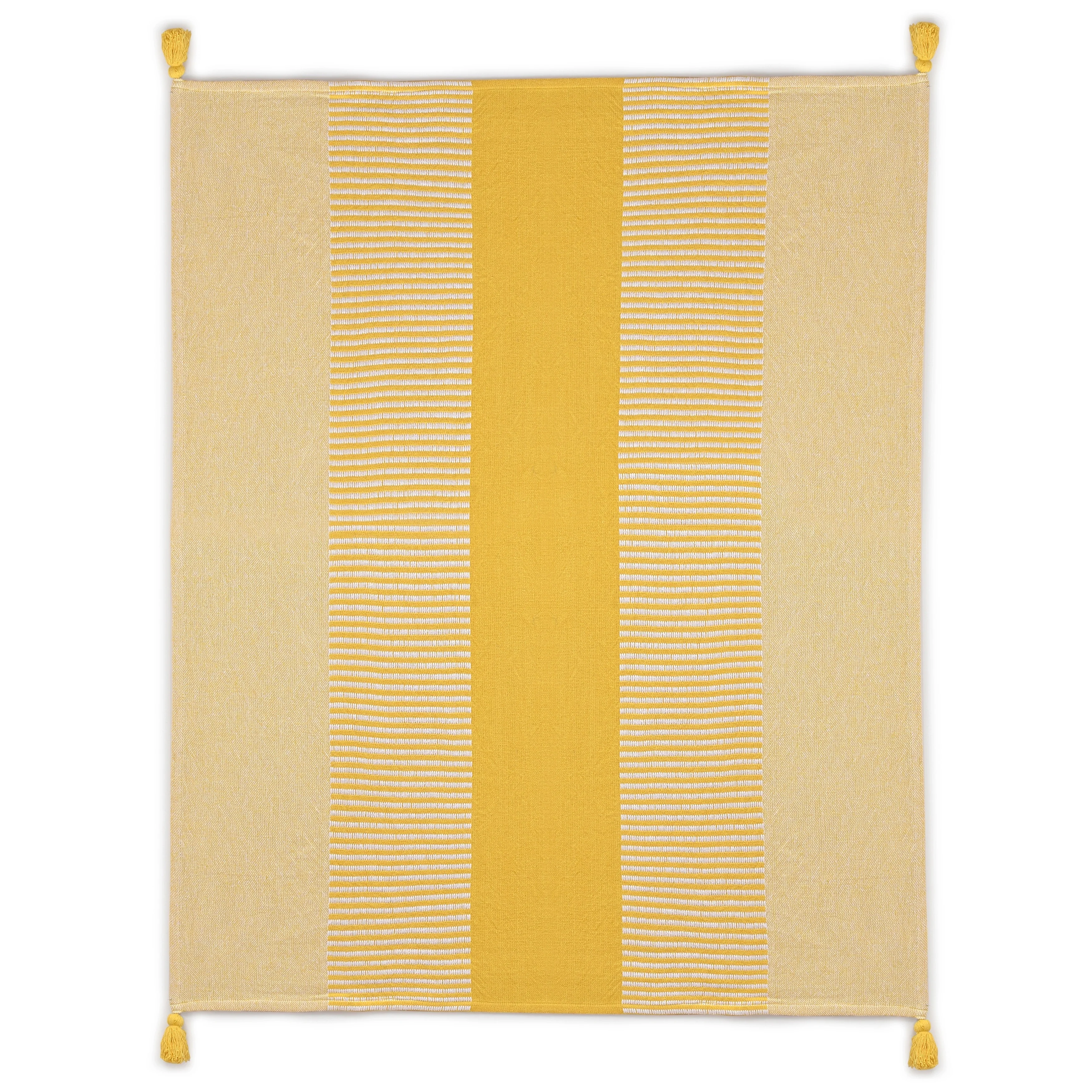 Come get cozy with this decadent cotton throw blanket. Featuring classic stripes in a heathered wash for a comfy, broken-in feel; with self-binding edges for durability, and tassles for a little extra flair. This blanket is crafted in India from all-natural, organic cotton, which provides ultimate breathability and comfort that you will enjoy year-round.