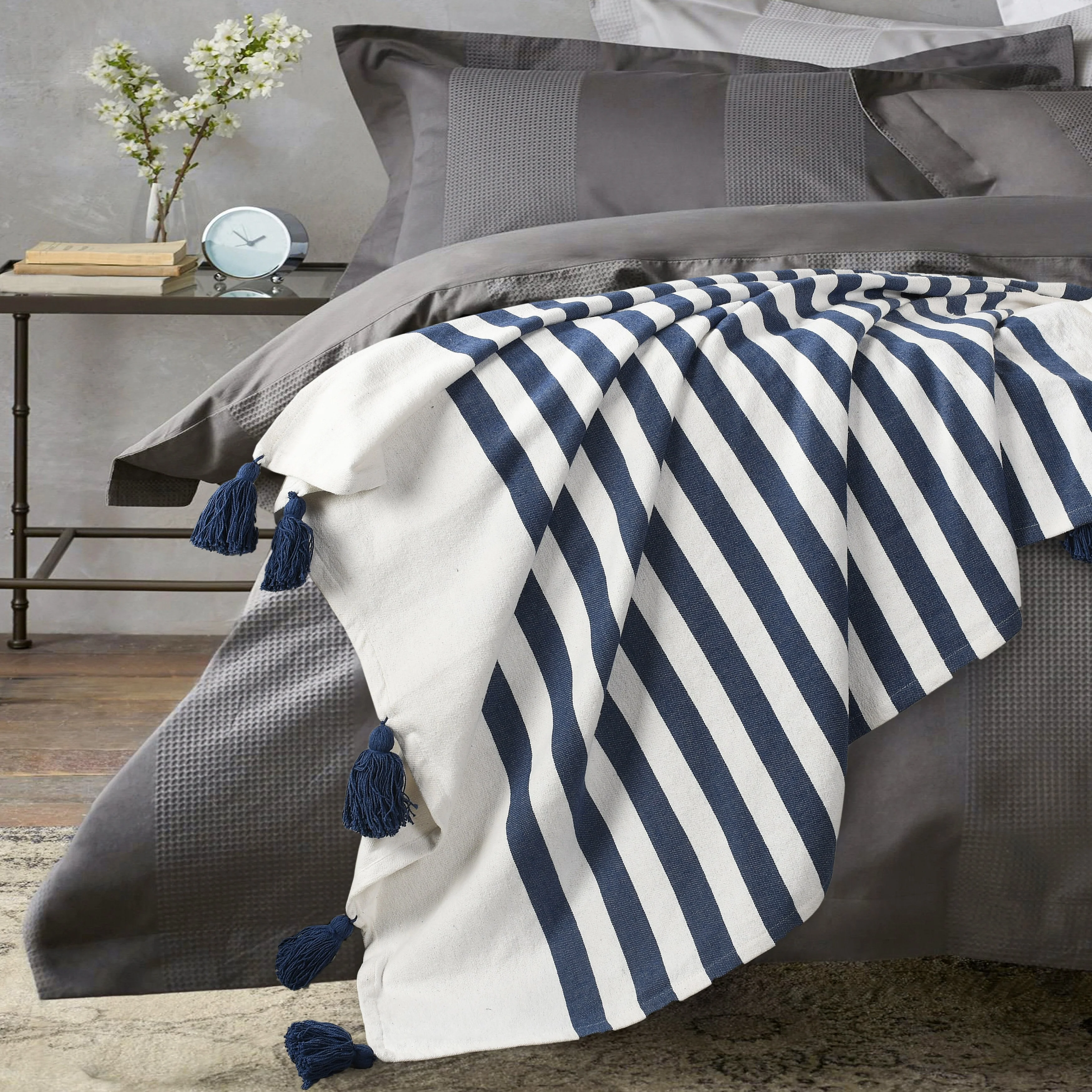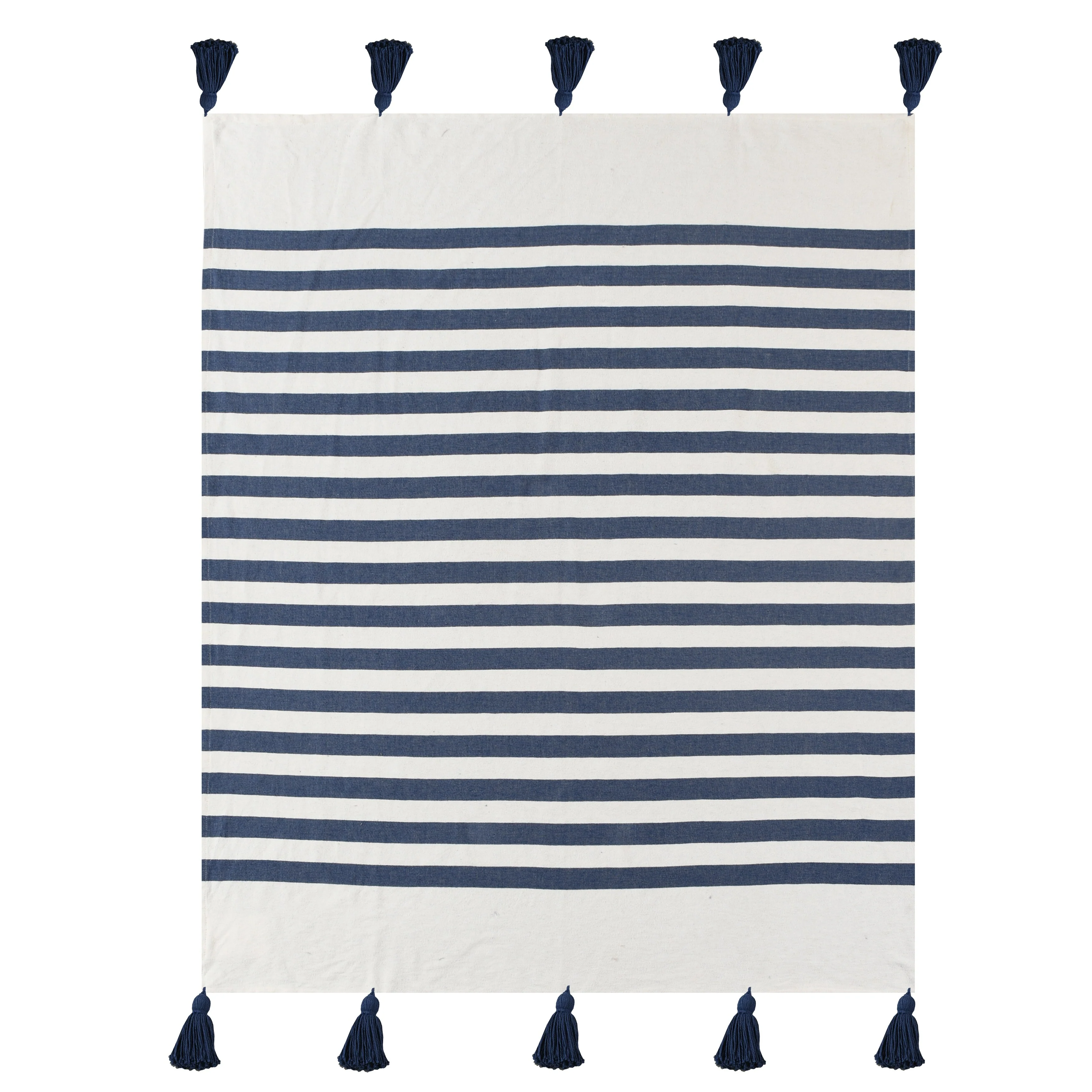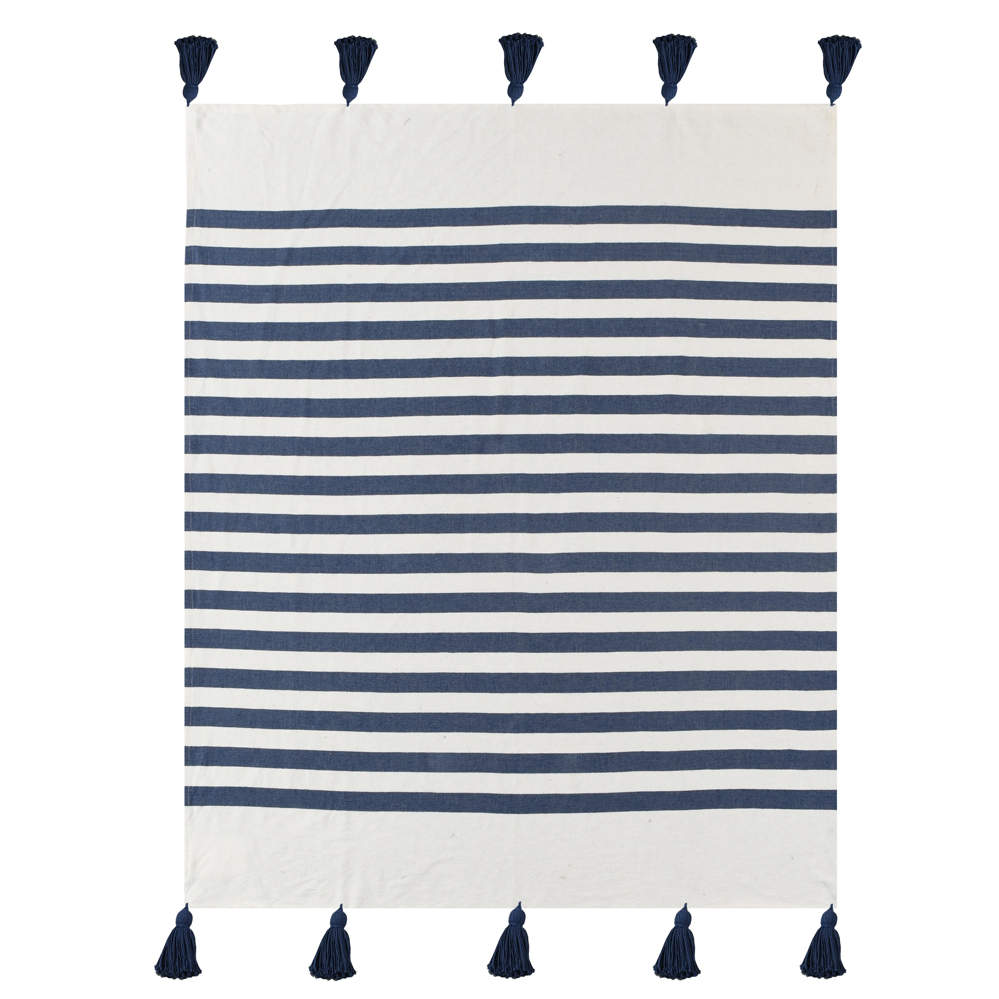 Come get cozy with this decadent cotton throw blanket. Featuring a classic, bold stripe in a vintage wash for a comfy, broken-in feel; with self-binding edges for durability, and tassles for a little extra flair. This blanket is crafted in India from all-natural cotton, which provides ultimate breathability and comfort that you will enjoy year-round.
