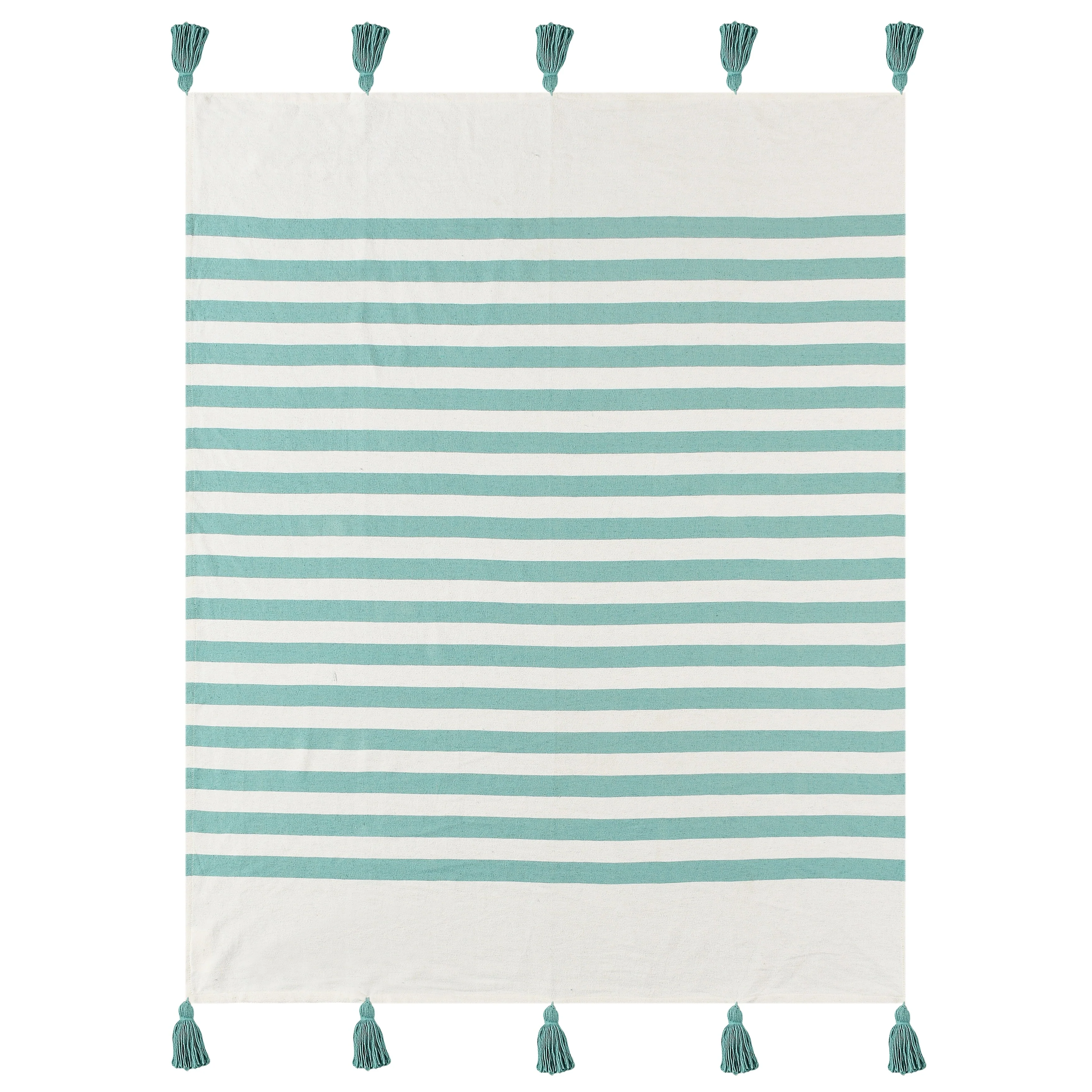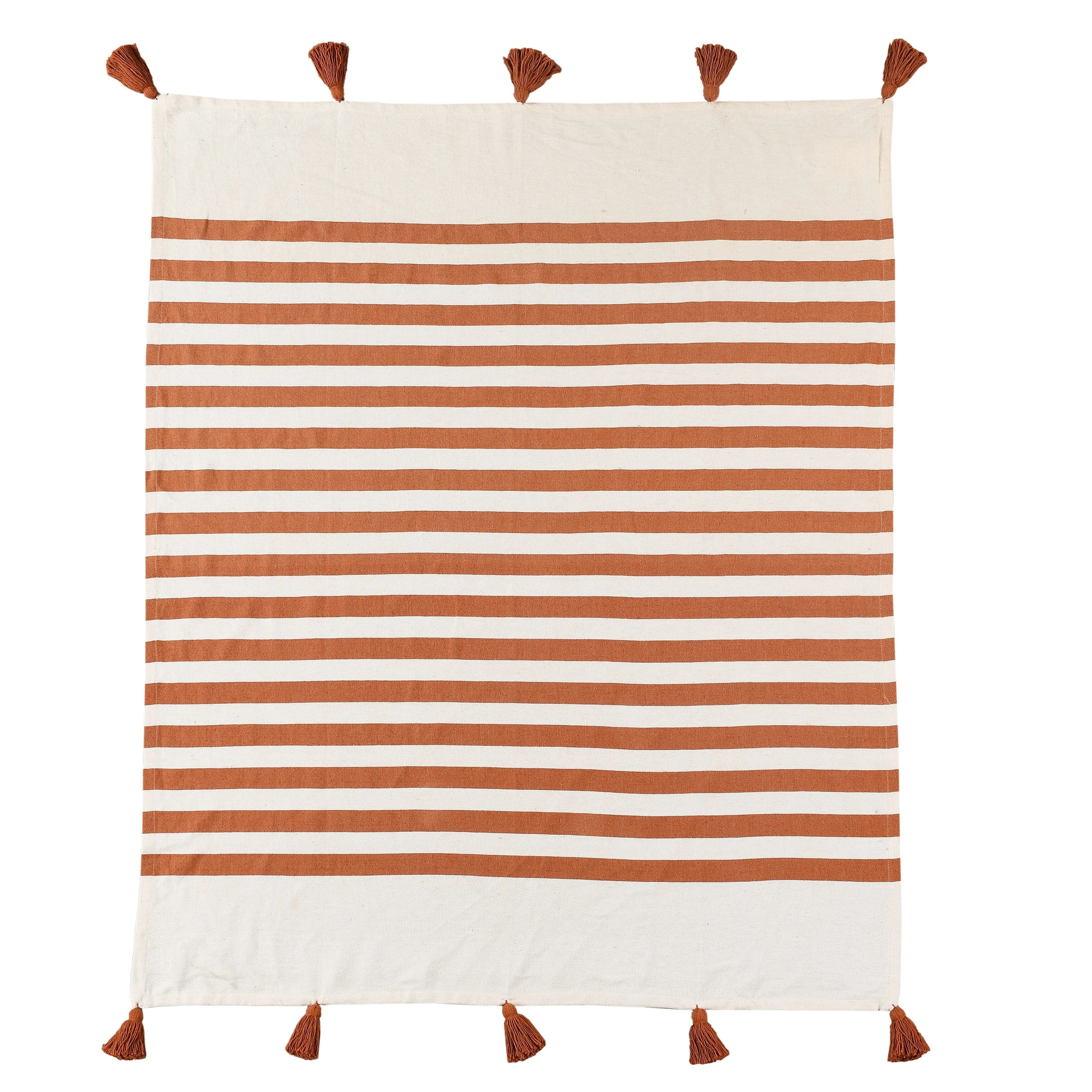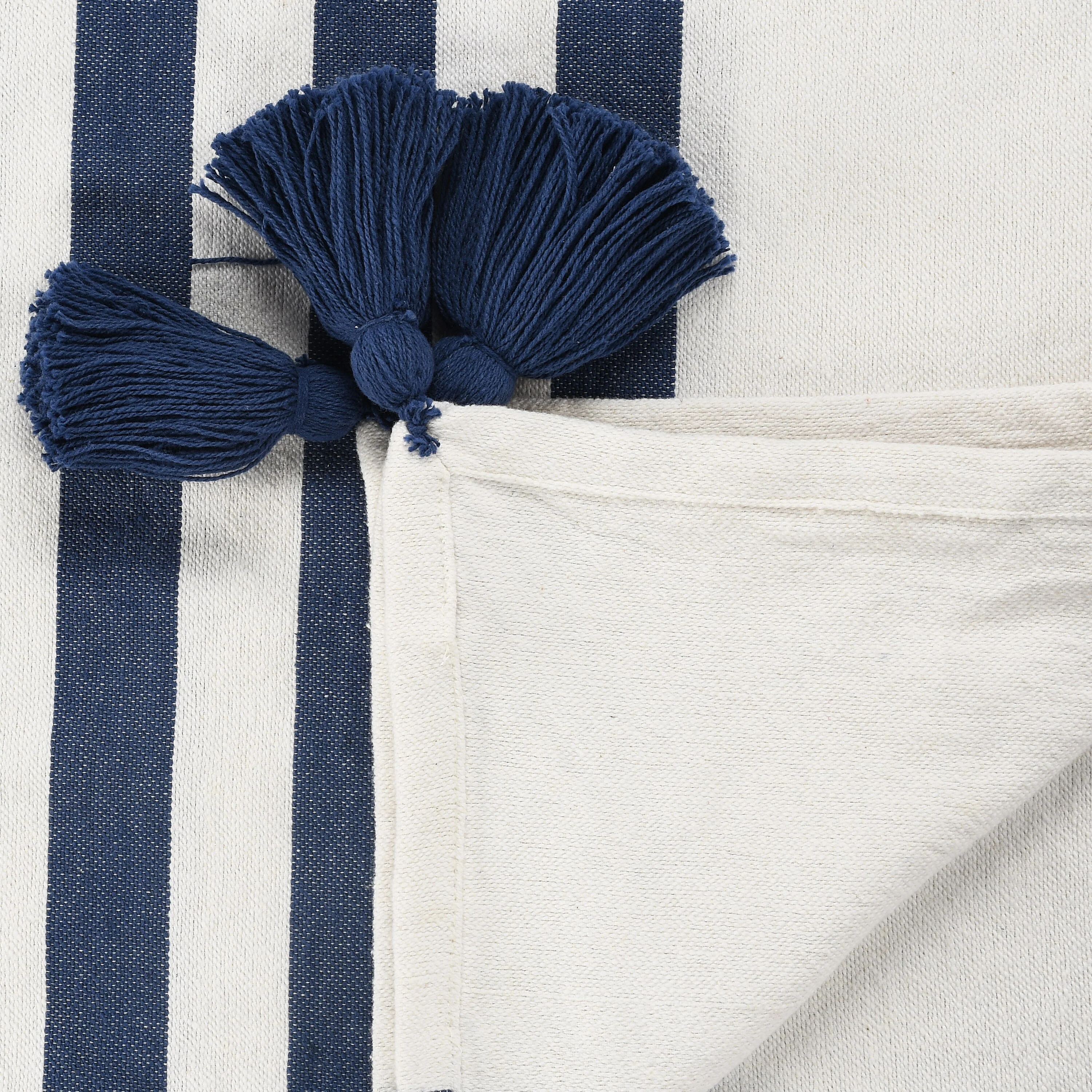 Come get cozy with this decadent cotton throw blanket. Featuring a classic, bold stripe in a vintage wash for a comfy, broken-in feel; with self-binding edges for durability, and tassles for a little extra flair. This blanket is crafted in India from all-natural cotton, which provides ultimate breathability and comfort that you will enjoy year-round.
