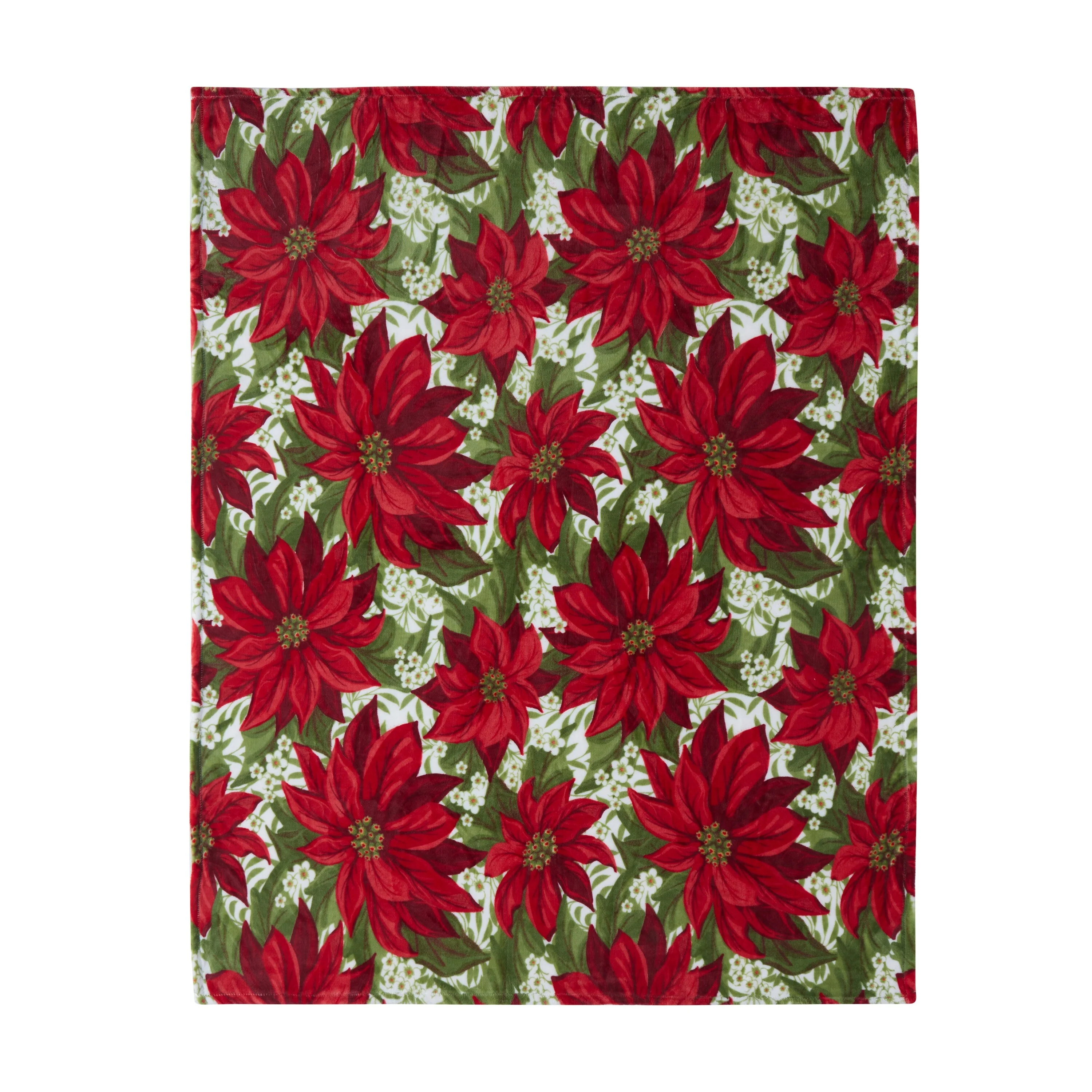 VCNY Home Multicolor Red Pretty Poinsettia Flannel Holiday Throw, 50" x 60"