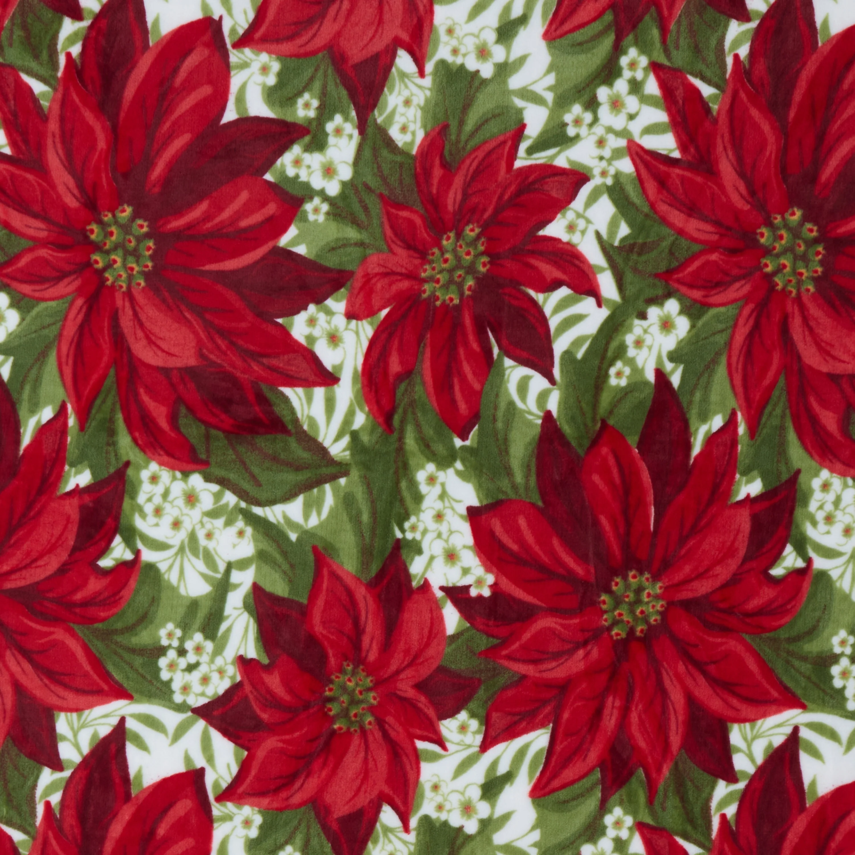 Bundle up for the holidays and give your bed, couch, or favorite chair a festive look with the VCNY Home Multicolor Red Pretty Poinsettia Flannel Holiday Throw. A cozy holiday gift or an irresistibly soft addition to your bedroom, guest room, or living room, this decorative throw features red poinsettia plants and white flowers for a timeless holiday look. This ultra-soft throw is made of warm, flannel material and measures 50 inches x 60 inches. This decorative throw is machine washable for quick and easy care. You can keep this throw blanket looking and feeling fresh by machine washing in cold water, and tumbling drying on low setting as needed.