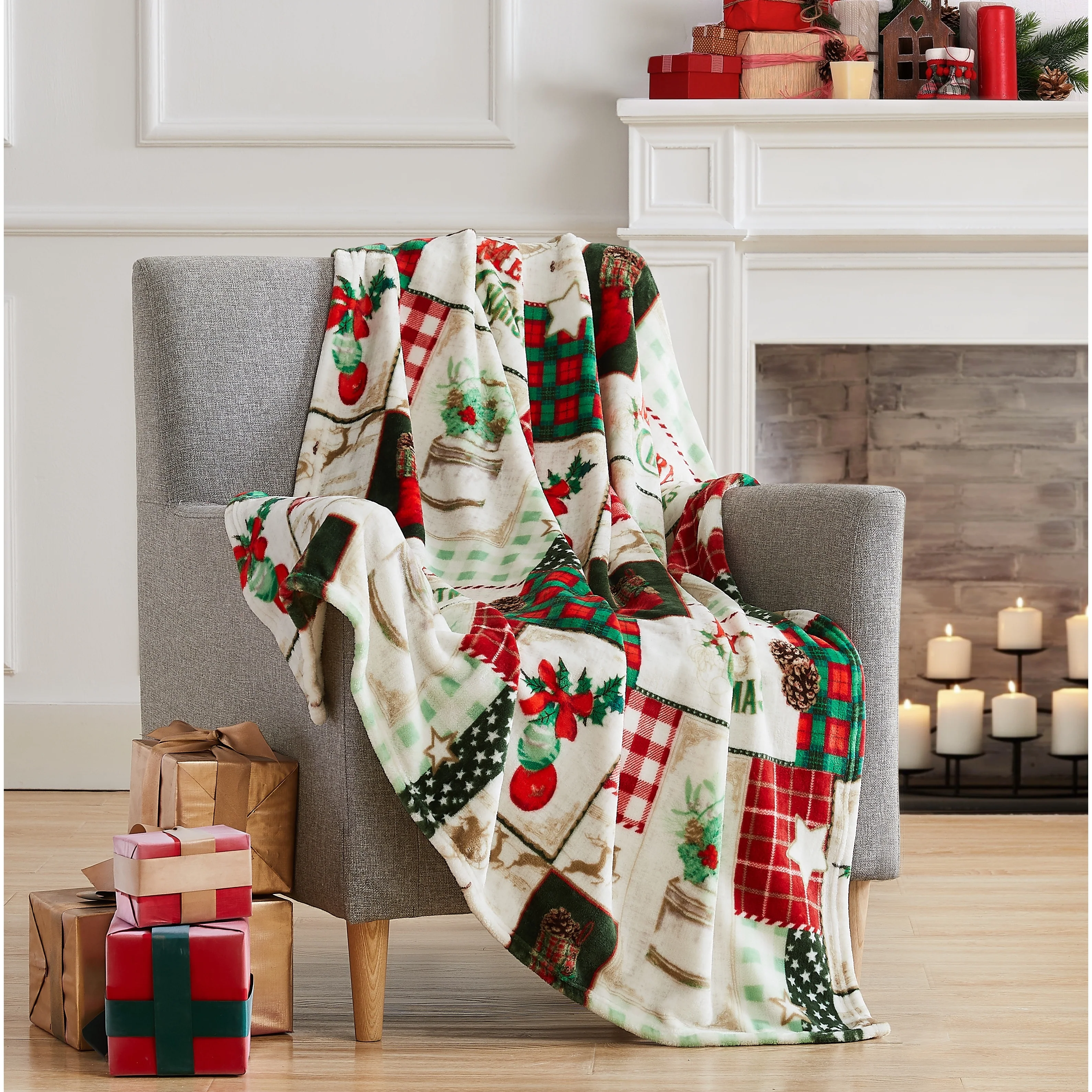 Christmas Patch Flannel Throw 50"x60"