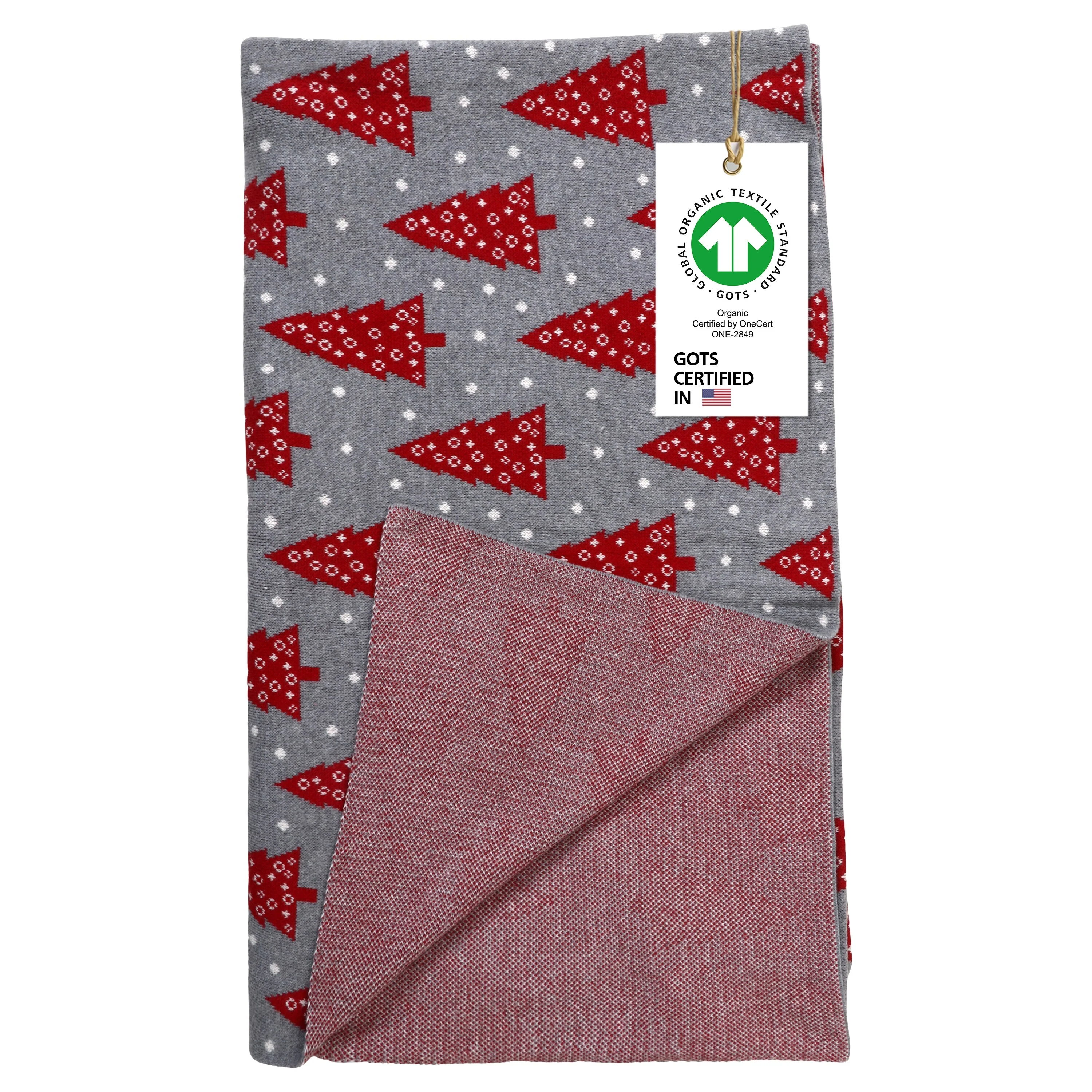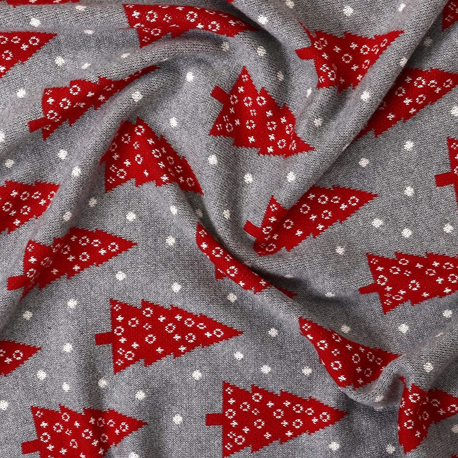 A1HC Cable Knit Christmas Tree Throw 100% Cotton Throw Blanket, Soft, Smooth, Warm, Lightweight, 50"X70", Light grey/Red/Natural