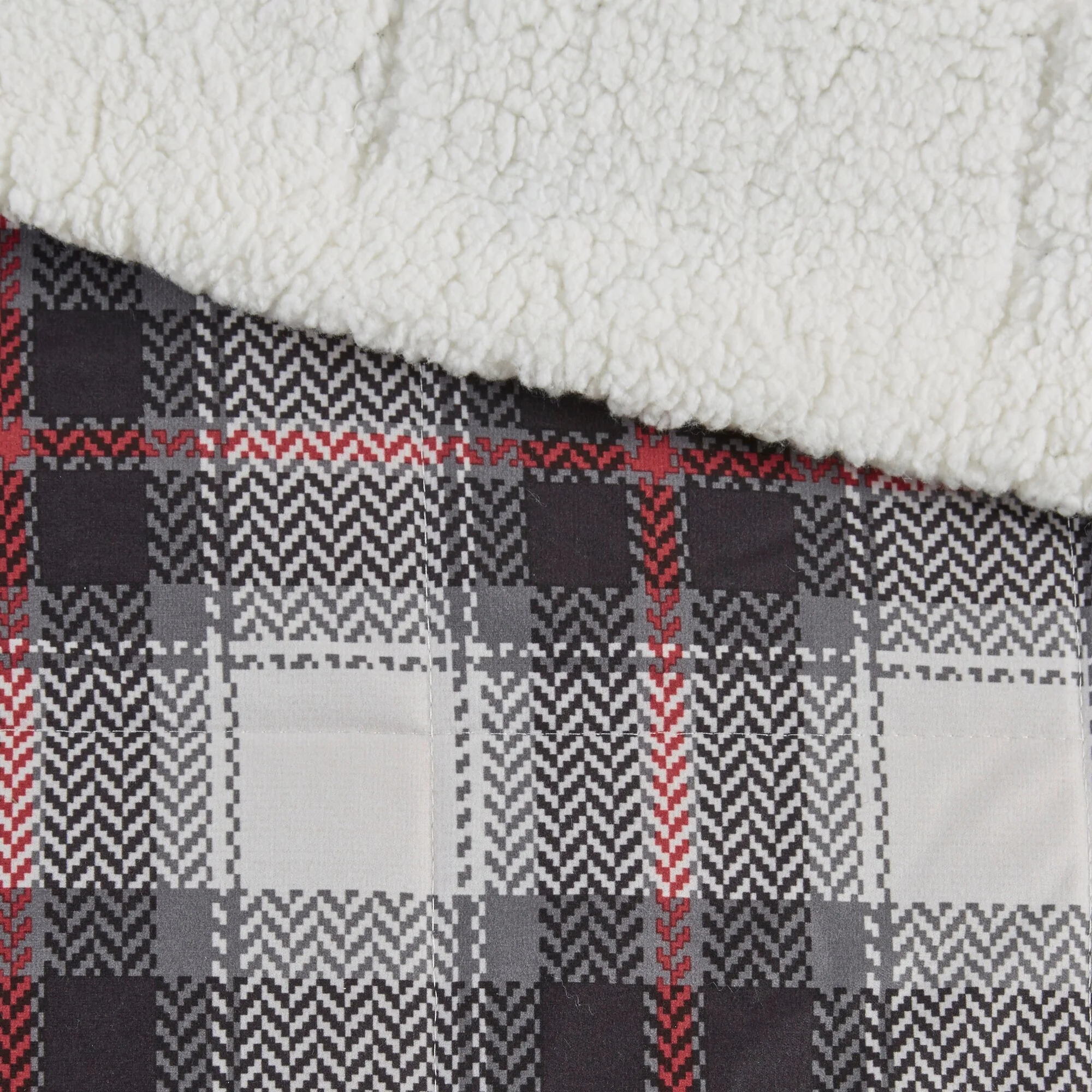 Madison Park Meadow Red 4 Piece Printed Herringbone to Sherpa Reversible Coverlet Set