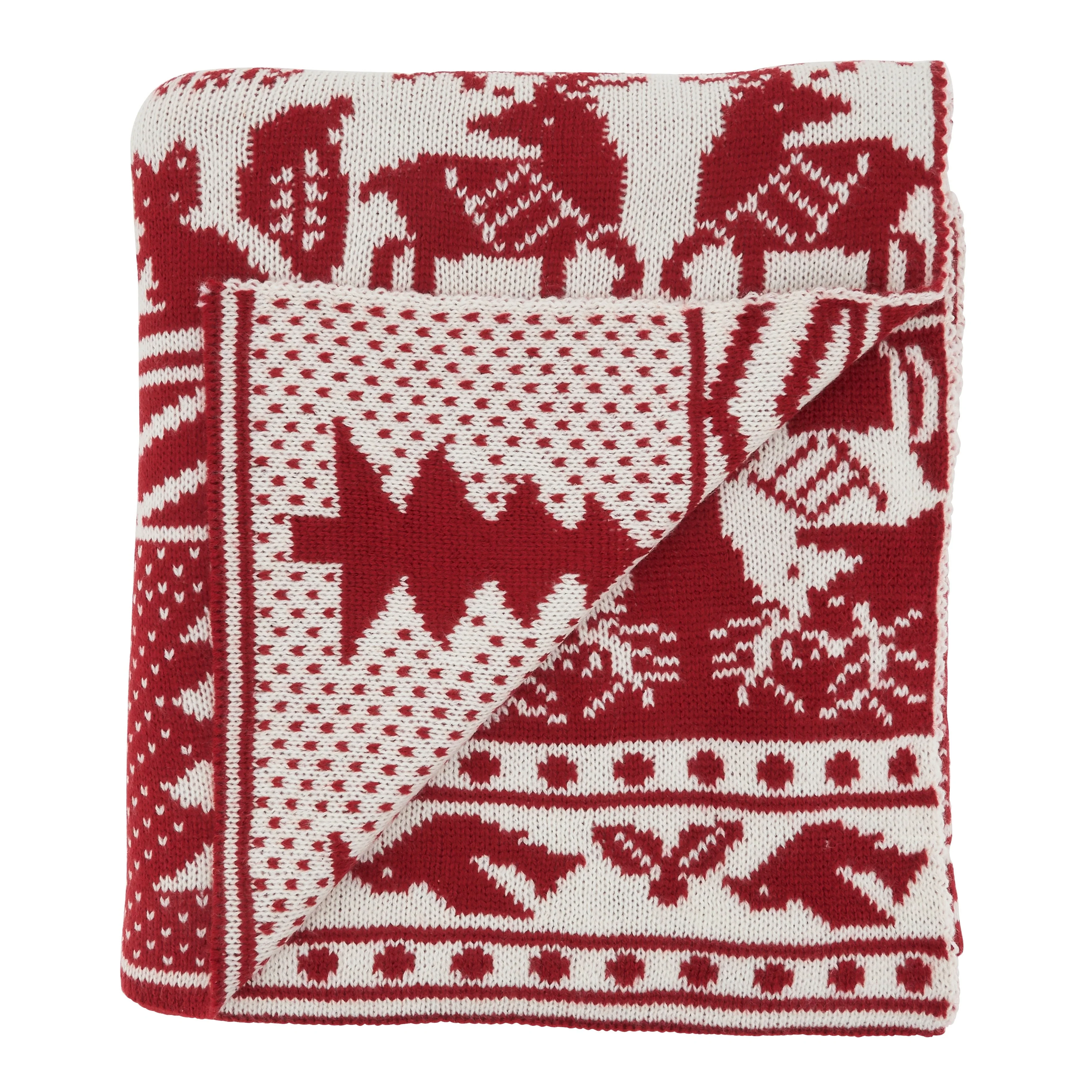 Knit Throw With Christmas Tree and Reindeer Design
