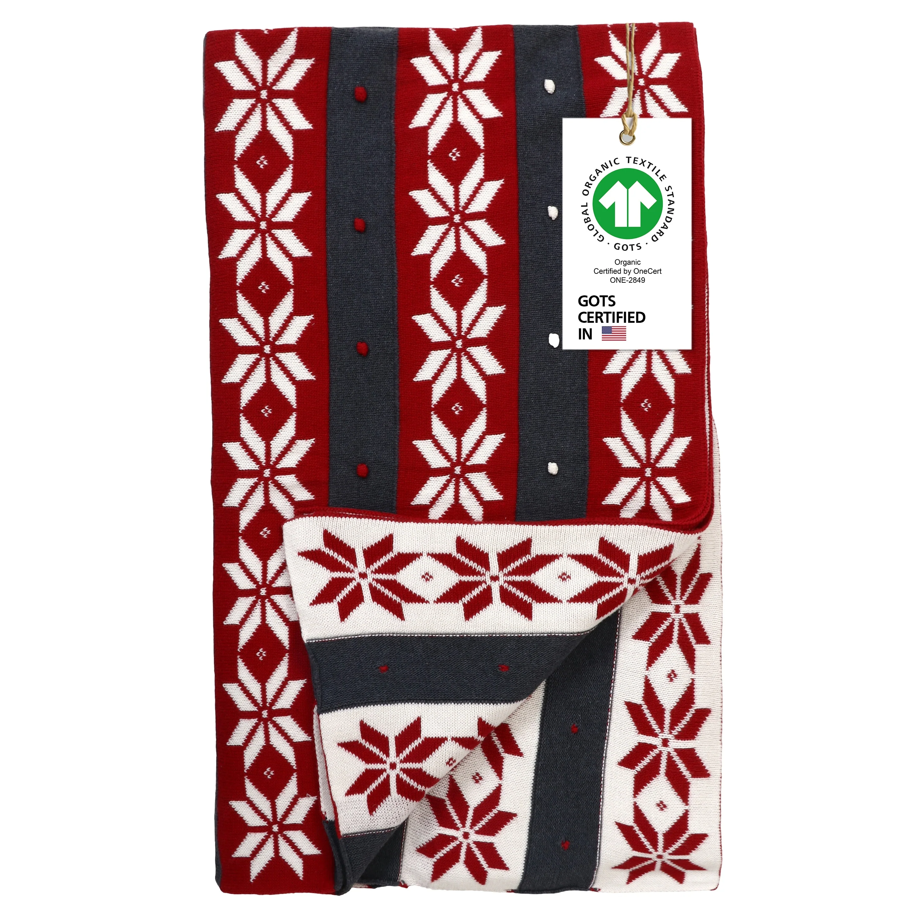 A1HC Cable Knit Christmas Throw 100% Cotton Throw Blanket, Soft,Smooth, Warm, Lightweight, 50"X70",Red/Dark Grey/Natural