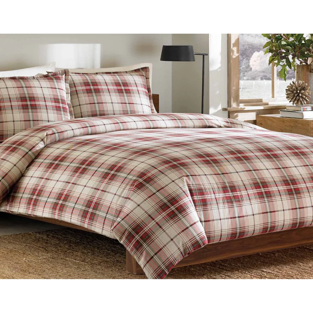 Eddie Bauer Montlake Plaid Red Flannel 3-piece Duvet Cover Set