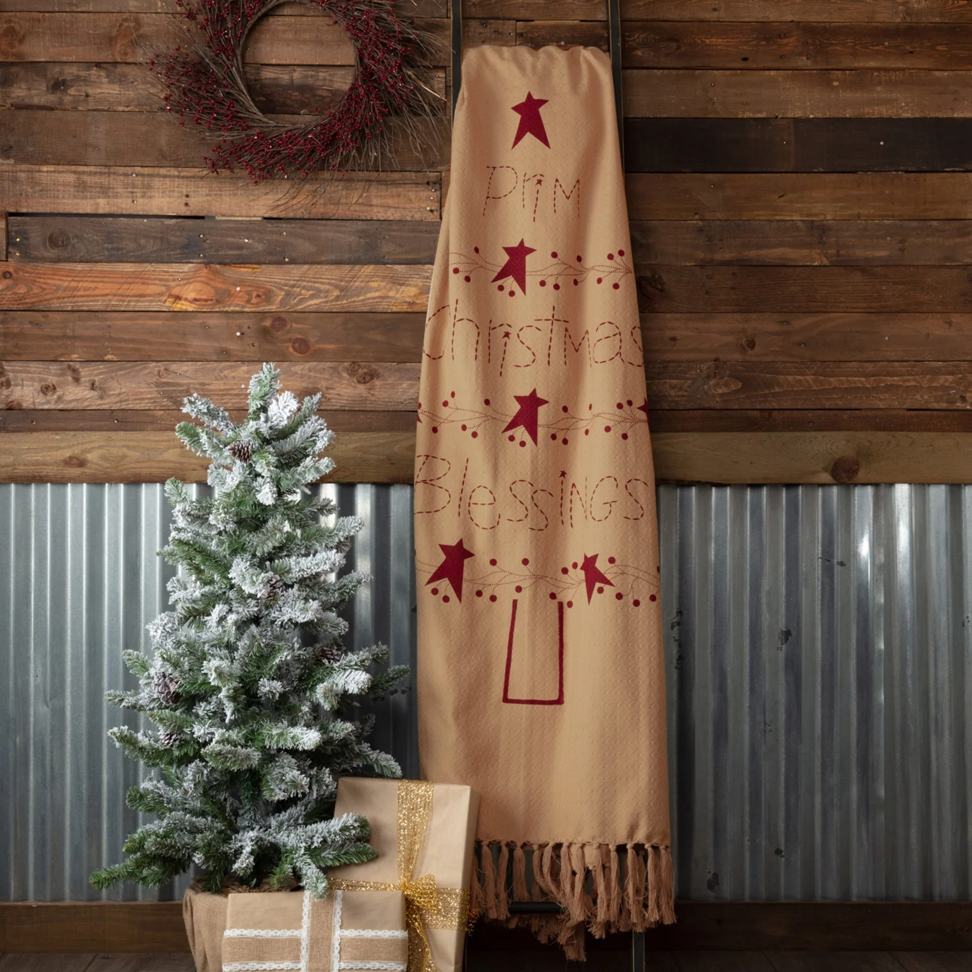 Prim Christmas Blessings Woven Throw 60x50