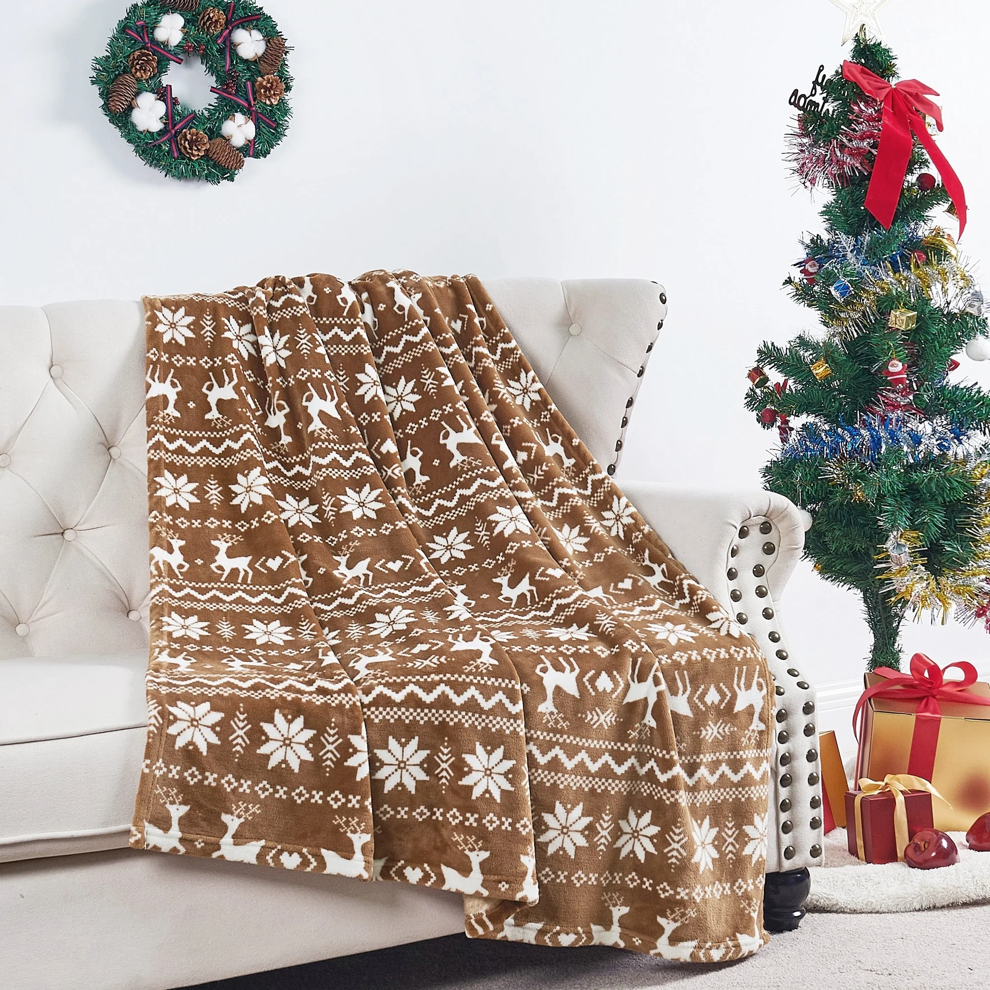 Home Soft Things Christmas Decorative Blanket Print Flannel Throw