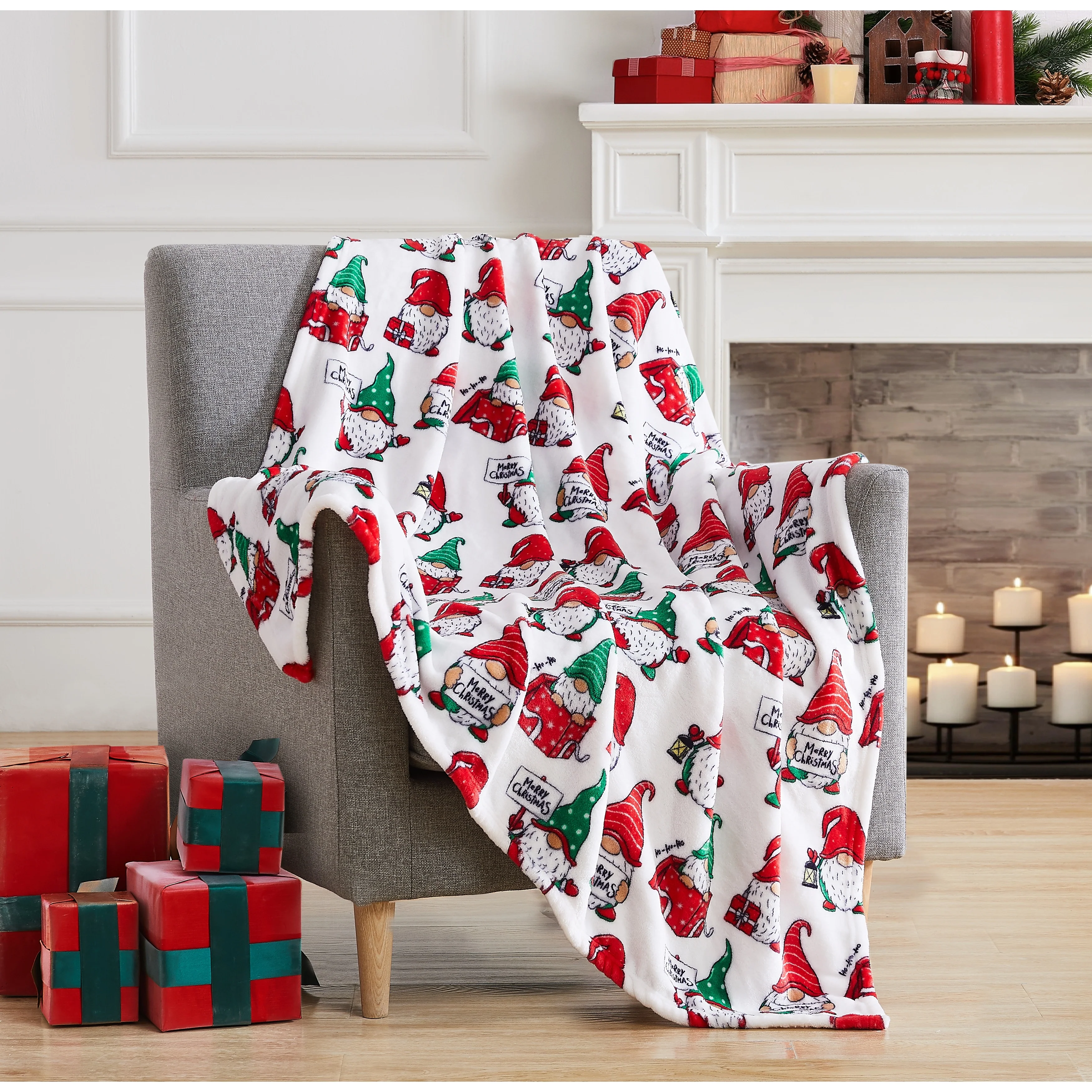 Christmas Holiday Gnomes Flannel Throw 50"x60"