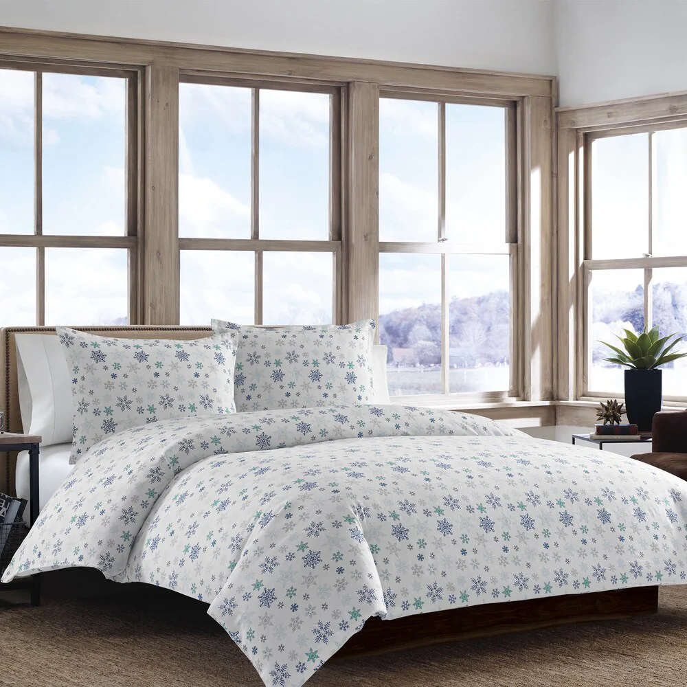 Eddie Bauer Tossed Snowflake Flannel Duvet Cover Set