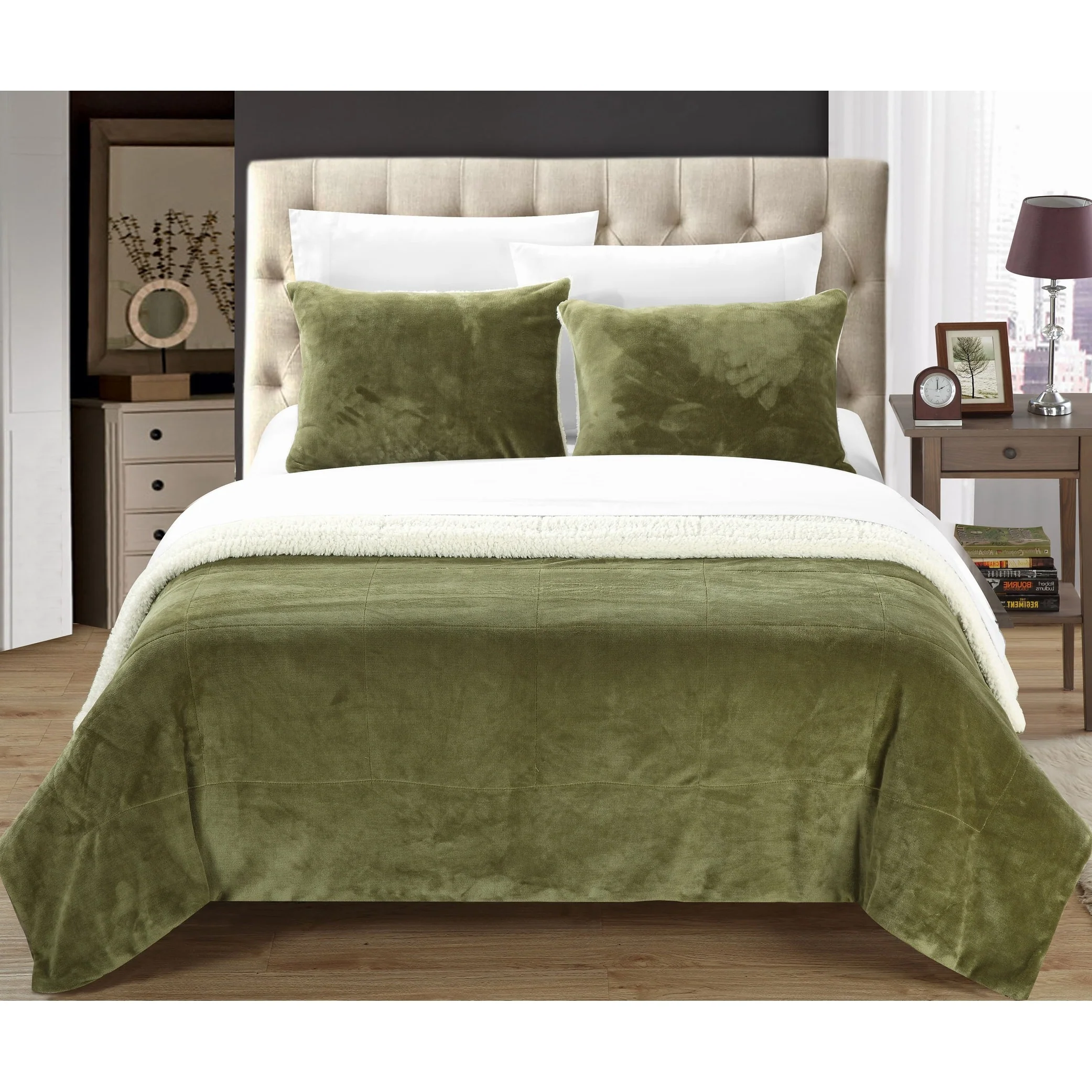 Chic Home Ernest 2-Piece Sherpa Blanket, Green