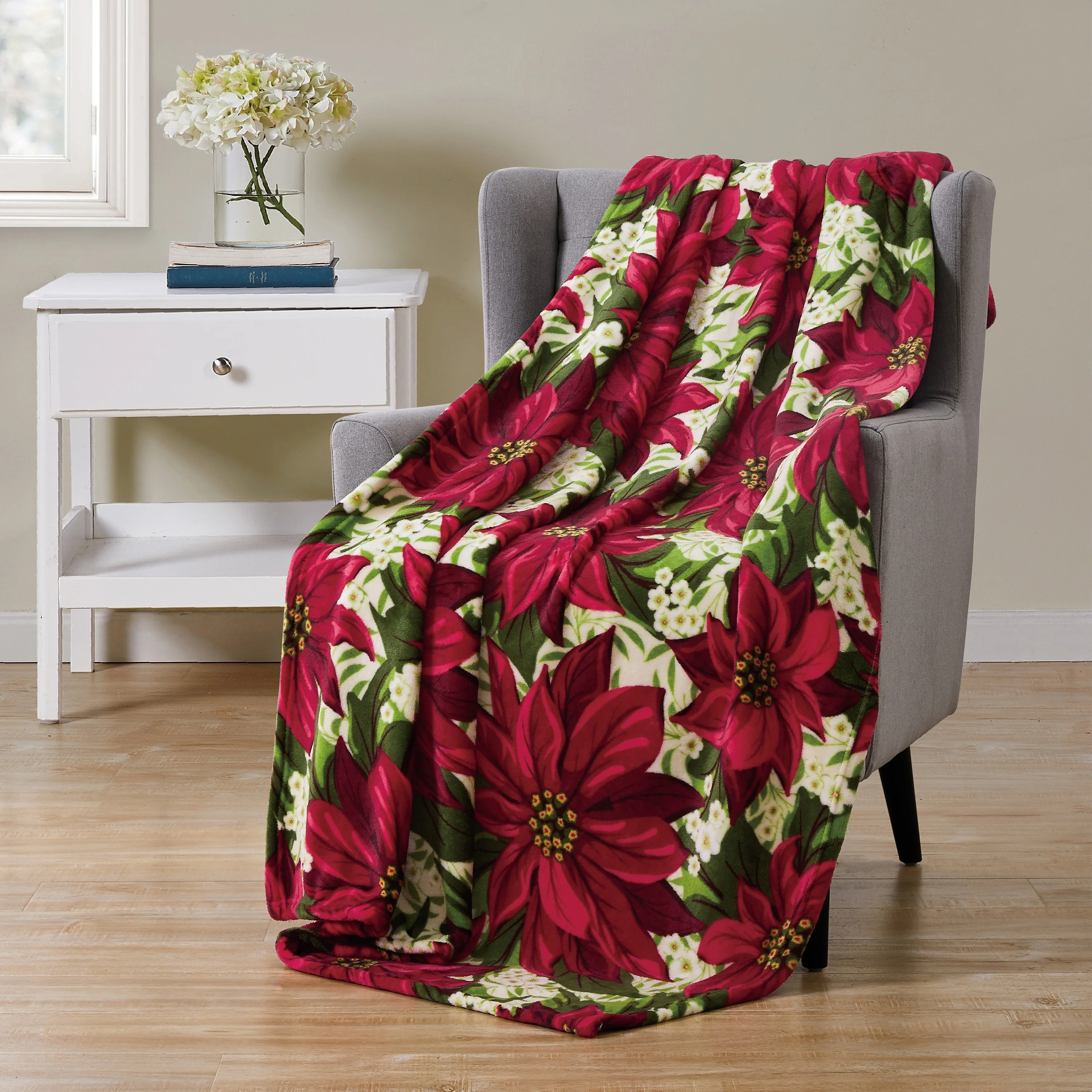 VCNY Home Multicolor Red Pretty Poinsettia Flannel Holiday Throw, 50" x 60"
