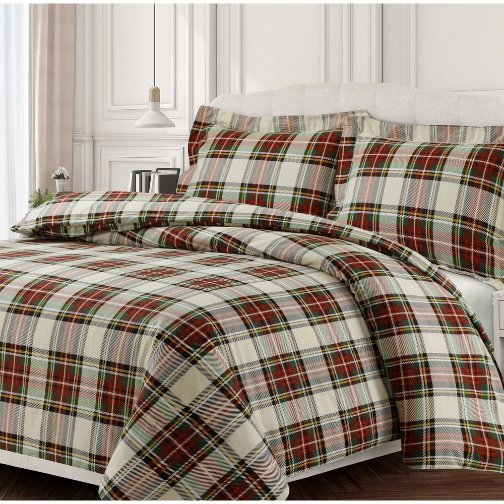 Charleston Plaid Soft 170-GSM Cotton Flannel Printed Oversized Duvet Set