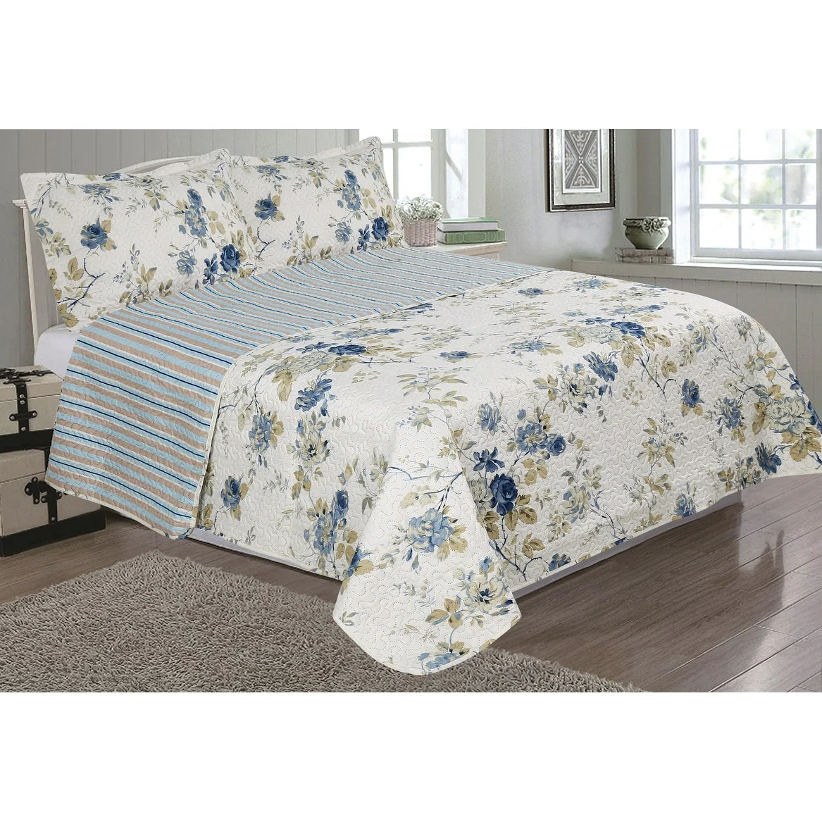 Blue Moon Roses Quilt Set